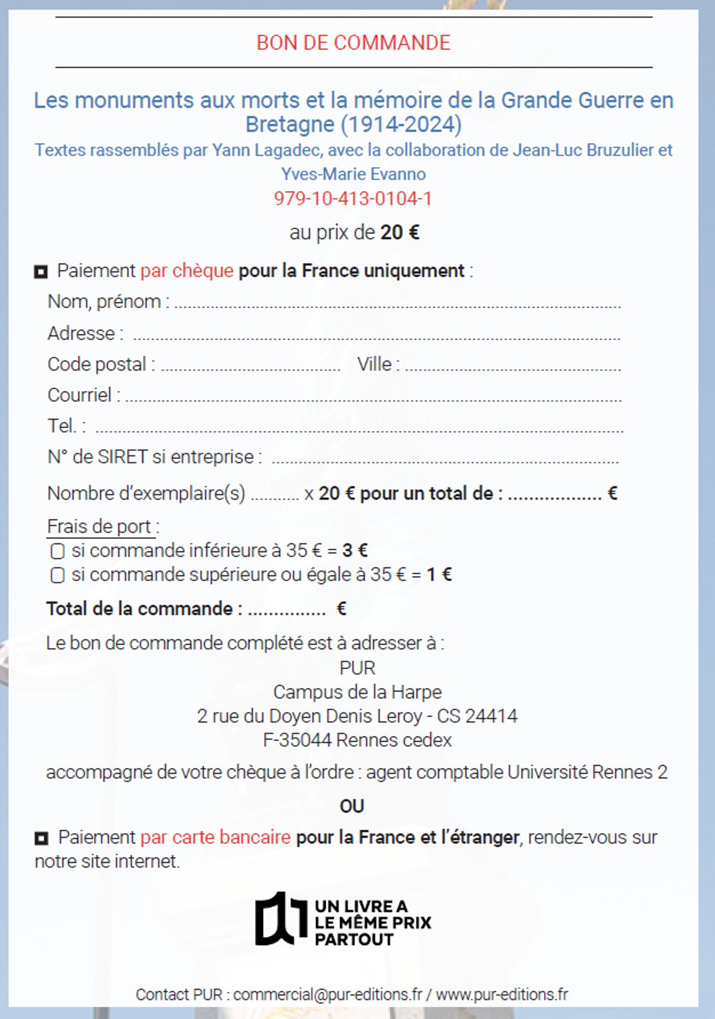 Les monuments aux morts et la mémoire de la Grande Guerre en Bretagne (1914-2024) Publication des Annales de Bretagne et des pays de l'Ouest, tome 132, avril 2025, numéro 1, Rennes, PUR, disponible le 12 juin 2025 Table des matières