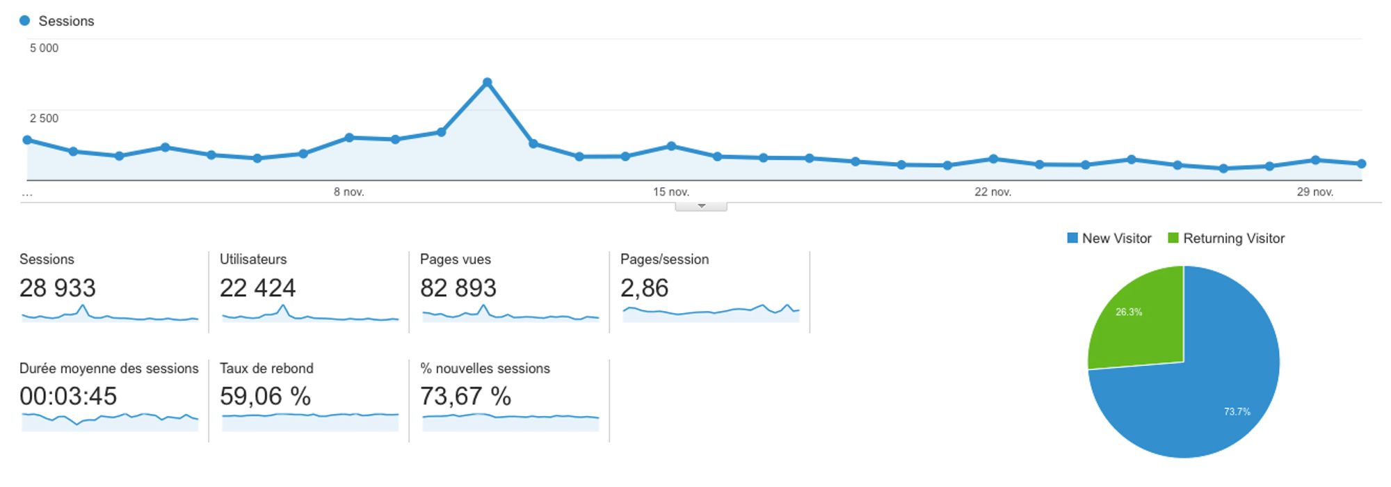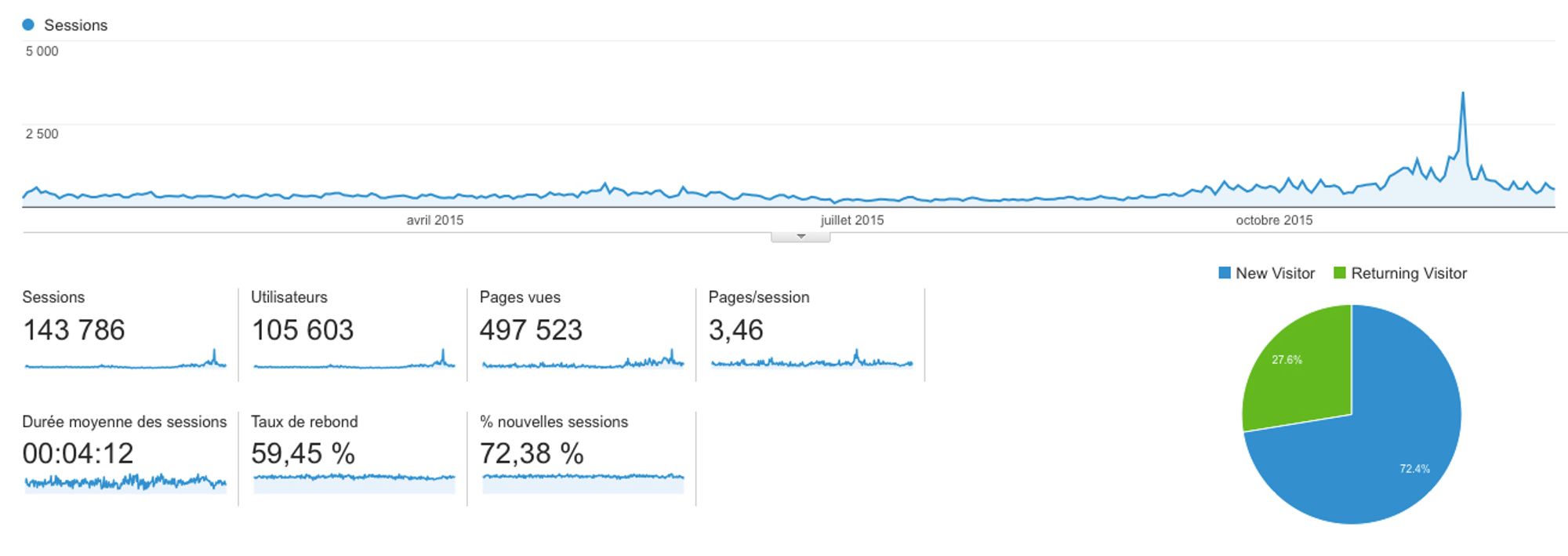 Voici les quelques relevés de fréquentation de la base réalisés en cette fin d'année 2015, avec l'indication des pics habituels du 11 novembre :