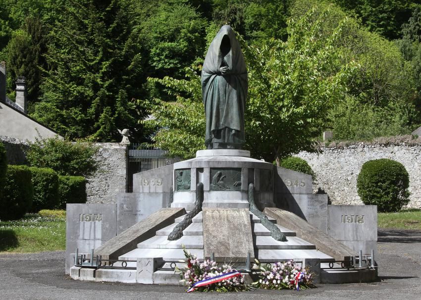 Les trois parties de la commune sont unies dans la même douleur, symbolisée par la statue en bronze d’une vieille bigourdane emmitouflée dans un capulet, vêtement de deuil traditionnel des femmes de la vallée.