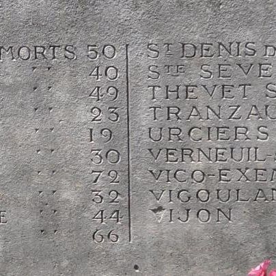 Ces chiffres sont ceux que la mairie de La Châtre communiqua au préfet de l'Indre, lors de son enquête de 1932 (archives départementales de l'Indre R 909-3). Il faut entendre ici le coût total incluant la confection de la grille, les honoraires des architectes et des frais annexes. Le sculpteur s'était engagé à exécuter le monument proprement dit à forfait, pour la somme de 30 000 francs (traité de gré à gré, 2 exemplaires aux archives communales de La Châtre, 1 exemplaire dans les papiers conservés du sculpteur). Le montant de la subvention correspond à celui indiqué dans le document officiel d'attribution de subvention (archives départementales de l'Indre 827 W 55).