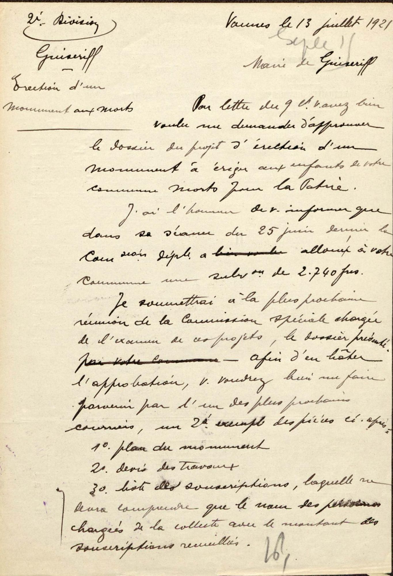 - Subvention départementale 2 740 francs