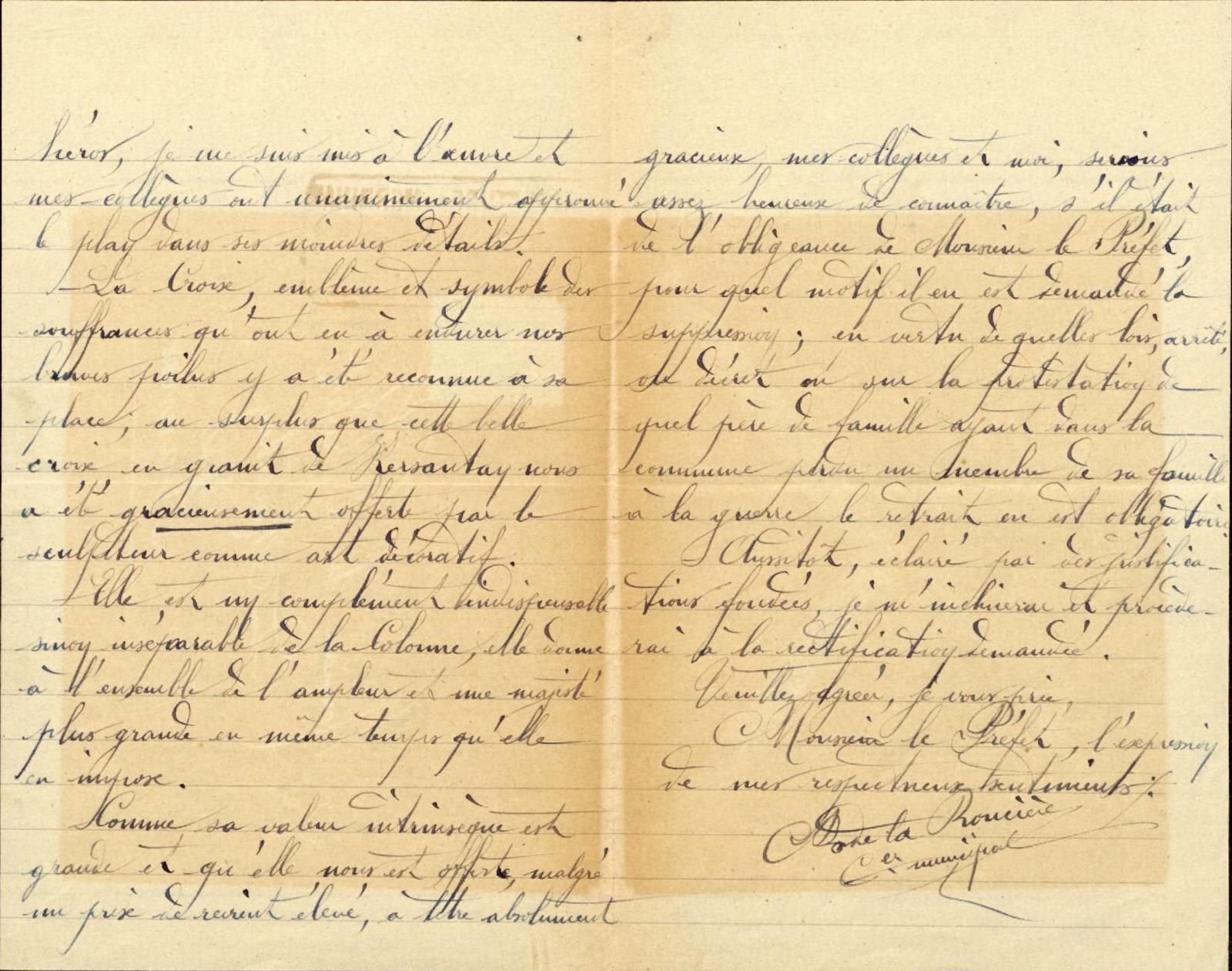Approbation d'un modèle de monument présenté par M. Jannie sculpteur à Rostreven