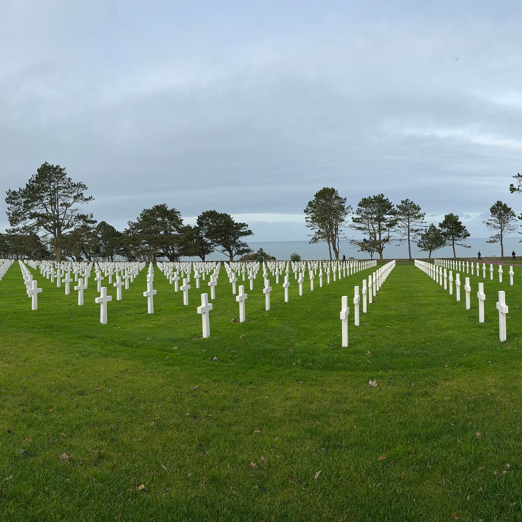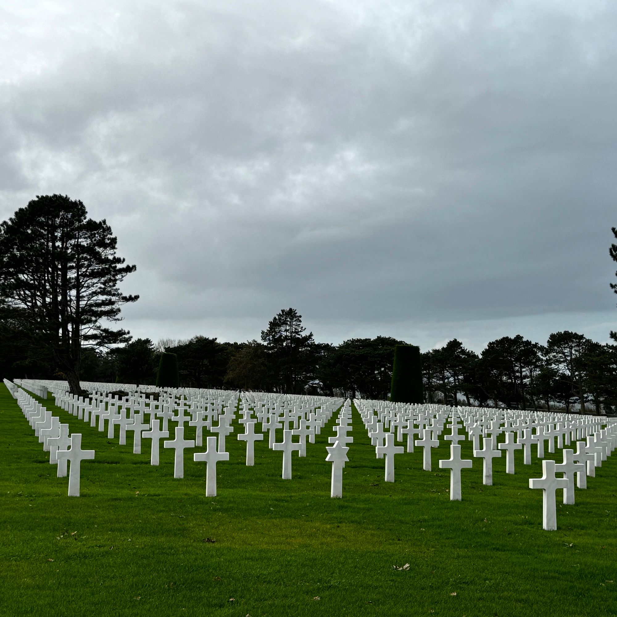 Ici, dans un espace de verdure perché sur une falaise surplombant la plage d’Omaha Beach, près de 10 000 croix blanches, parfaitement alignées, pointent vers l’Amérique.