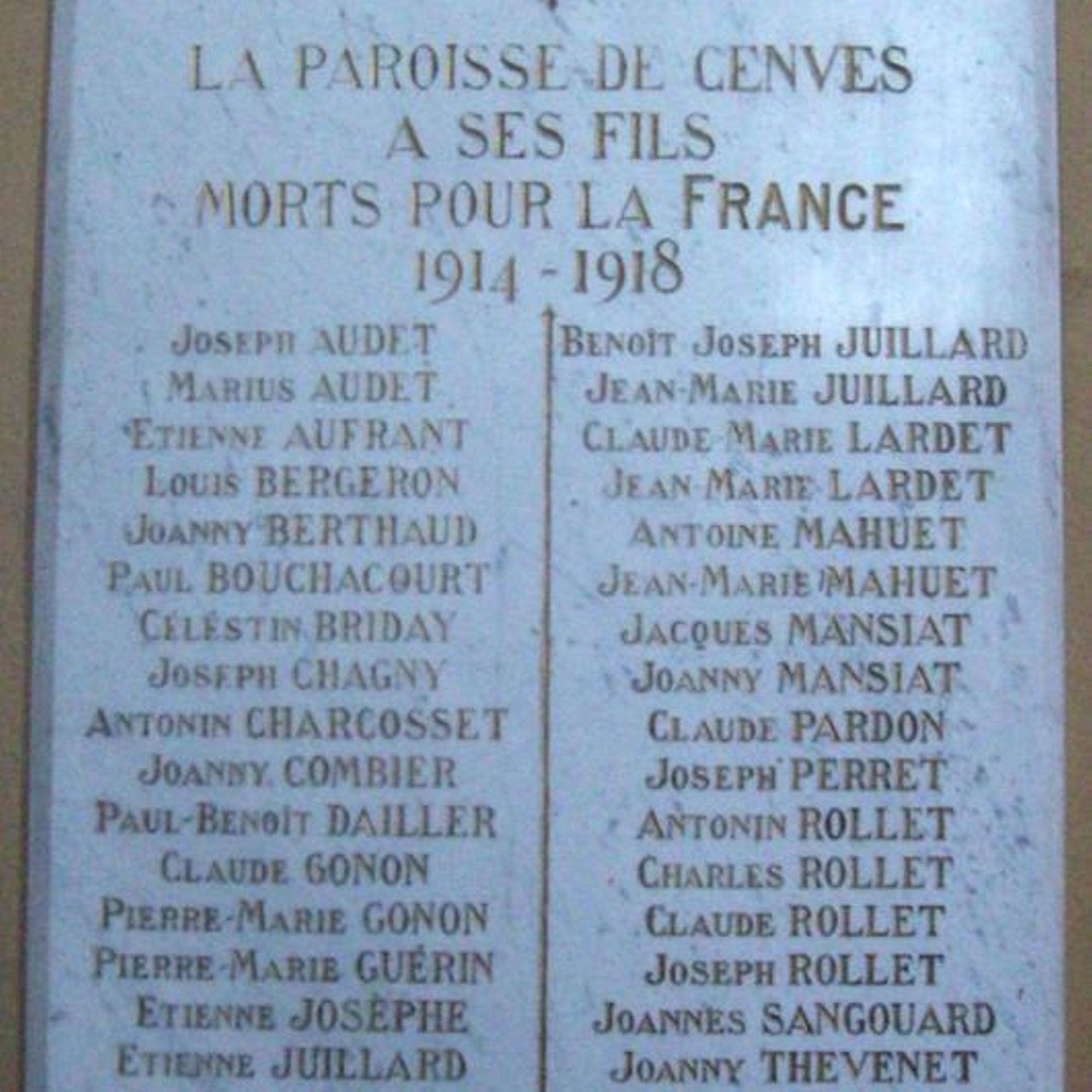 - A fourni les plaques de l'église de Vignol (1920) et de l'église de Flez-Cuzy (1920)