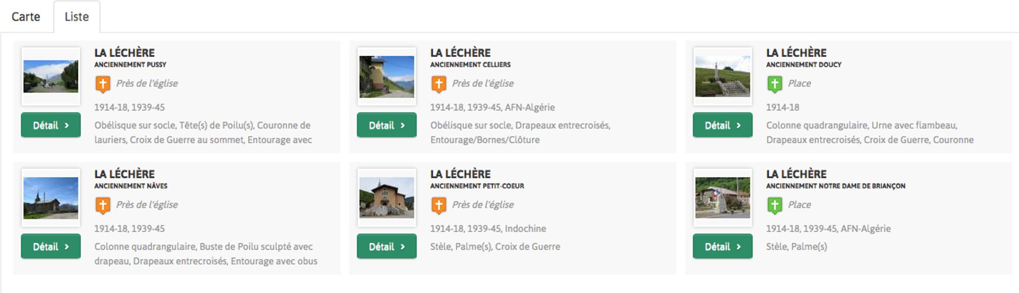 Les noms des anciennes communes apparaissent désormais au-dessous de la commune actuelle.