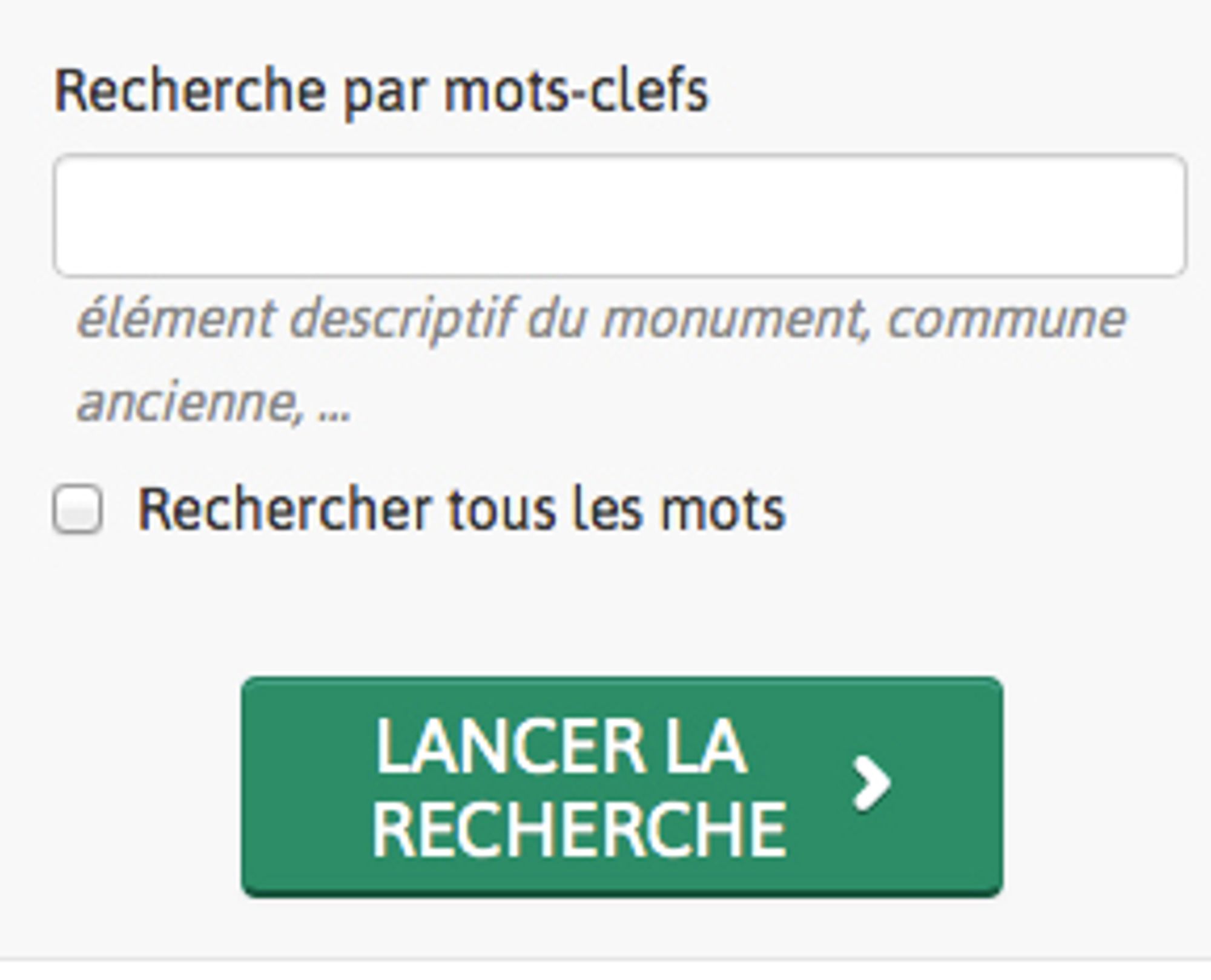 Je rappelle que la recherche pour trouver ces anciennes communes doit se faire dans le champ Recherche par mots-clefs, que vous trouvez dans l'espace recherche