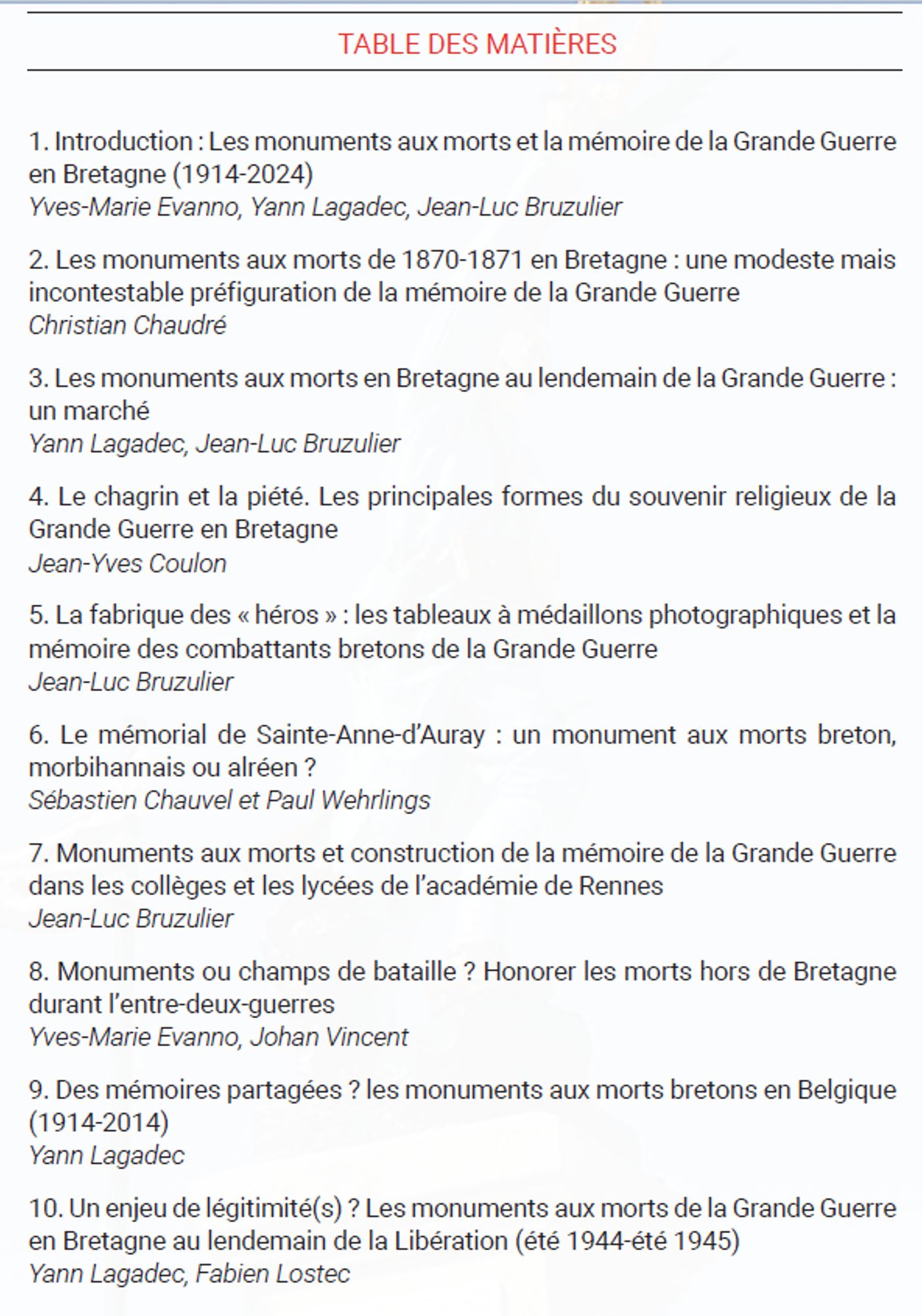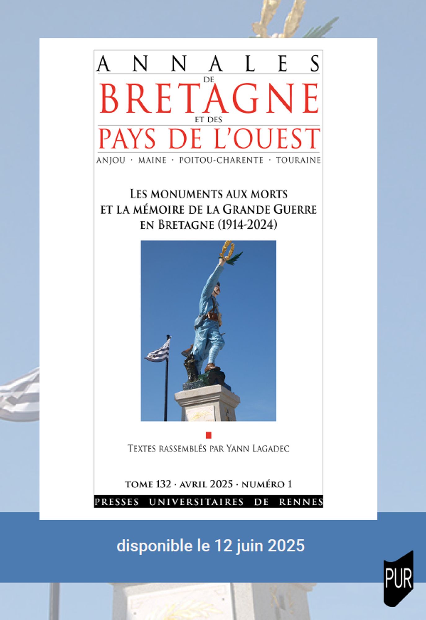 Les monuments aux morts et la mémoire de la Grande Guerre en Bretagne (1914-2024) Publication des Annales de Bretagne et des pays de l'Ouest, tome 132, avril 2025, numéro 1, Rennes, PUR, disponible le 12 juin 2025 Table des matières