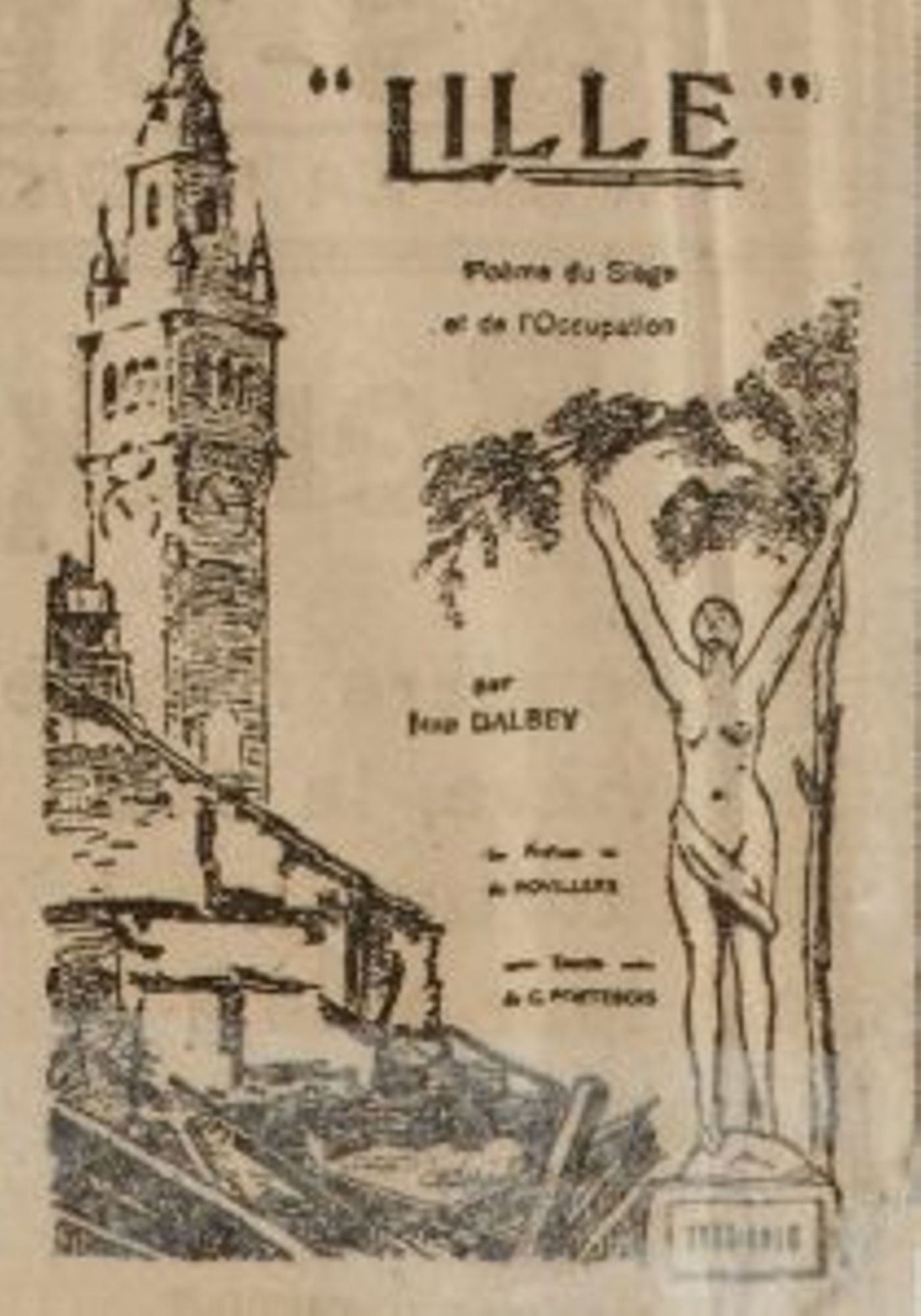 « Au même endroit se déroula, cette année, une courte mais émouvante cérémonie. Devant la statue même de la Délivrance, aux deux bras ardemment étendus vers le ciel, était donnée lecture d'un poème inédit, dédié à la gloire de Lille : « Lille (1914-1918 : poèmes du siège et de l’occupation » de Jean DALBEY.