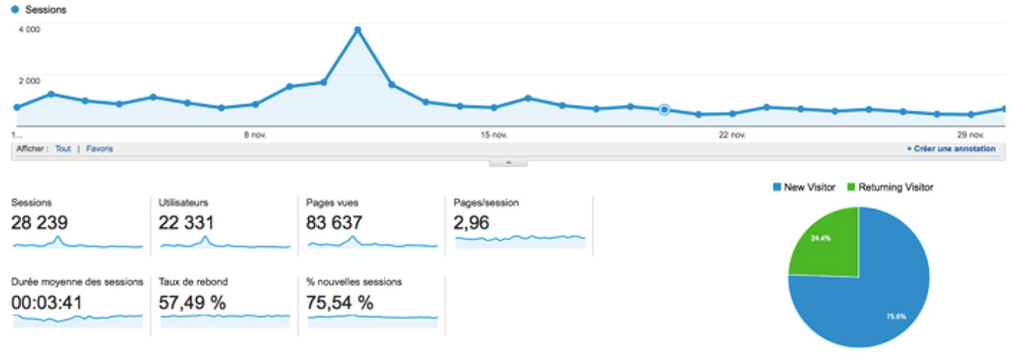 Voici les quelques relevés de fréquentation de la base réalisés en cette fin d'année 2015, avec l'indication des pics habituels du 11 novembre :