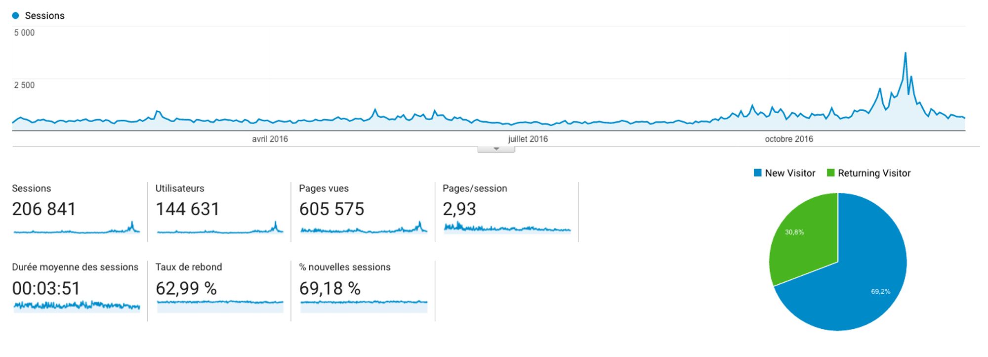 En comparaison avec les années 2015 et 2014, dont vous pouvez retrouver les statistiques sur le billet du blog de fin 2015