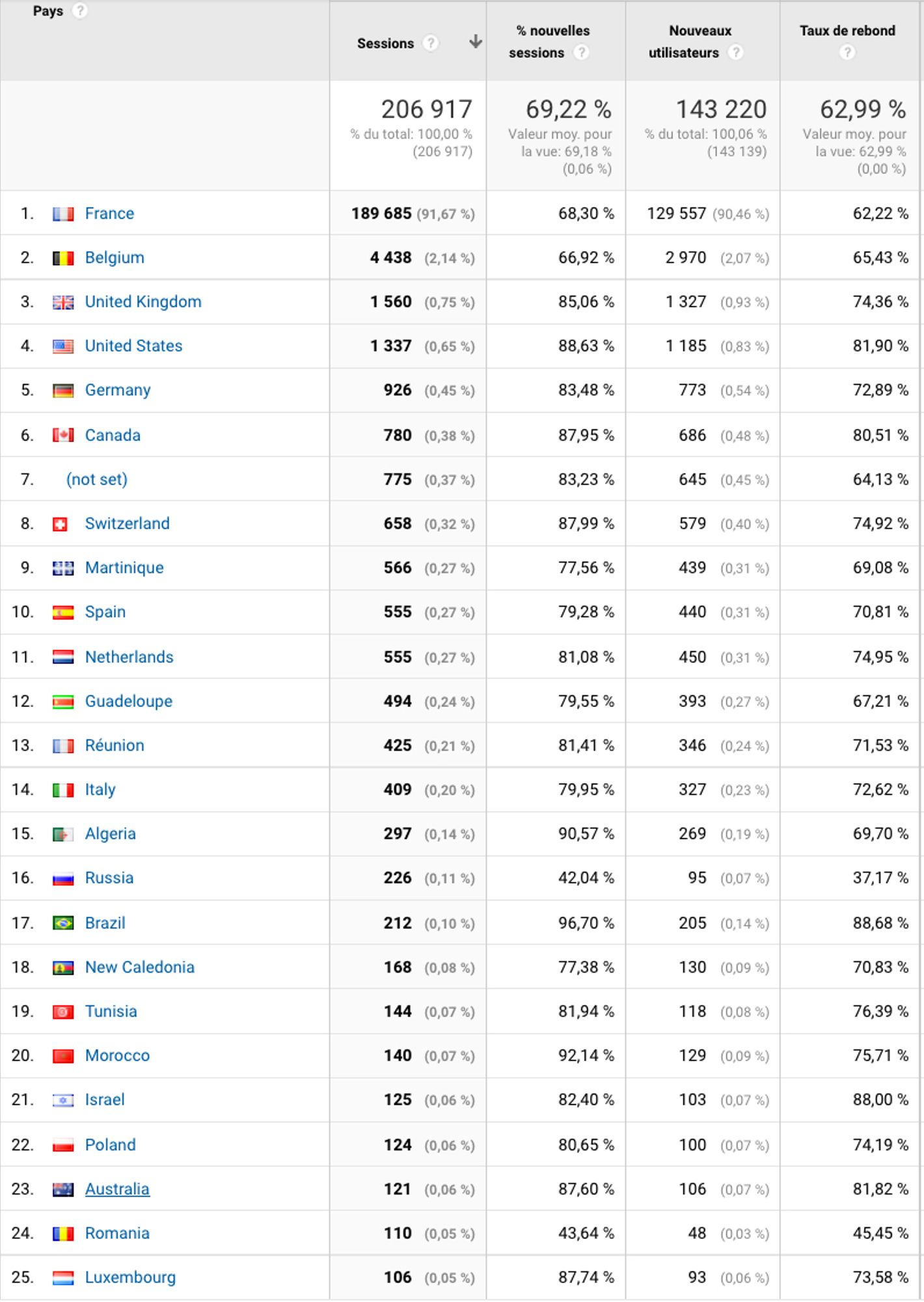 - la fréquentation pour la France passe de 131331 sessions à 189685