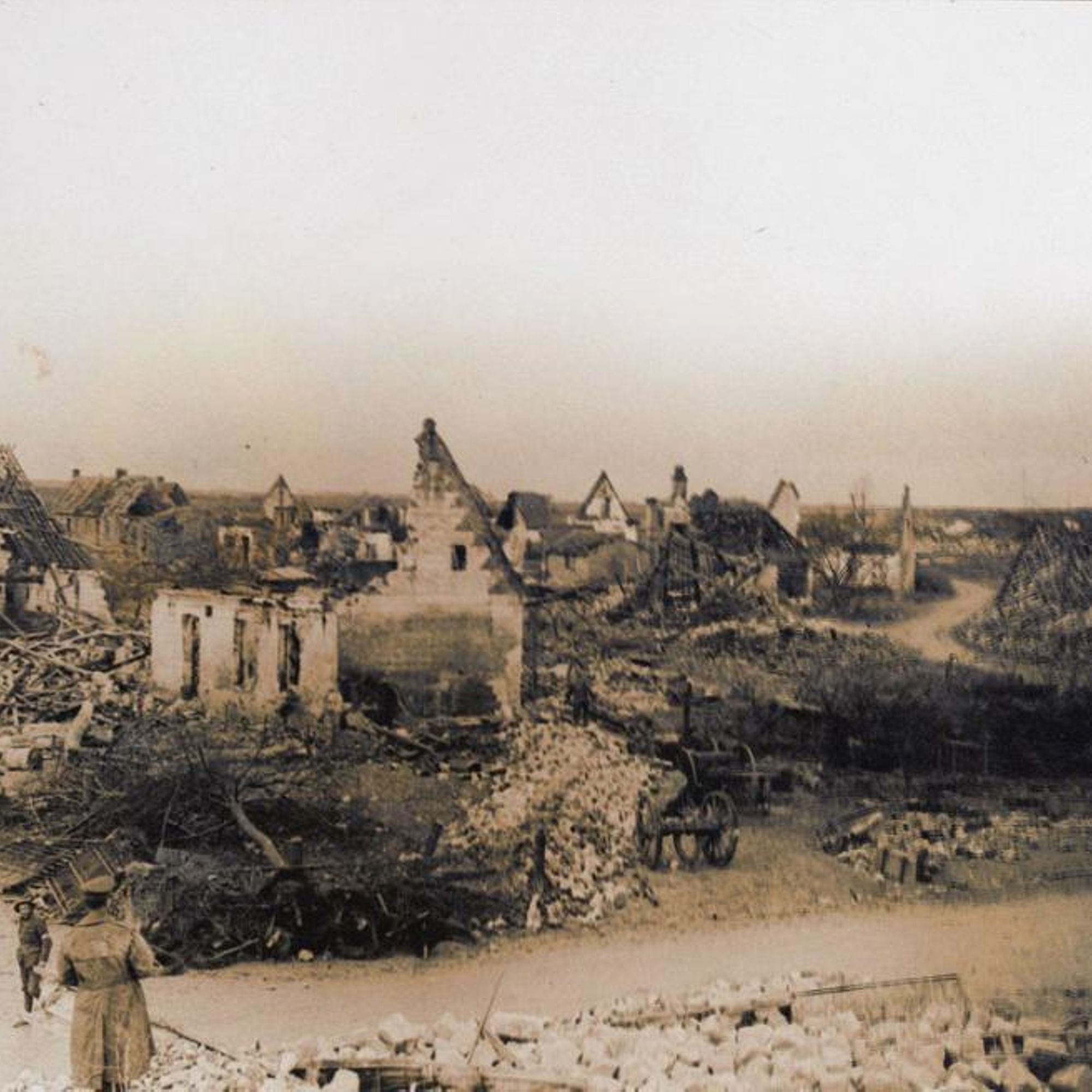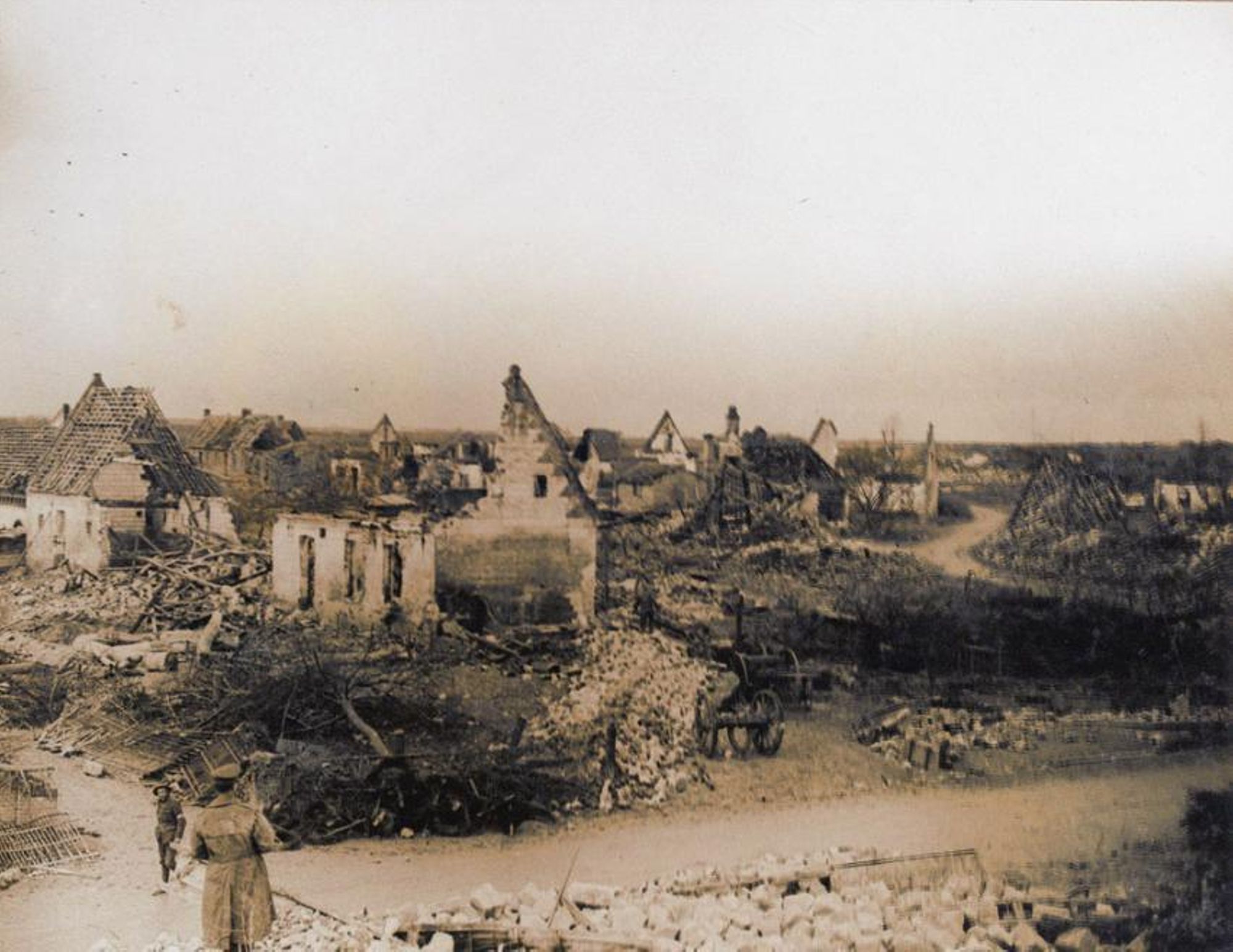 La commune située sur la ligne de front fut détruite et reconstruite par l’armée allemande en 1920, mais pas la sucrerie.