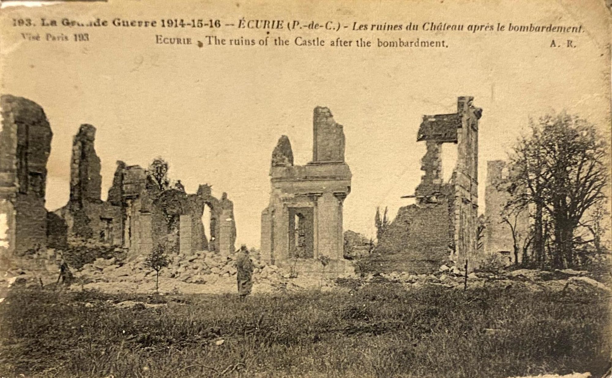 Écurie 62223 Pas-de-Calais France Hauts-de-France Informations diverses Décorations Vie pendant la guerre Sources Photothèque Croix de guerre Commune titulaire de la Croix de guerre 14-18 (23 septembre 1920) La Grande Guerre 1914-15-16 Écurie - Les ruines du château après le bombardement La Grande Guerre 1914-15-16 Écurie - Les ruines du château après le bombardement Monuments