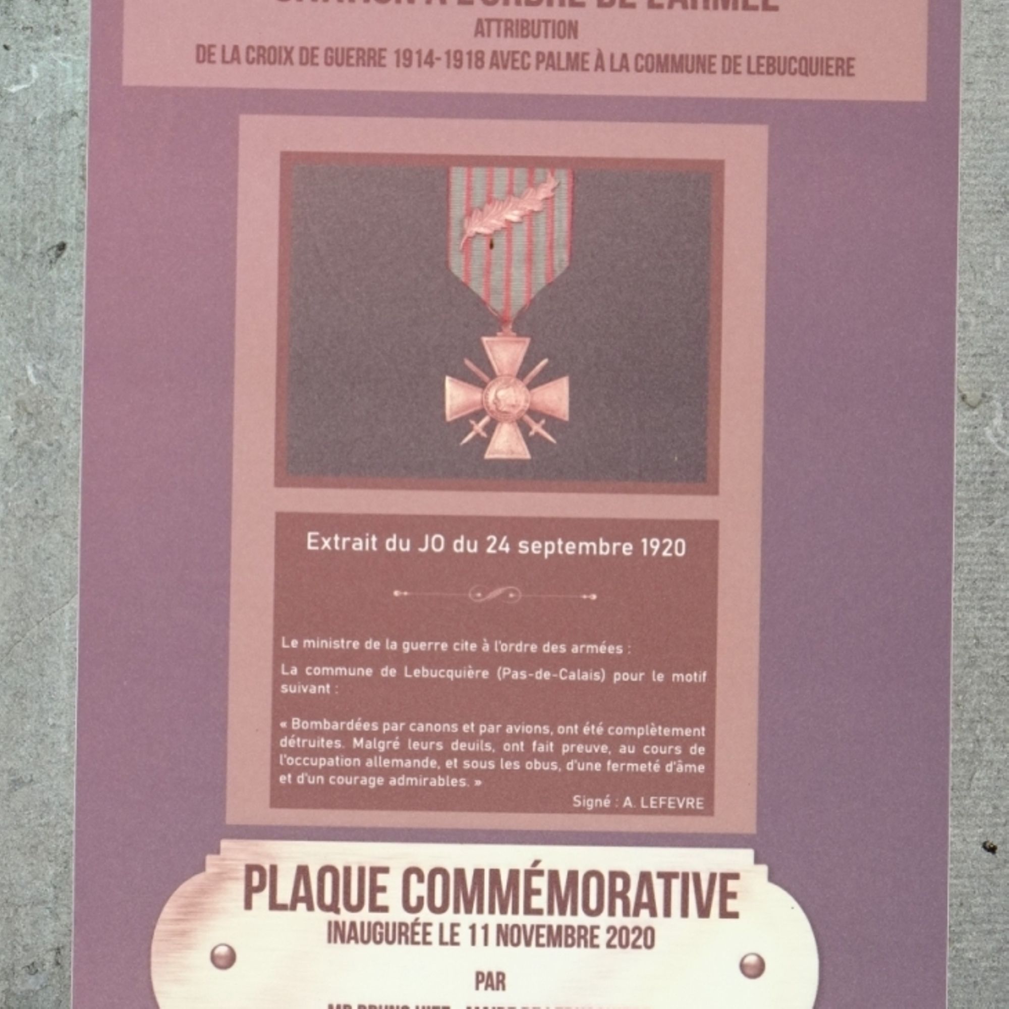 Commune titulaire de la Croix de guerre 14-18 (24 septembre 1920)