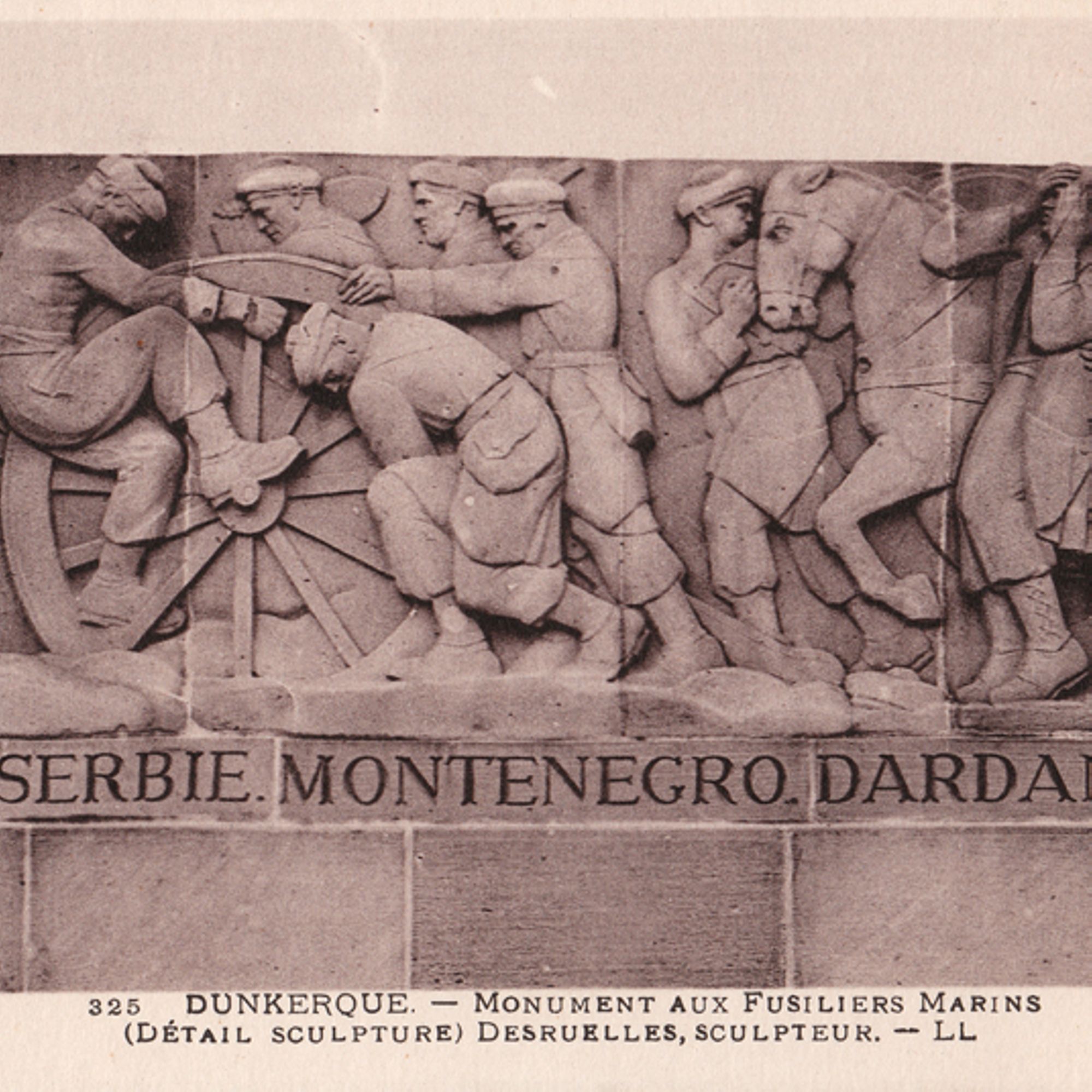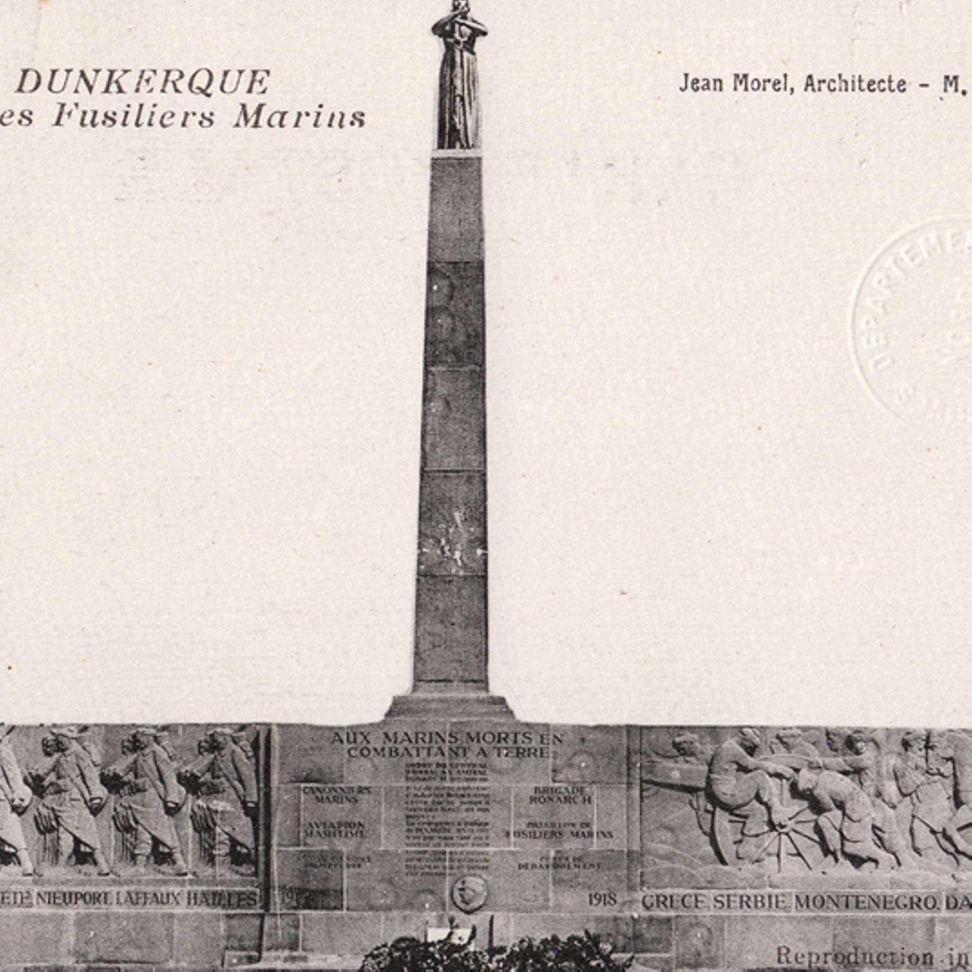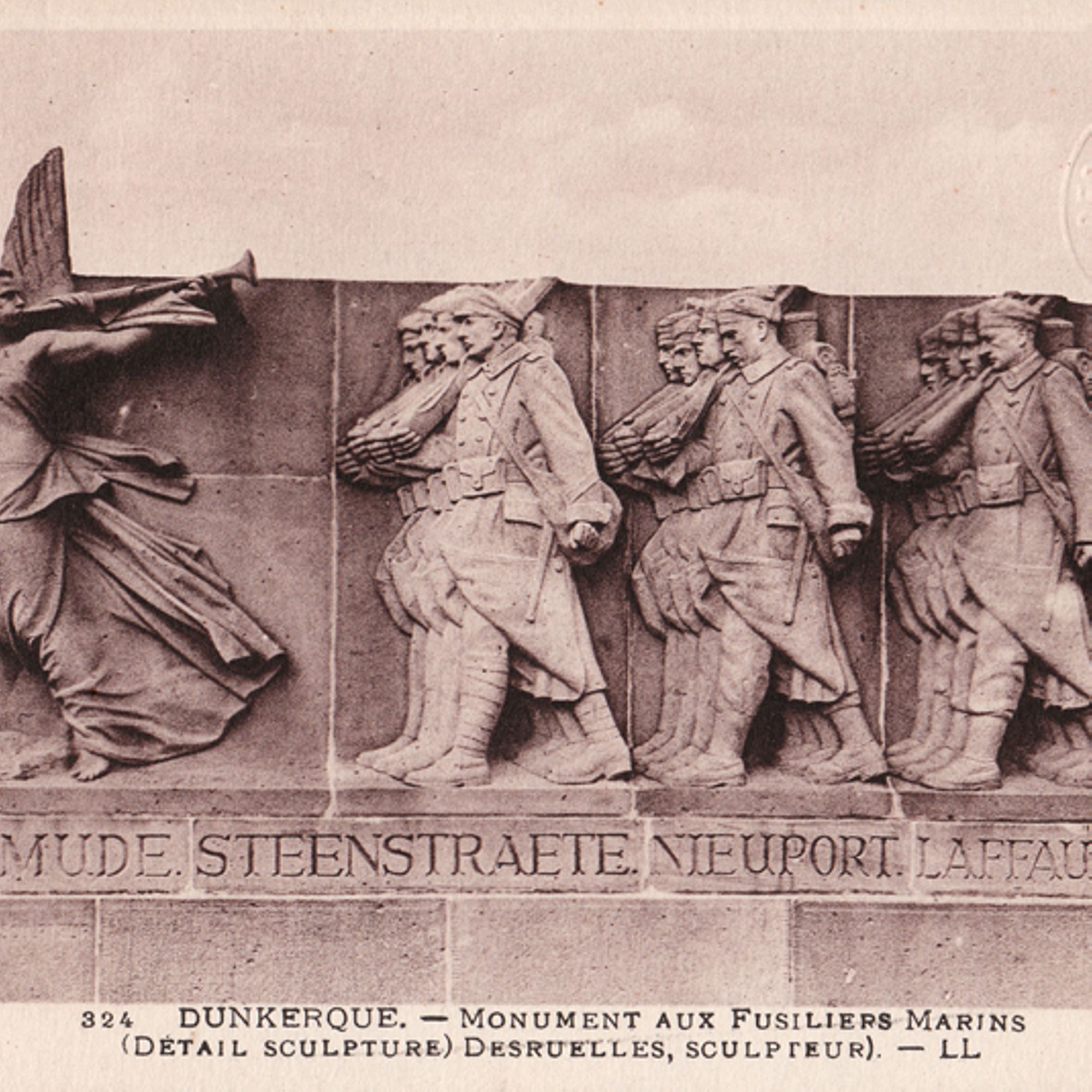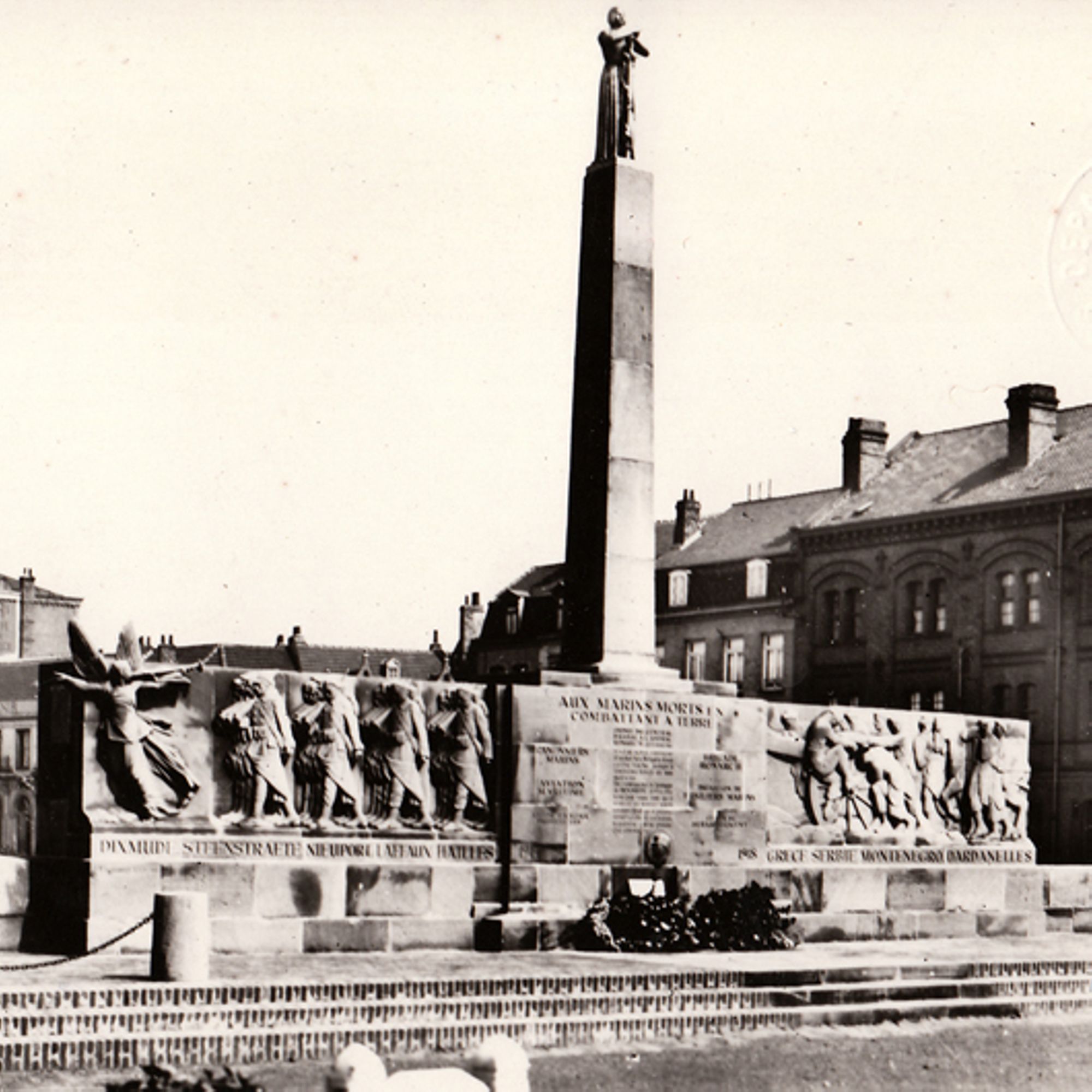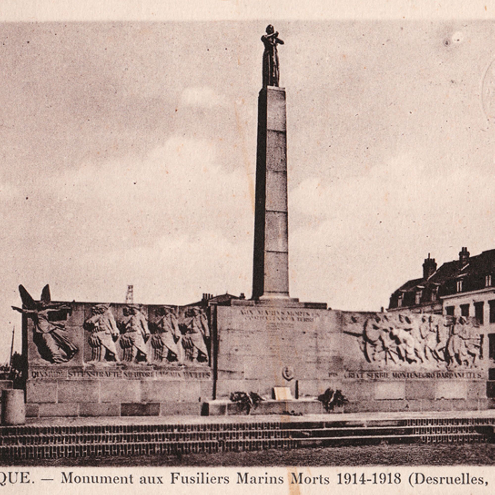 Les valeureux fusiliers marins Officiellement inauguré le 11 novembre 1929 sur le square Guynemer, le monument dit des Fusiliers marins commémore le souvenir de tous les marins français tombés durant la Grande Guerre et plus particulièrement ceux de la brigade de l’amiral Alexis Ronarc’h qui sauvèrent Dunkerque de l’occupation en bloquant les Allemands au-delà de l'Yser.