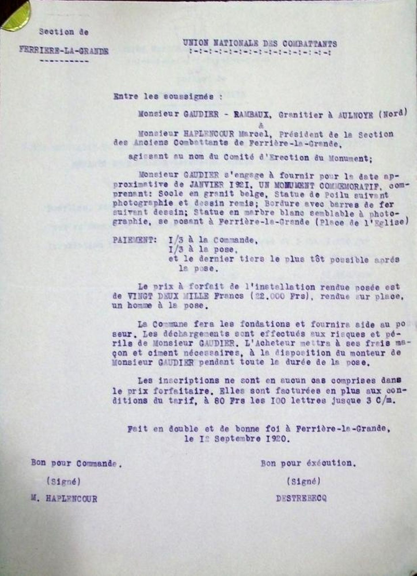 Entre Monsieur GAUDIER-REMBAUX granitier à Aulnoye et le Président de la Sction des anciens Combattants