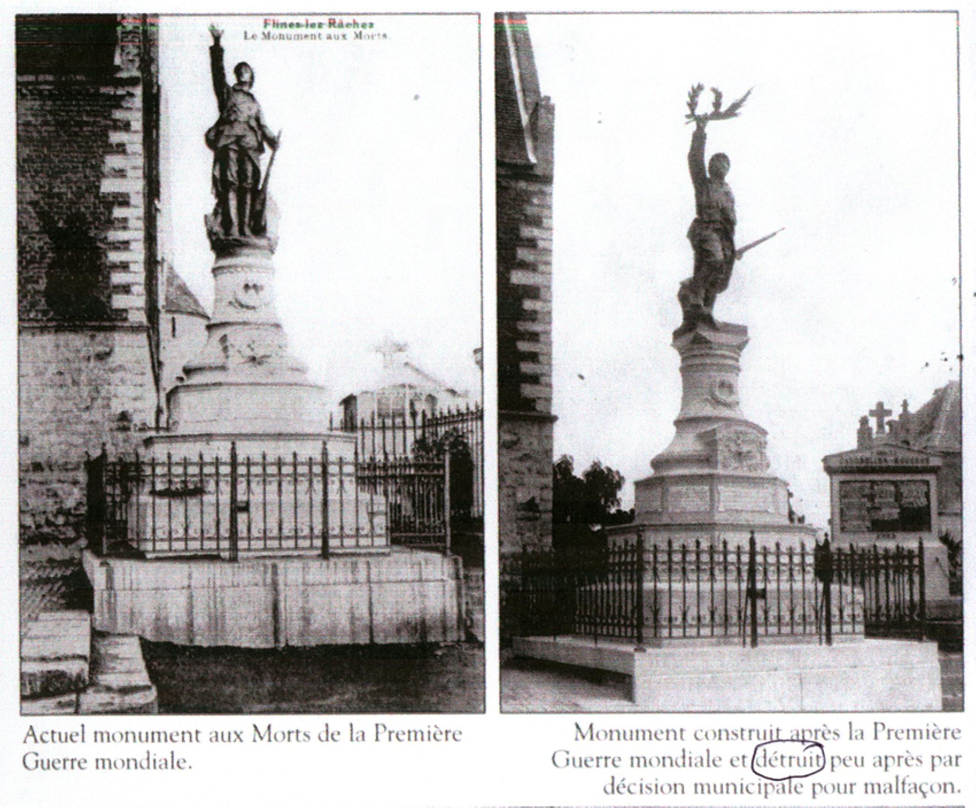 - En 1924, le conseil municipal demande le remplacement du "Poilu de la Victoire" par une autre statue, incriminant le travail du marbrier Le patrimoine des Communes du Nord, 2001, Tome 1, p. 691