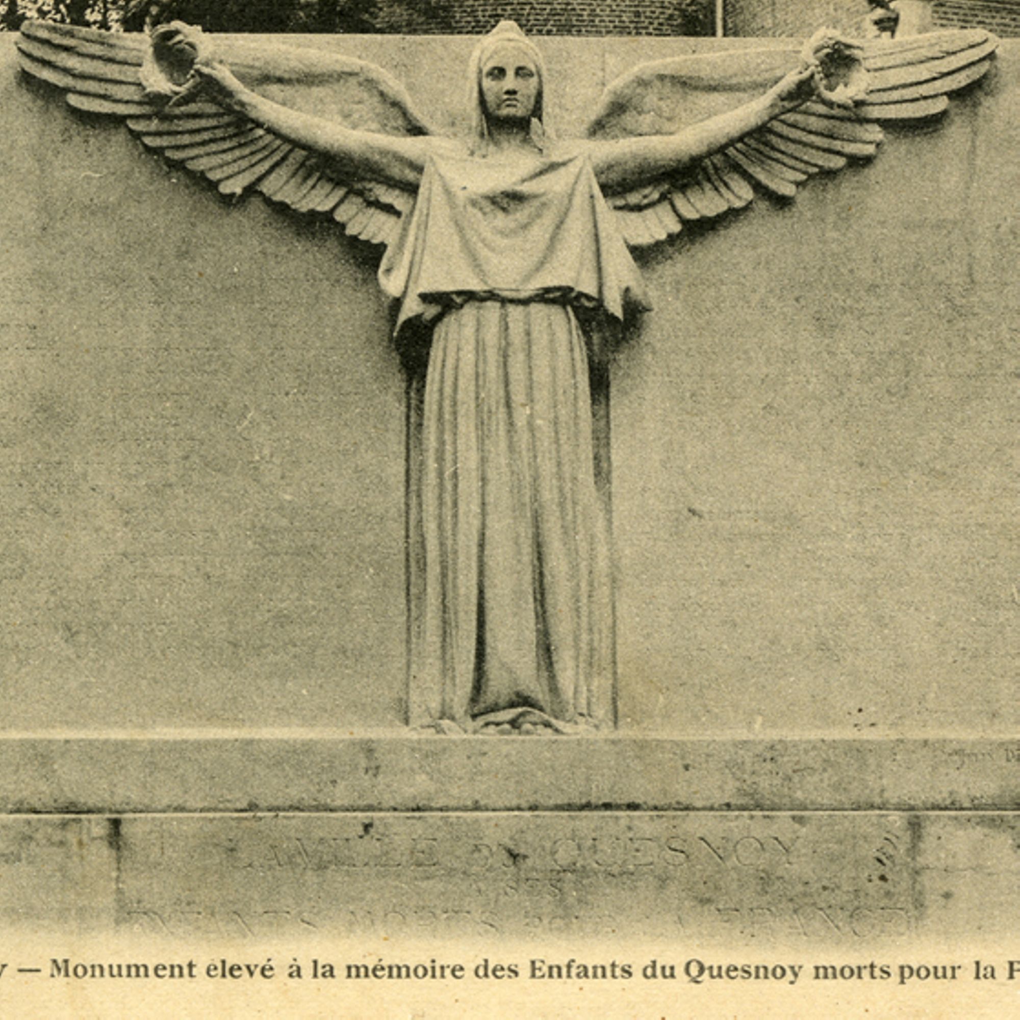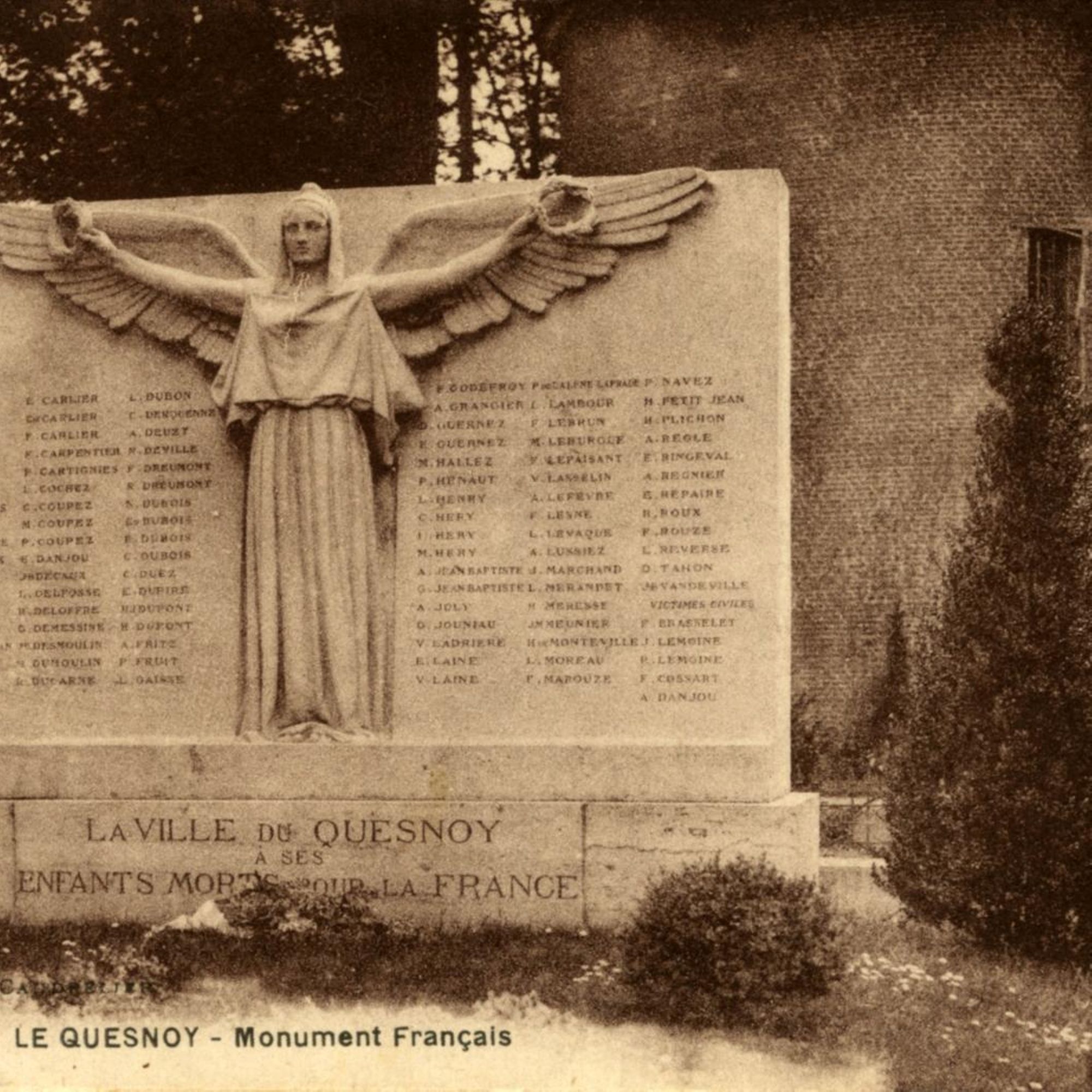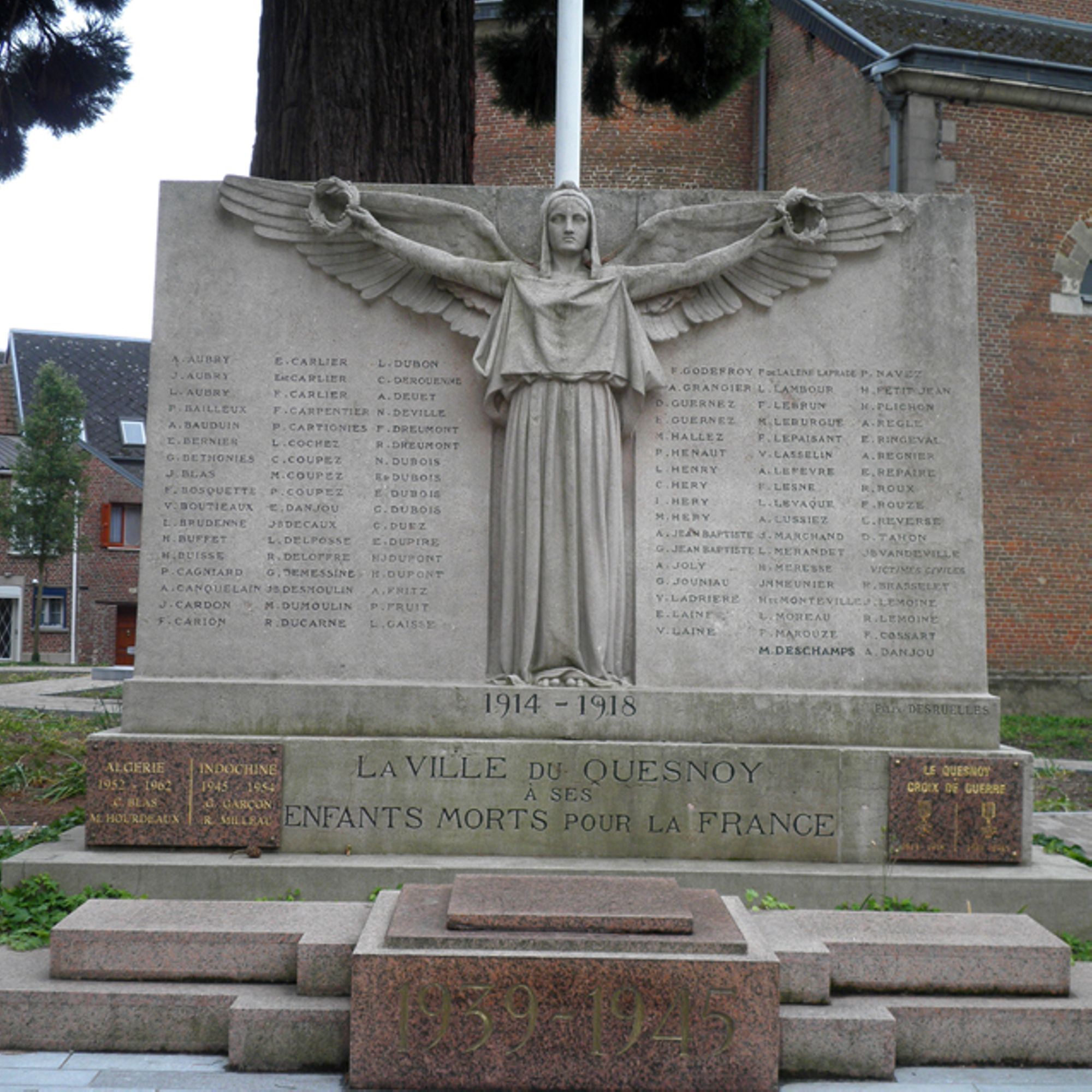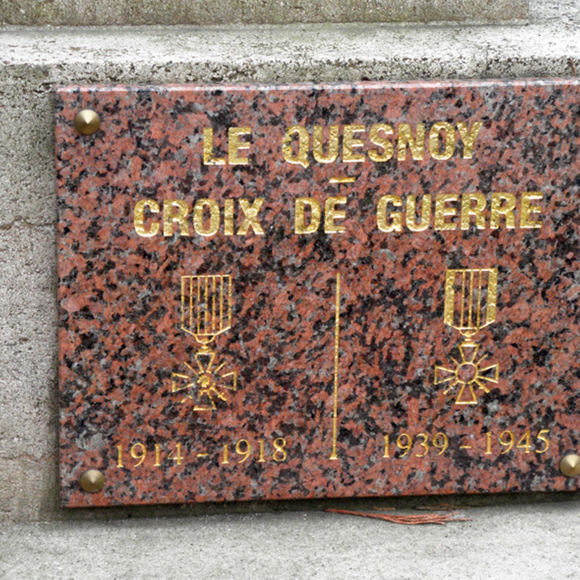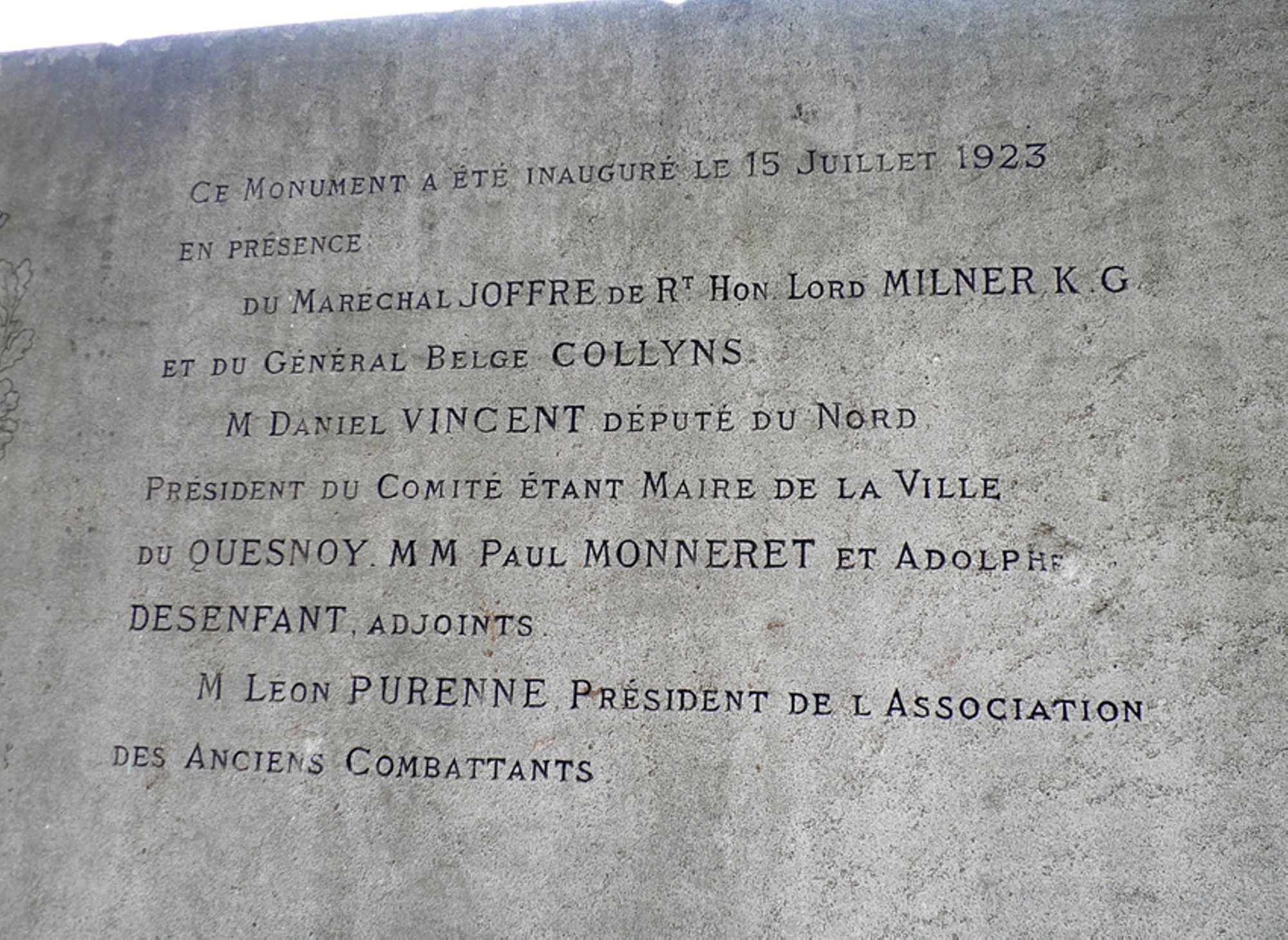 Ce monument fut inauguré le 15 juillet 1923 en présence du Maréchal Joffre, de Rt Hon Lord Milner K.G. et du général belge Collyns, M. Daniel Vincent député du Nord, président du Comité étant Maire de la ville du Quesnoy, MM. Paul Monneret et Adolphe Desenfant adjoints, M. Léon Purenne président de l'Association des Anciens Combattants