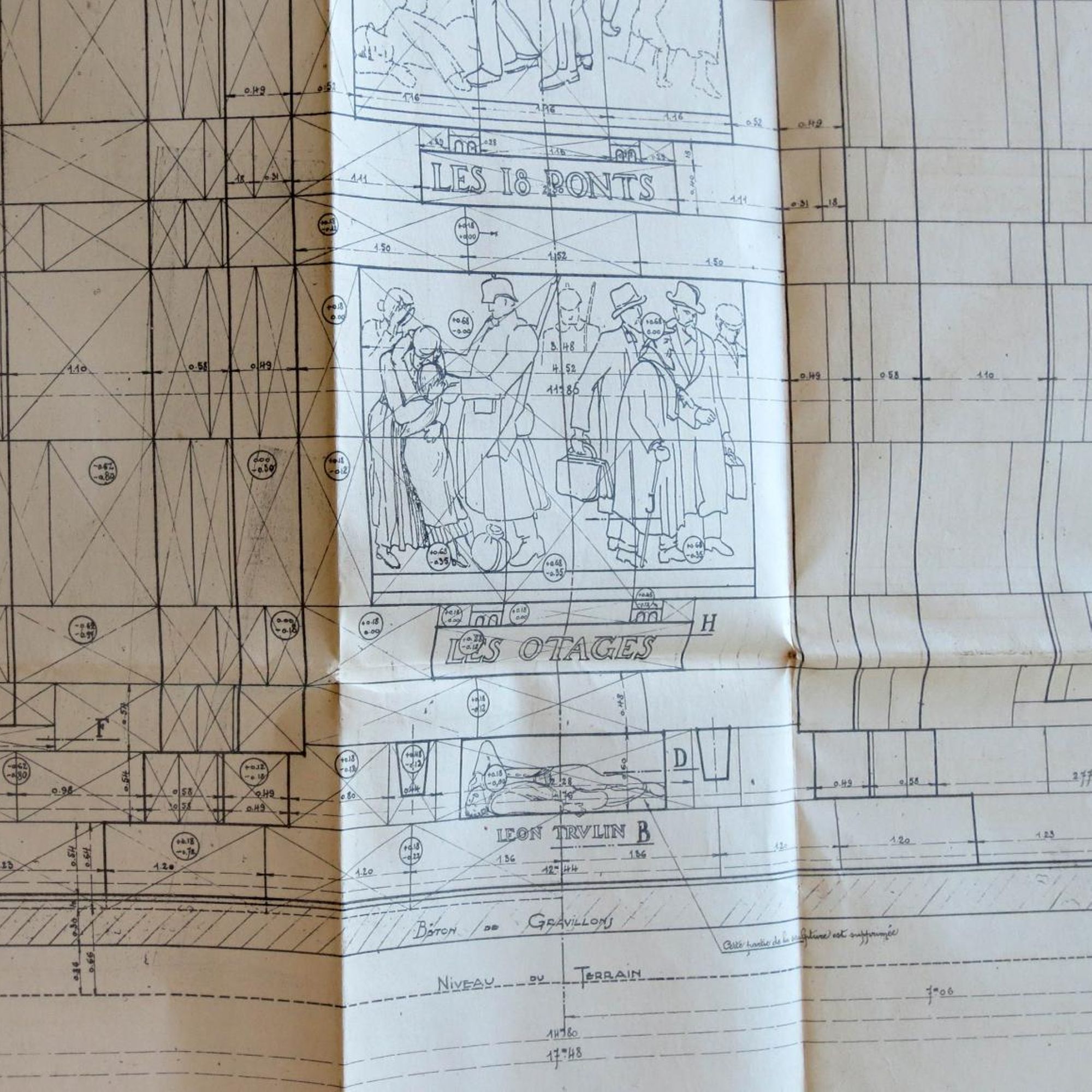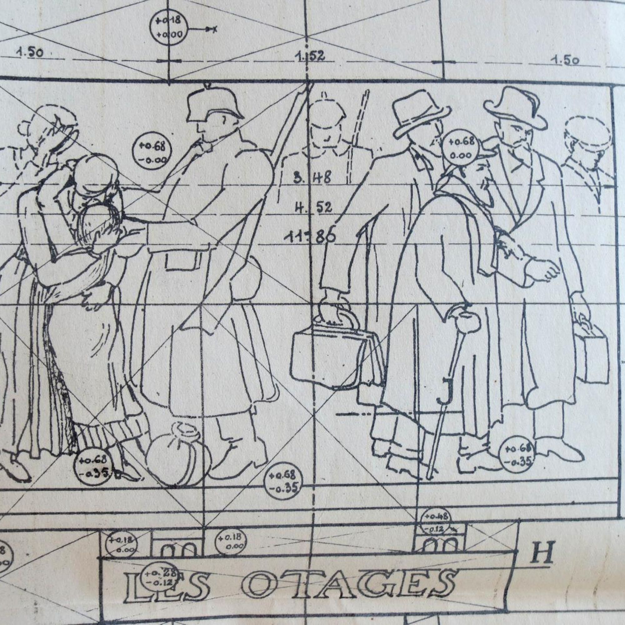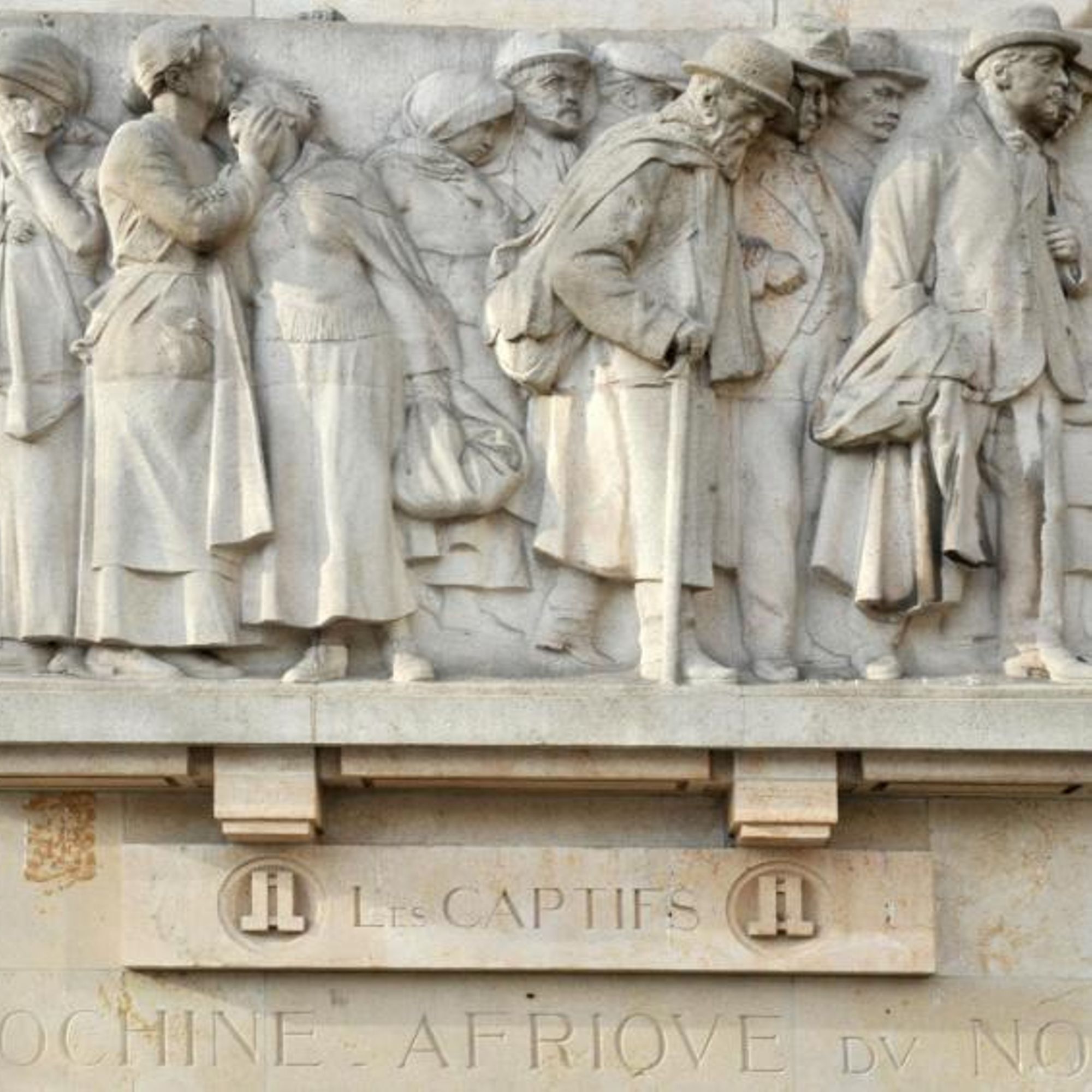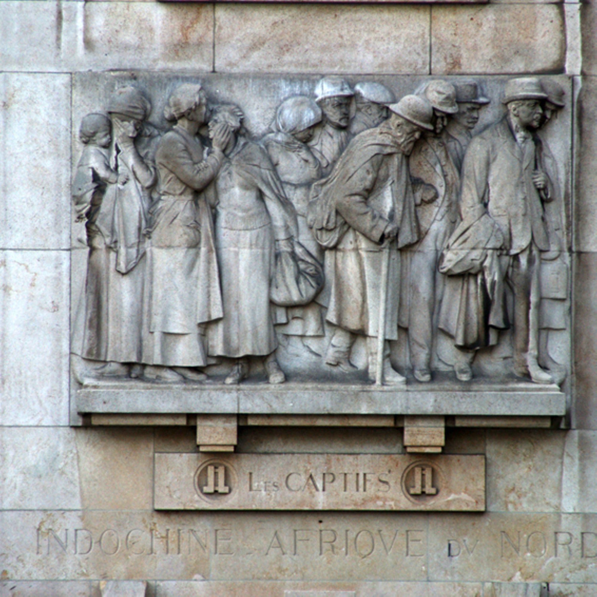 - Consiste en un haut pan de mur portant trois tableaux : les Captifs, la Relève et la Paix.