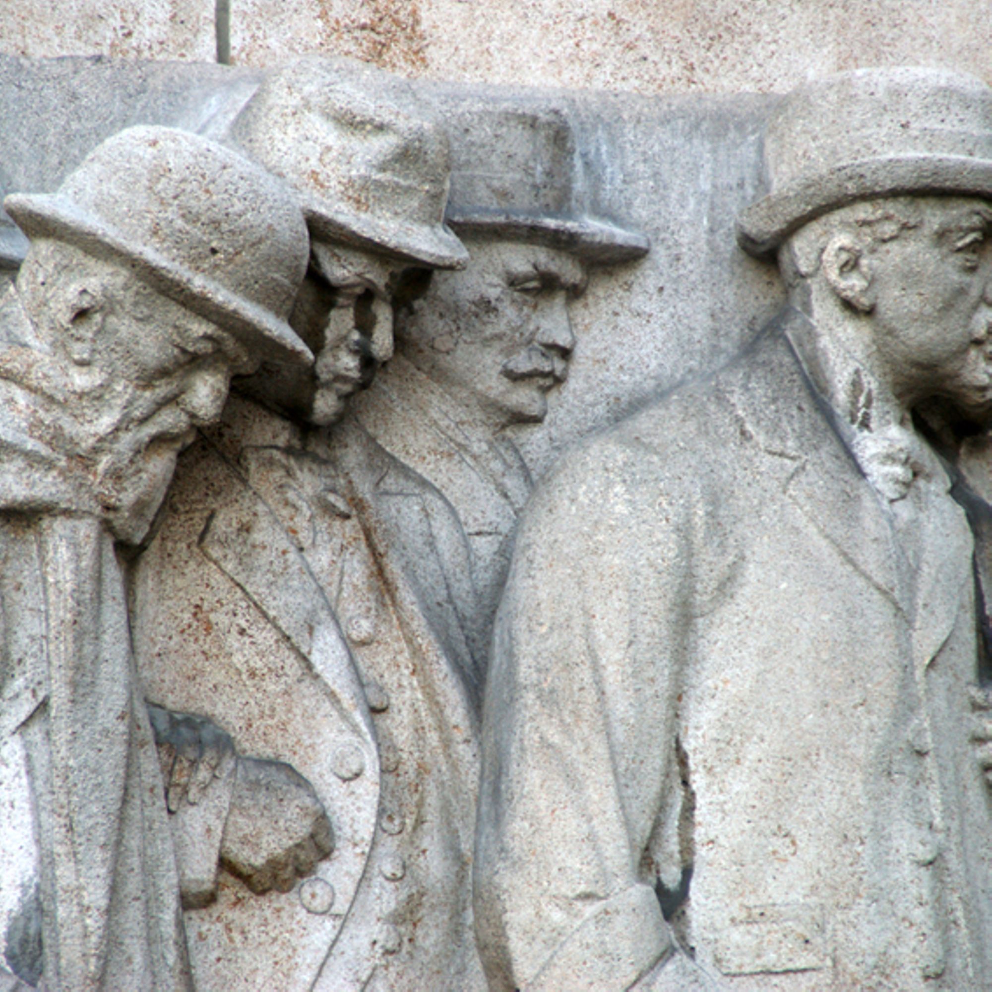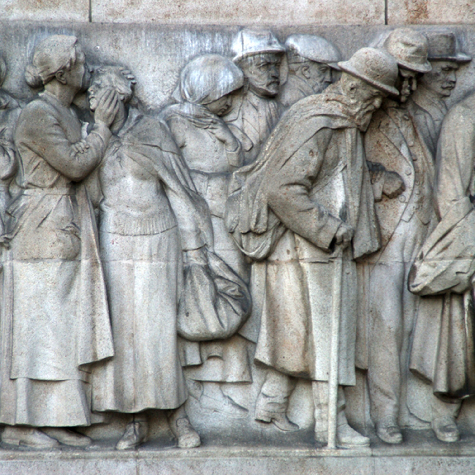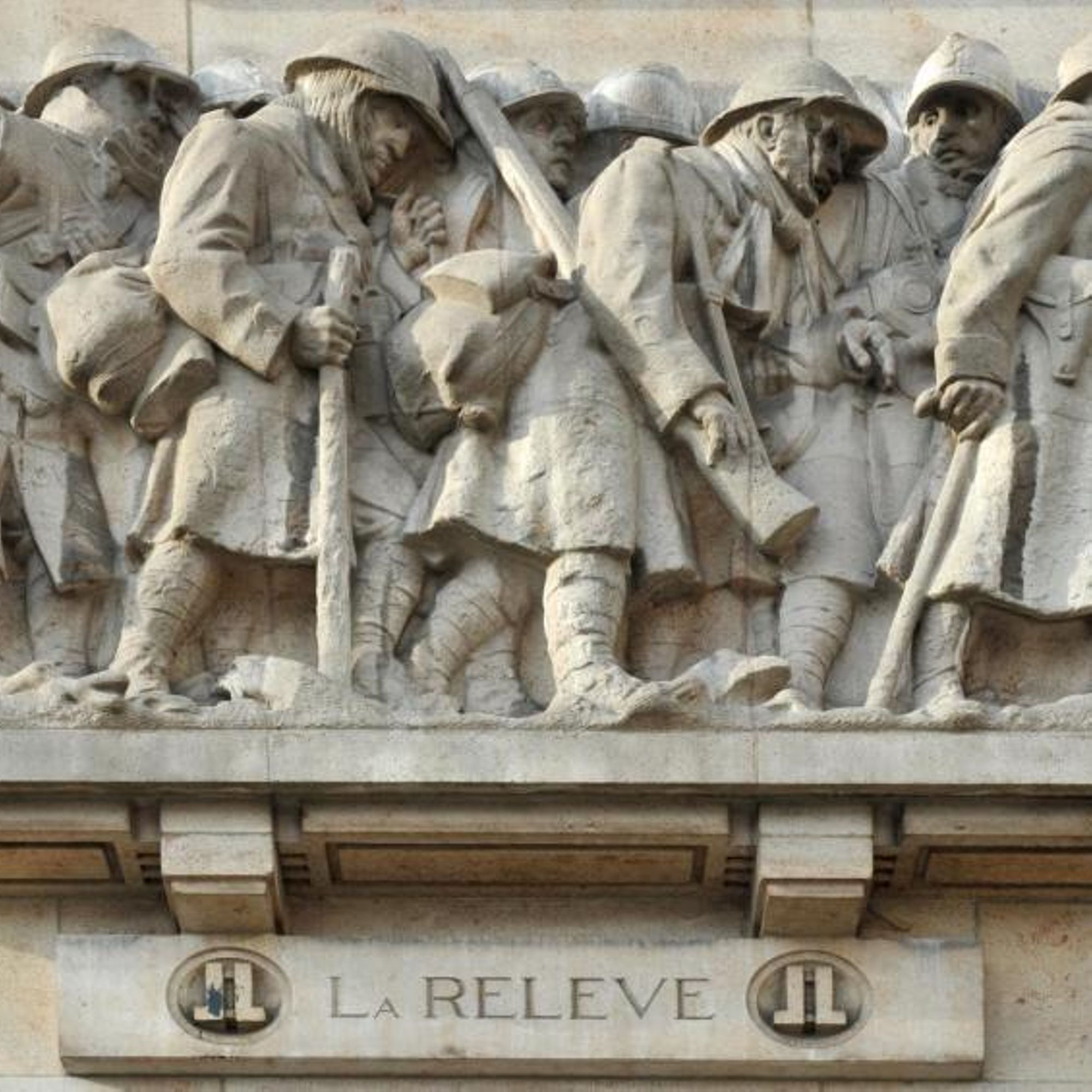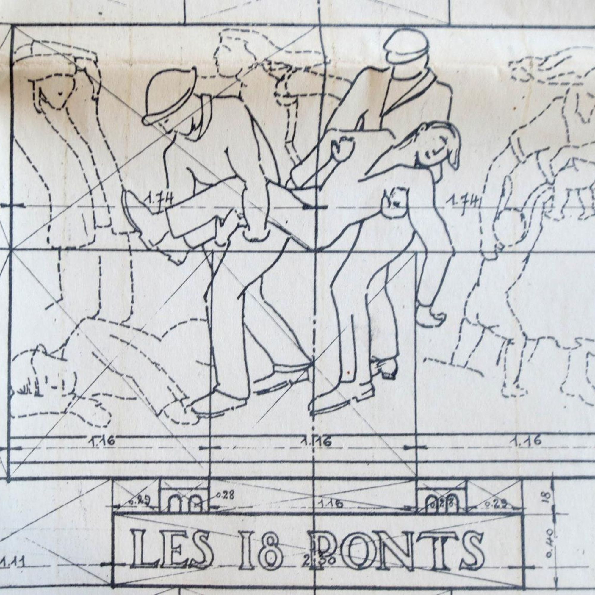 - Consiste en un haut pan de mur portant trois tableaux : les Captifs, la Relève et la Paix.
