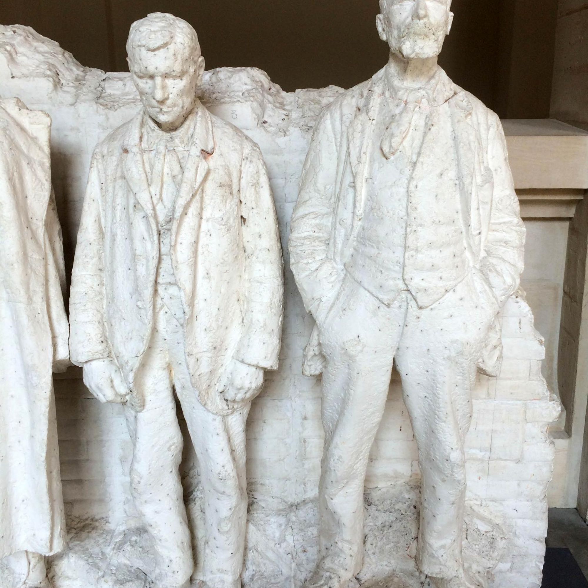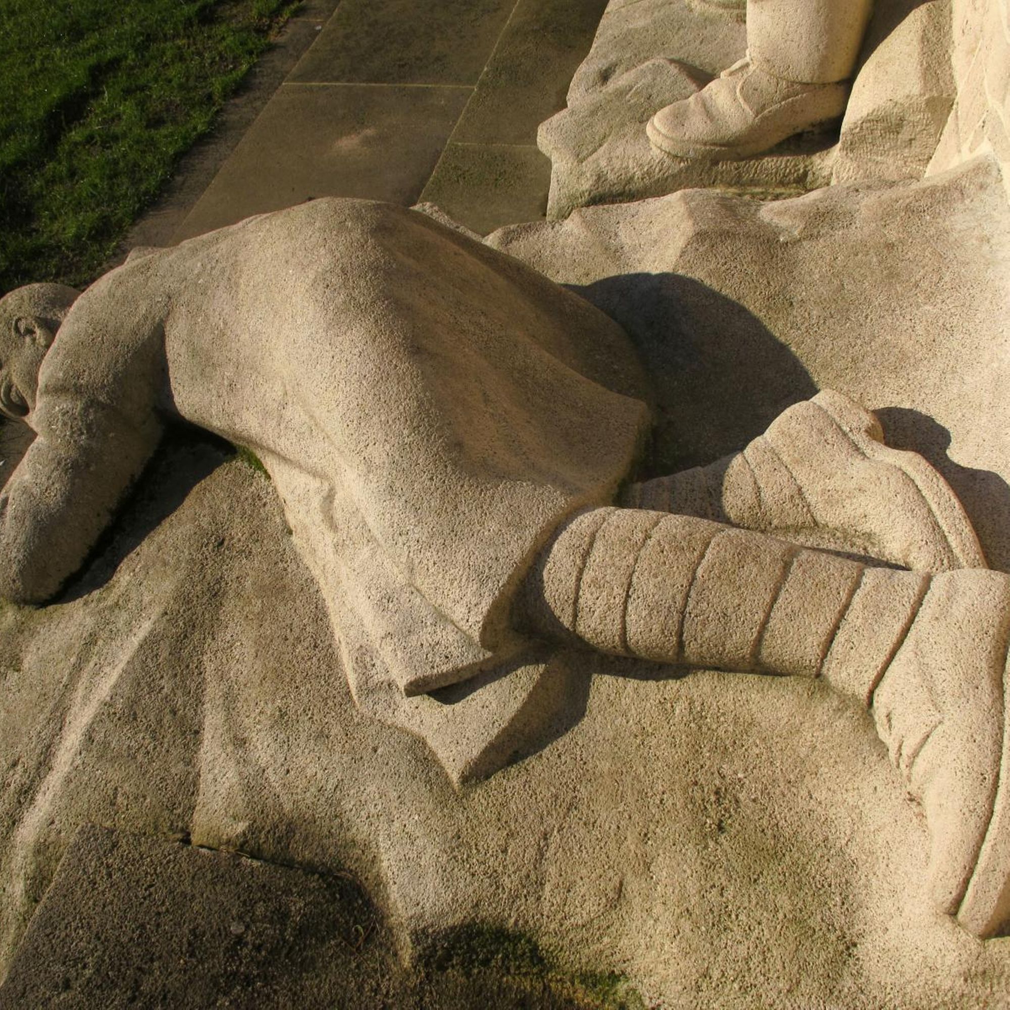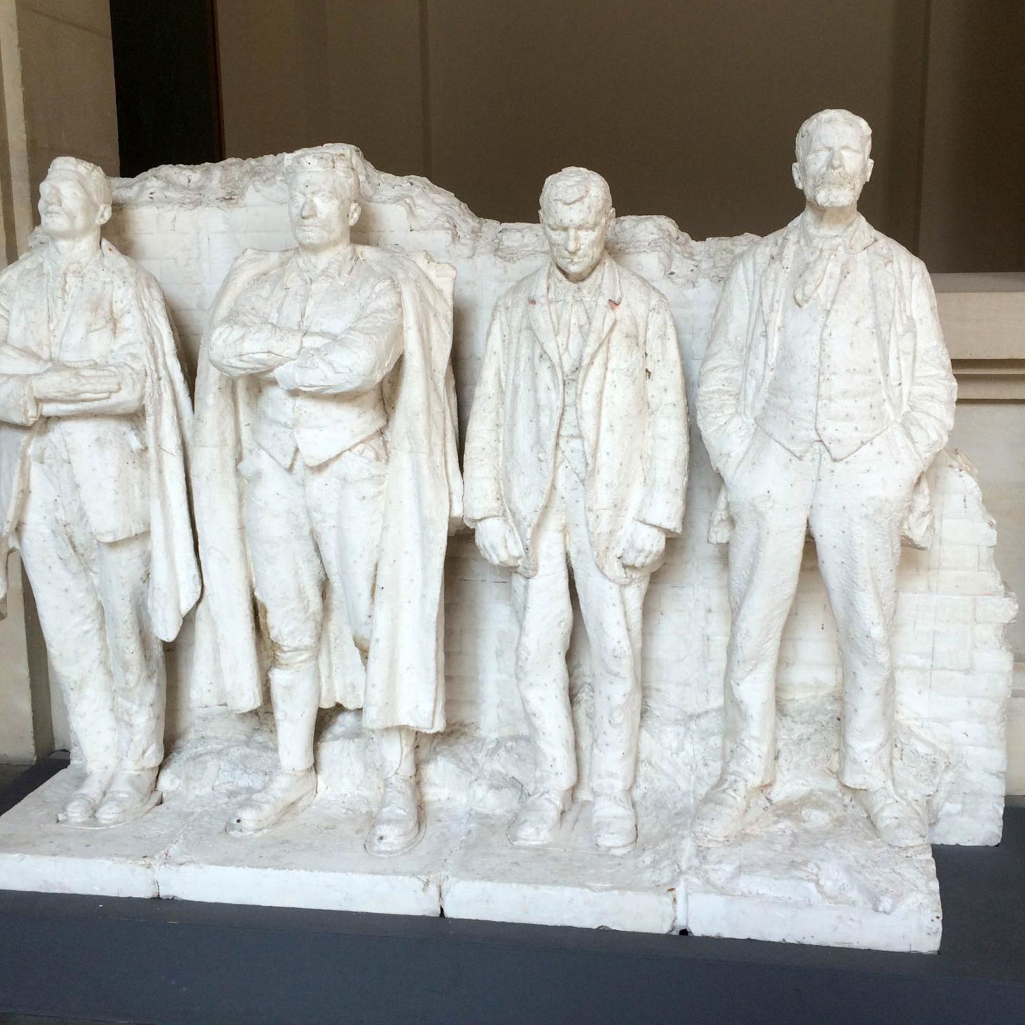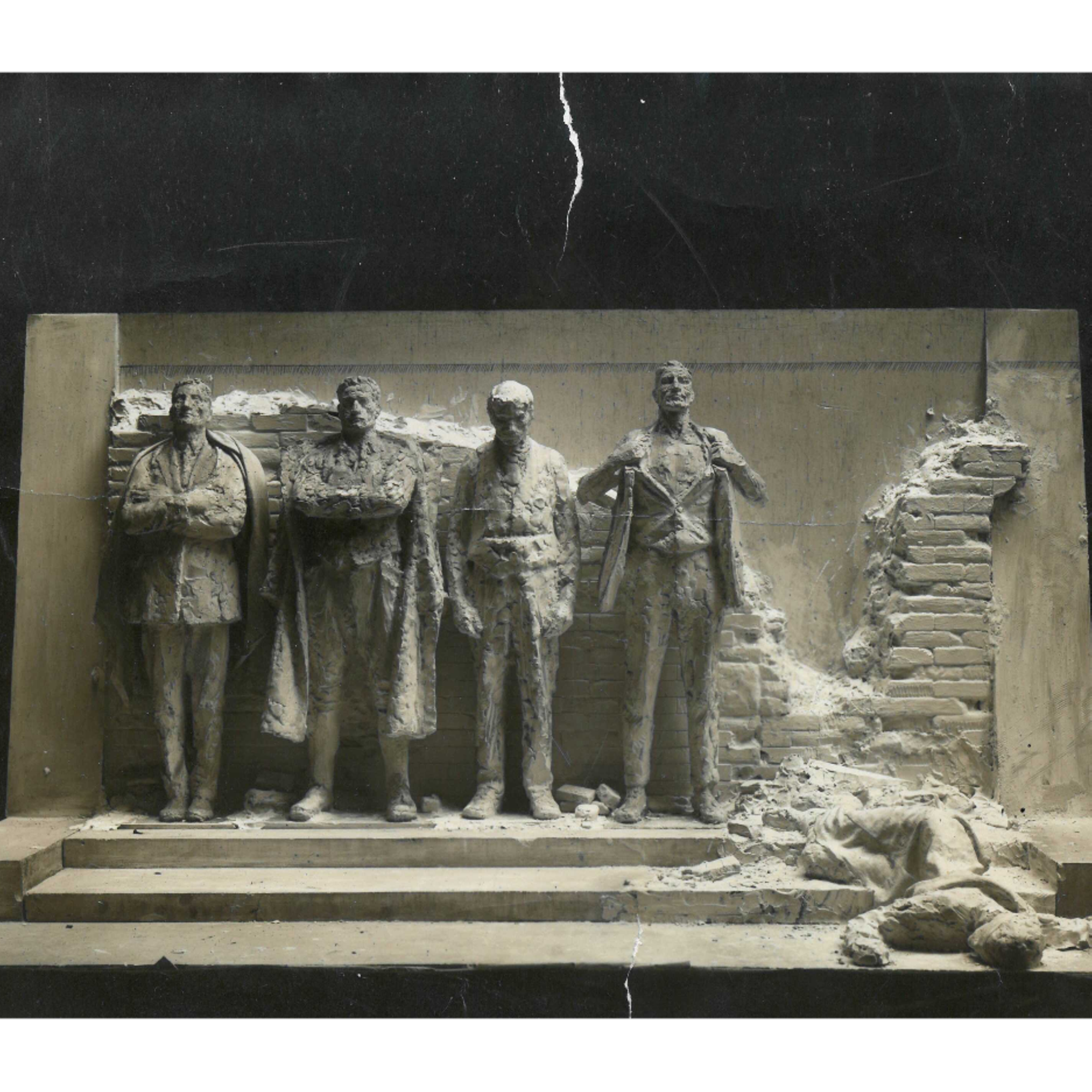 Ils sont représentés debout, adossés au mur qui les a vu tomber. En août 1940, ce monument est détruit à coups de pioche par les Allemands.