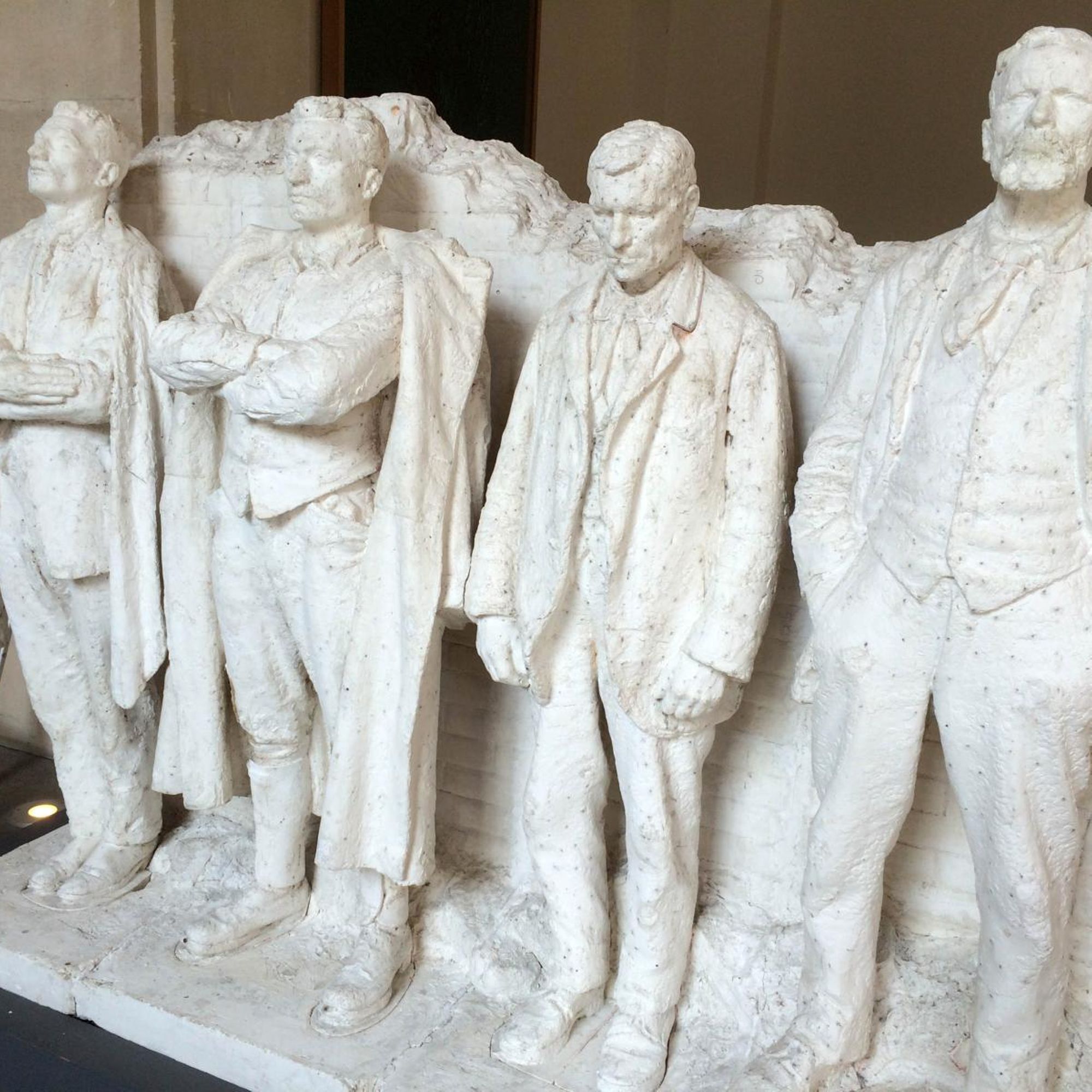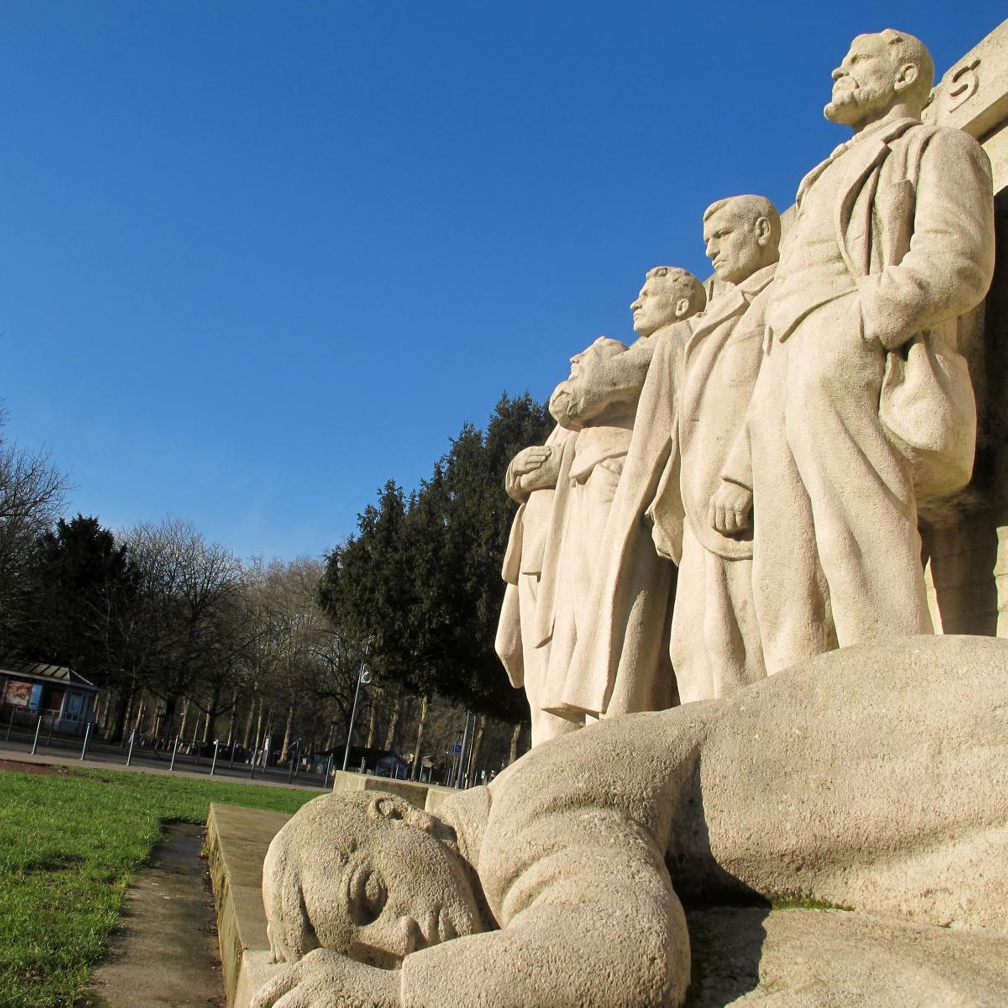 - de gauche à droite : Sylvère Verhulst, Ernest Deconinck, Georges Maertens, Eugène Jacquet et Léon Trulin Le monument a les dimensions suivantes : 7 m 20 de long, 3 m 60 de haut. Les personnages ont 2 m 40.