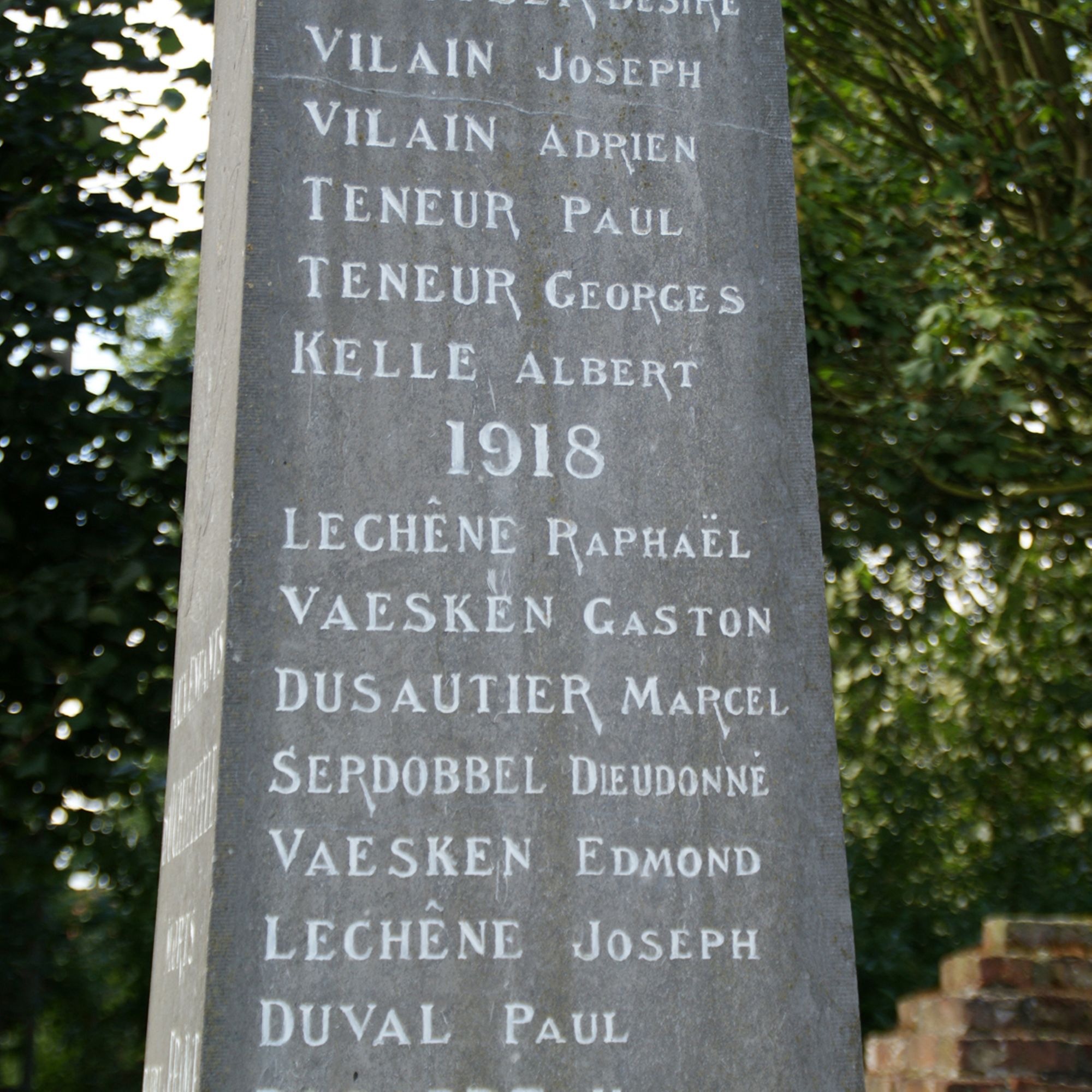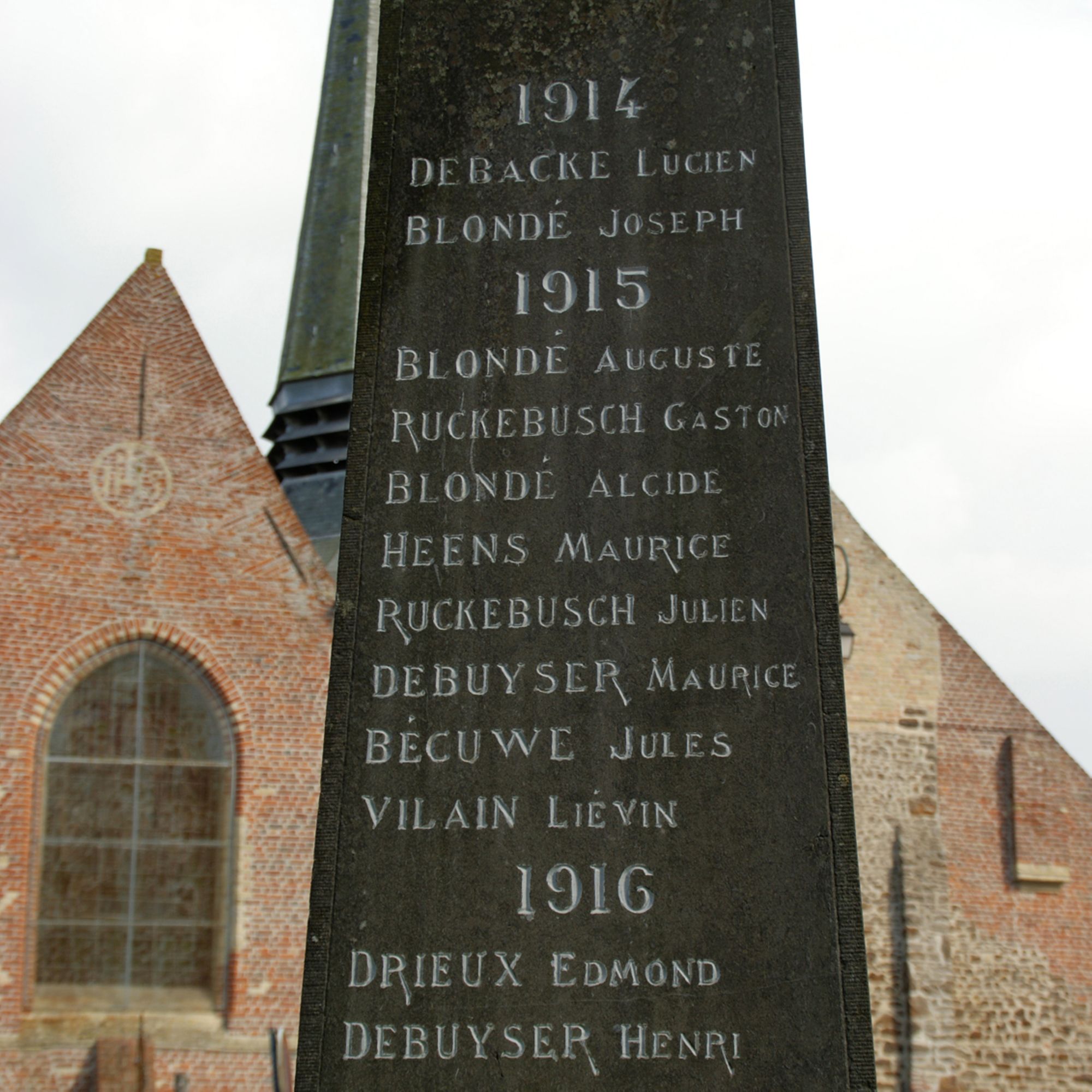 Voici les noms de ces héros : 1914.-Lucien Debacke, Joseph Blondé. 1915.-Auguste Blondé, Gaston Ruckebusch, Alcide Blondé, Maurice Heens, Julien Ruckebusch, Maurice Debuyser, Jules Bécuwe, Liévin Vilain. 1916.-Edmond Drieux, Henri Debuyser, Odillon Duval, Ernest Dusautier. 1917.-Désiré Debuyser, Joseph Vilain, Adrien Vilain, Paul Teneur, Georges Teneur, Albert Kelle. 1918.-Raphaël Lechêne, Gaston Vaesken, Marcel Dusautier, Dieudonné Serdobbel, Edmond Vaesken, Joseph Lechêne, Paul Duval.