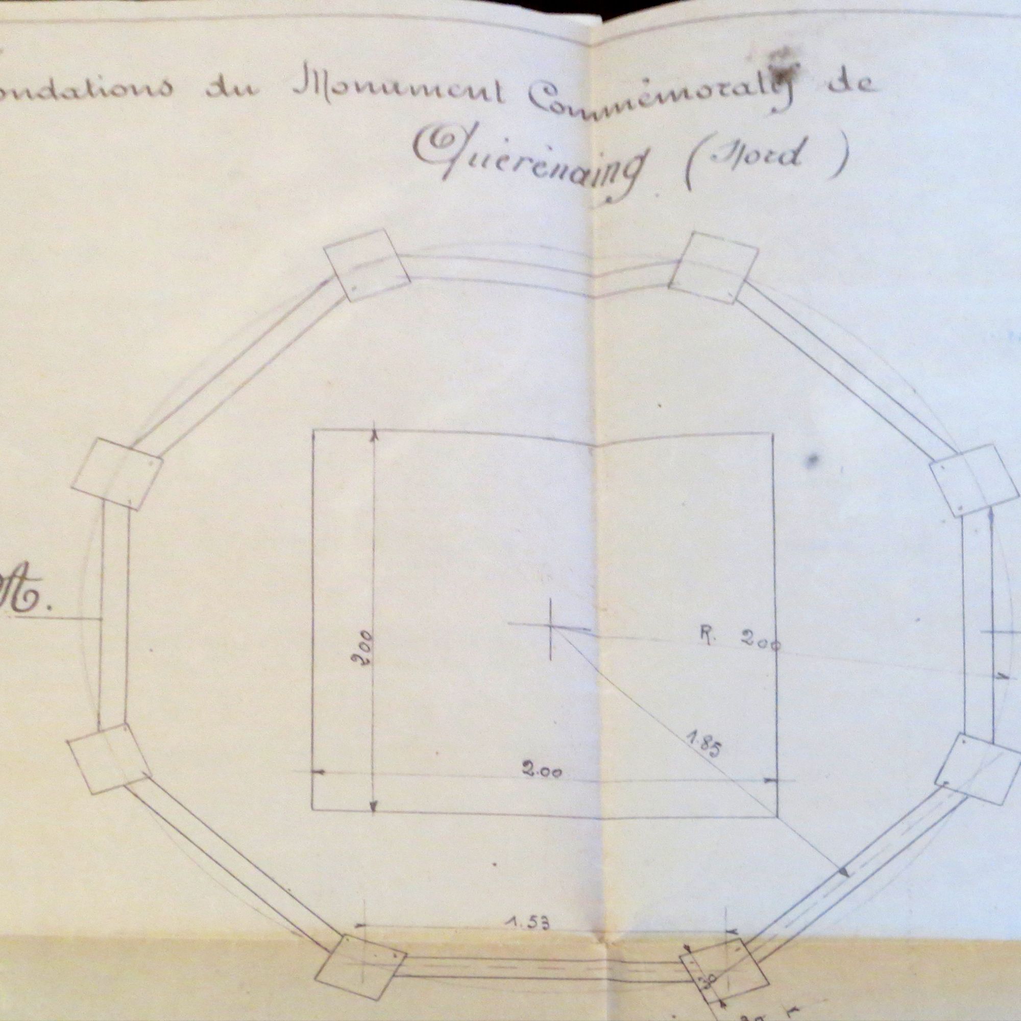 Il s'engage à faire exécuter les fondations du monument commémoratif suivant les indications du plan, ci joint, dressé par Monsieur Henri ARMBRUSTER architecte à Valenciennes