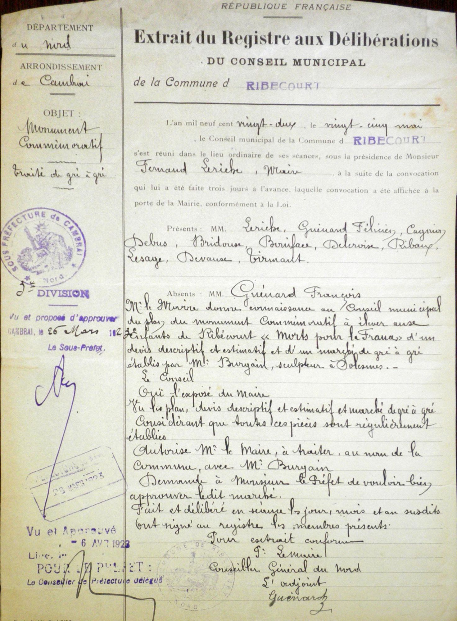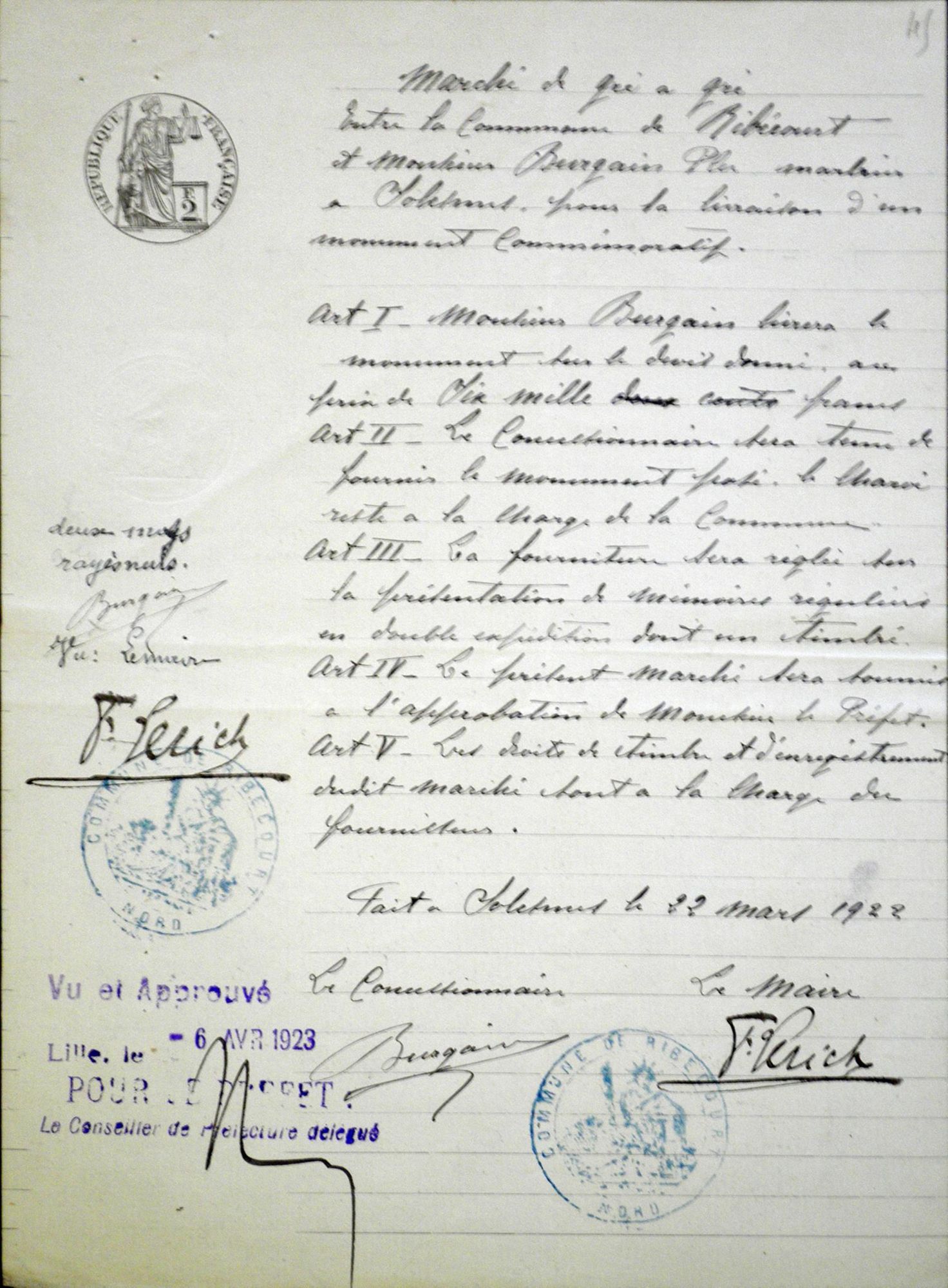 Entre la commune et M. Burgain-Plu, marbrier à Solesmes