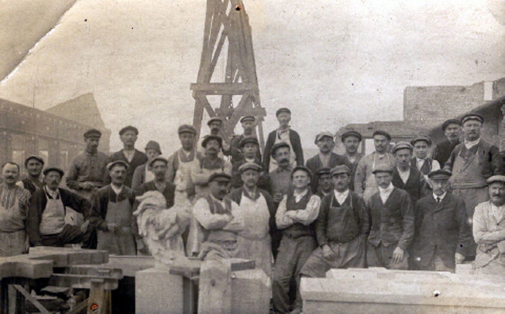 Monument aux morts d'Achicourt : les ouvriers construisant la monument