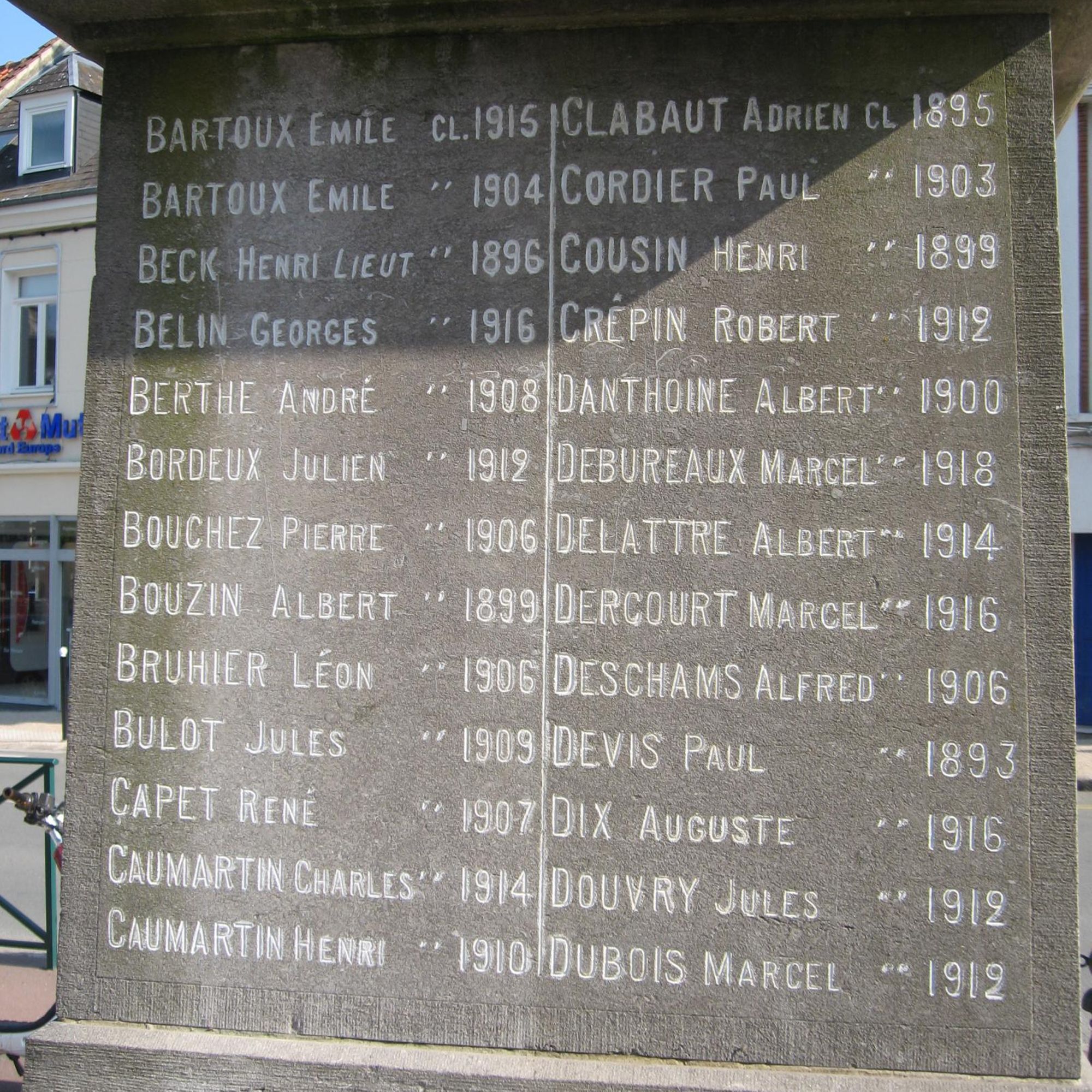Puis M. le Docteur Boutin monta à la tribune et, d’une voix claire, prononça au nom des Vétérans des armées de terre et de mer, un fort beau discours. Discours de M. le docteur Boutin « Mesdames, Messieurs, Mes Chers Camarades, Fidèle à la devise inscrite sur son drapeau, la 503ème section des Vétérans des Armées de Terre et de Mer a tenu à honneur de venir saluer de son étendard, en ce jour d’inauguration, les Fils d’Auxi-le-Château tombés au champ d’honneur, présenter aux familles des chers disparus l’expression de ses plus fraternelles et affectueuses sympathies. Prendre la parole dans cette grande et impressionnante cérémonie est peut-être un peu osé à moi qui, simple sociétaire, ai connu et vu se dérouler les deux guerres les plus meurtrières de l’histoire, sans y avoir pris une part effective. Mais j’ai répondu à l’appel de notre sympathique président et l’invitation des camarades Vétérans de 70 dont la voix tombe et dont l’ardeur s’éteint sous le poids des ans. Eh bien ! je suis fier d’avoir mérité la confiance de mes camarades vétérans qui, il y a 50 ans, ont versé leur sang pour défendre nos berceaux et nos foyers. J’en suis heureux aussi en constatant que l’affront fait à cette époque au blason de notre petite cité est enfin lavé par cette cérémonie. En effet, en me reportant à cette époque néfaste, à cette désastreuse aventure de 70, je vois par cette brumeuse et froide journée du 1er janvier 1871, l’arrivée des Allemands dans cette ville. A cette même place où s’érige ce mausolée, se trouvait une véritable montagne de denrées et de munitions de toute espèce. Les denrées étaient destinées à ravitailler les vandales qui envahissaient nos régions. Mais les munitions vous étaient destinées, mes chers camarades vétérans de 70, vous qui veniez de verser votre sang à Pont-Noyelles et qui alliez vous sacrifier quelques jours plus tard dans les plaines de Bapaume. Ah ! combien d’entre vous sont tombés la rage au cœur et le désespoir dans l’âme en voyant que votre sacrifice était inutile et que la victoire ne couronnerait pas vos efforts. Combien aussi depuis ce temps auraient voulu voir le succès final de la grande guerre et sont partis trop tôt, ravis à notre affection, comme le regretté président-fondateur de cette section, M. Froissart. A ce sujet, permettez-moi de citer quelques paroles d’adieu que je lui adressai alors. En parlant de notre drapeau, je disais : Mais quant il passera en des mains plus heureuses, Notre fier étendard, notre fidèle ami, Quand il effacera les dates douloureuses, Votre cœur bondira sous la terre endormi ; Votre corps tremblera sur sa couche de pierre, Votre spectre rongé sortira du tombeau Et vous reconnaîtrez de vos yeux sans lumière Le sang des vétérans dans les plis du drapeau. Eh bien ! cette heure a sonné. Le drapeau tricolore relevé par les mains jeunes et vigoureuses des enfants, est aujourd’hui victorieux et triomphant. Trempé dans le sang des aïeux et des fils, il a lavé l’affront de 70 et effacé la tâche qui ternissait le blason de notre cité. Si les mânes des ancêtres tombés à Wissembourg, à Forbach, à Freschwiller, à Sedan, à Saint-Privat et à Champigny pouvaient revenir et assister à cette cérémonie, elles vous crieraient à vous, les survivants de la grande guerre : « Merci enfants, vous êtes dignes de vos pères ». Mais aussi, pour arriver à ce résultat, que d’angoisse, que de sang, que de larmes. Vous vous rappelez cette après-midi du 2 août où le tocsin donnait le signal de la mobilisation. Avec quel entrain et quelle espérance tous nos soldats partirent ! « Bientôt nous reviendrons disaient-ils, quand l’Allemagne sera vaincue ». Hélas ! non, la guerre ne fut pas courte, et l’Allemand fut tenace. Ah ! Il l’avait bien préparée sa guerre, en silence, pendant 44 ans, jusqu’au jour où, certain du succès, il violait notre frontière et celle de la Belgique. Certes oui, il était certain du succès ; il avait même par avance partagé le pays à sa convenance. Au cours d’une de ces orgies qui lui étaient familières, le Kronprinz ne s’était-il pas écrié : « Que fera donc la France avec ses quelques milliers de soldats contre nos innombrables légions ? » Que fera la France, sinistre pantin ? Elle combattra, mais ne se rendra pas. On le lui fit bien voir. Ce fut dur. Les jours sombres apparurent. Nous vîmes les défilés lamentables d’évacués, les dépôts de nos régiments du Nord en retraite, traverser notre ville et les Boches envahir nos régions encore une fois. Le vent de Charleroi nous apportait jusqu’ici le gros rire des Teutons qui, gorgés de champagne et hurlant leur joie dans des orgies infâmes, accouraient en chantant vers la capitale. Paris ! Paris, l’atelier des doutes et de l’universelles luxure. Paris, la serre des herbes empoisonnées, le café chantant de l’Europe, la ville des modistes et des caricatures. Paris, que notre vieux Bon Dieu nous a chargés de purifier. Un pas de parade et nous serons dans Paris. A ce torrent d’injures, la France déjà meurtrie et affaissée, frissonna. Elle se dressa elle aussi, leva les yeux et regarda autour d’elle. Elle vit sa fille aînée, cette même ville de Paris si insultée, mais aussi si convoitée, lui montrant d’un geste implorant ses monuments : le Panthéon avec ses grands hommes, le Sacré Cœur de Montmartre avec les vœux des millions de catholiques français, les Invalides avec le tombeau de son empereur et ses mille trophées de victoire, leurs dômes, étincelants de lumière dans la splendide clarté de la fin d’un mois d’août délicieux et lui lançant cette parole de désespérance : « Seront-ils donc Allemands » ! A l’appel de détresse de la mère Patrie, un million et demi de poilus, sous les ordres d’un chef, nouveau Bayard sans peur et sans reproche, ré
