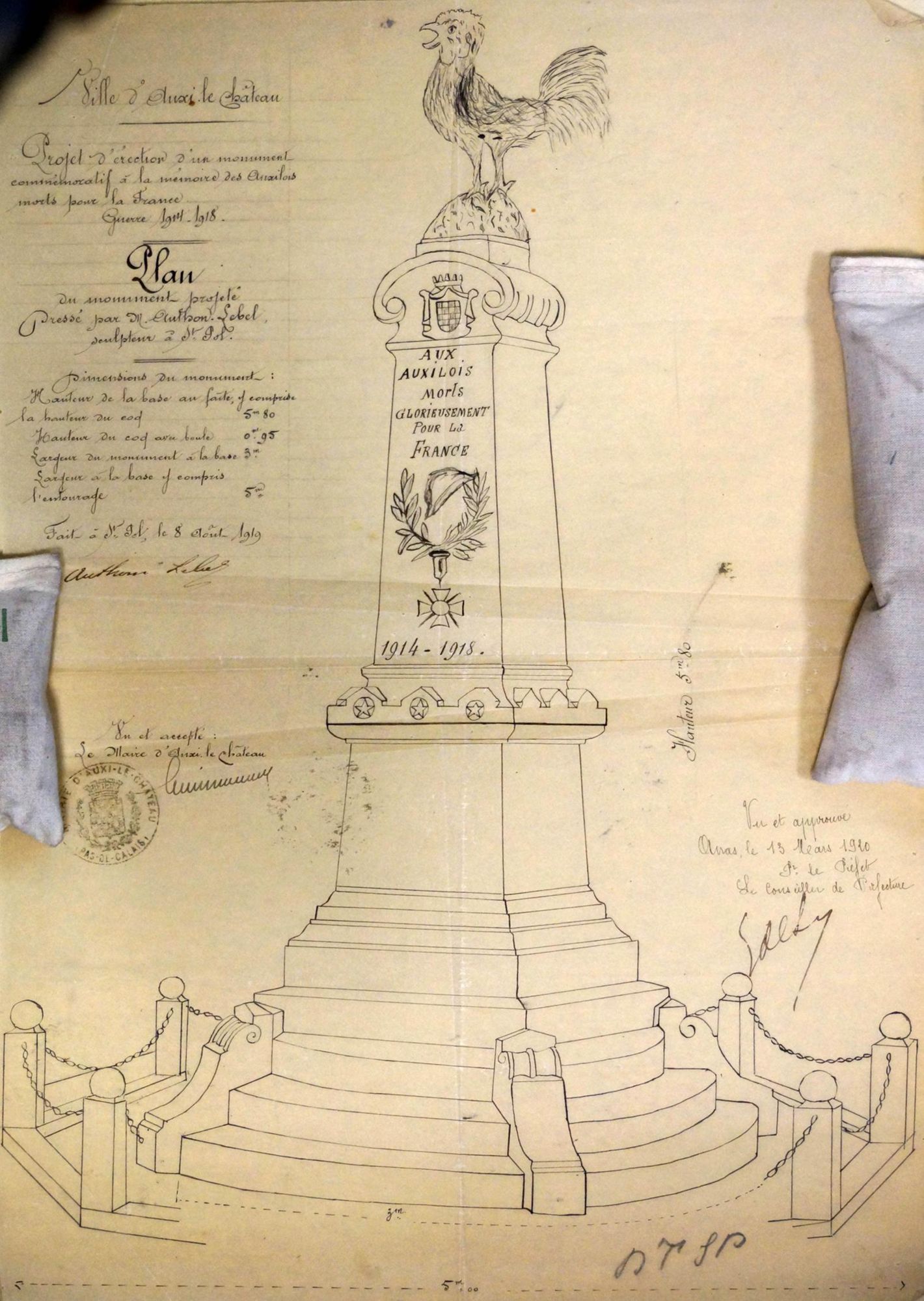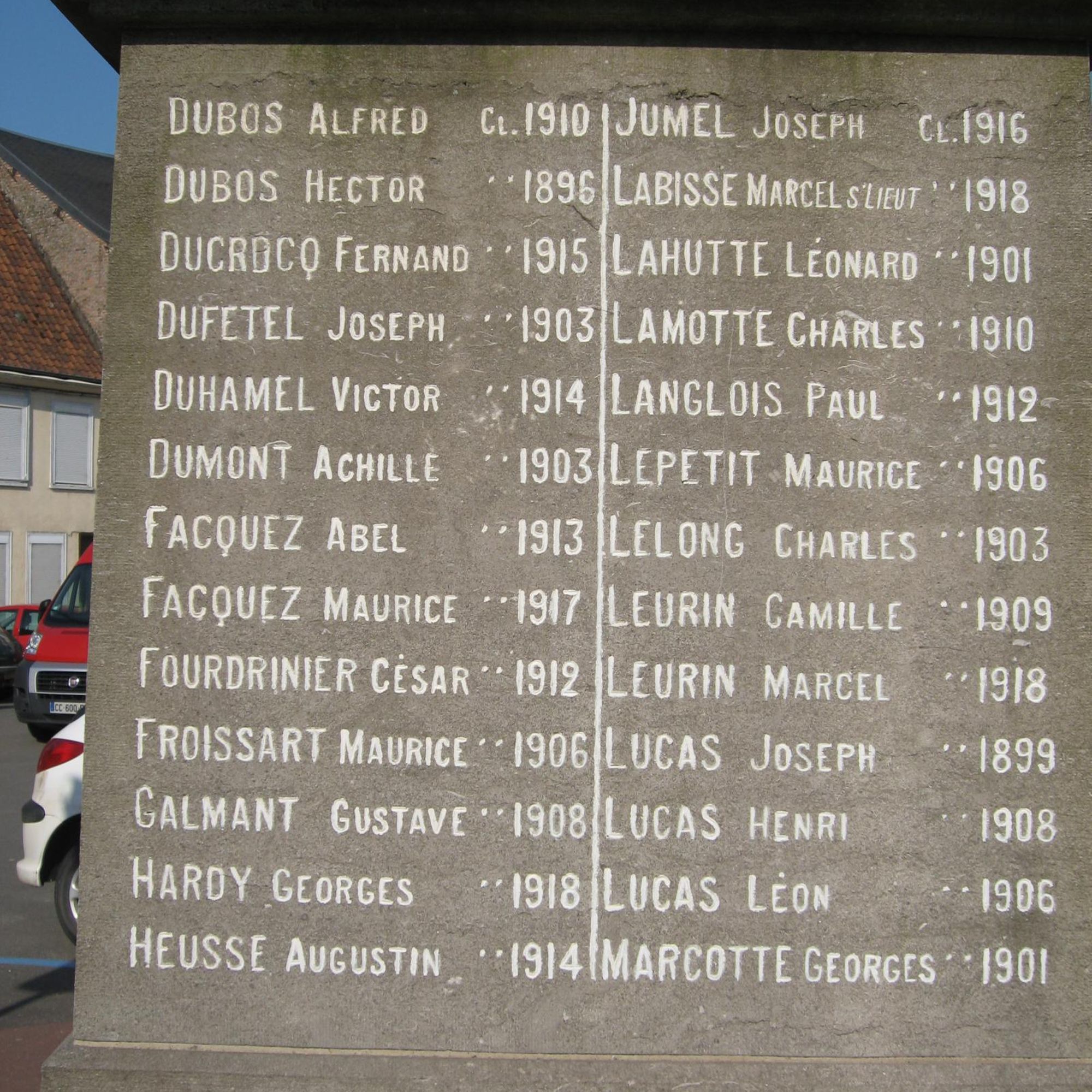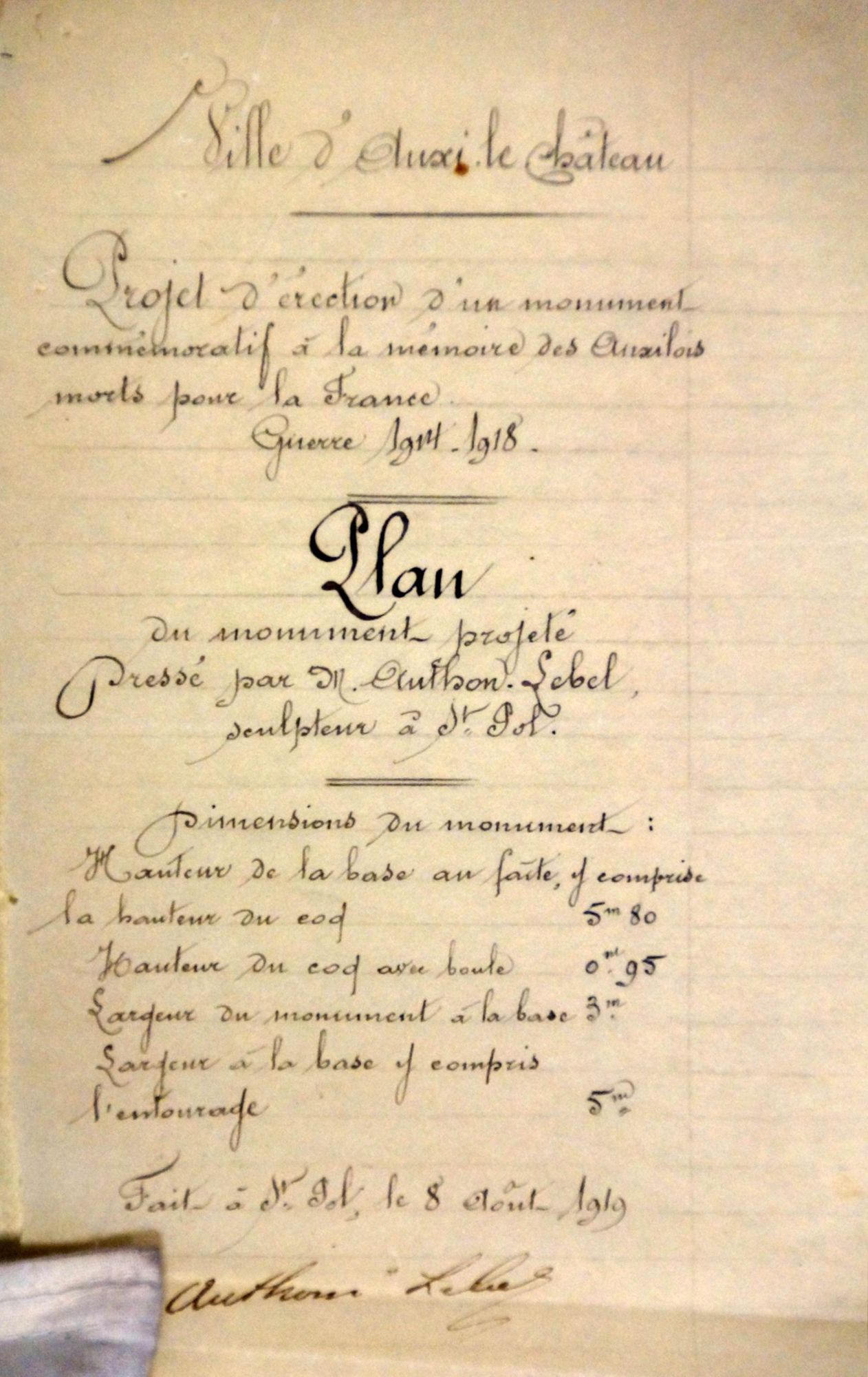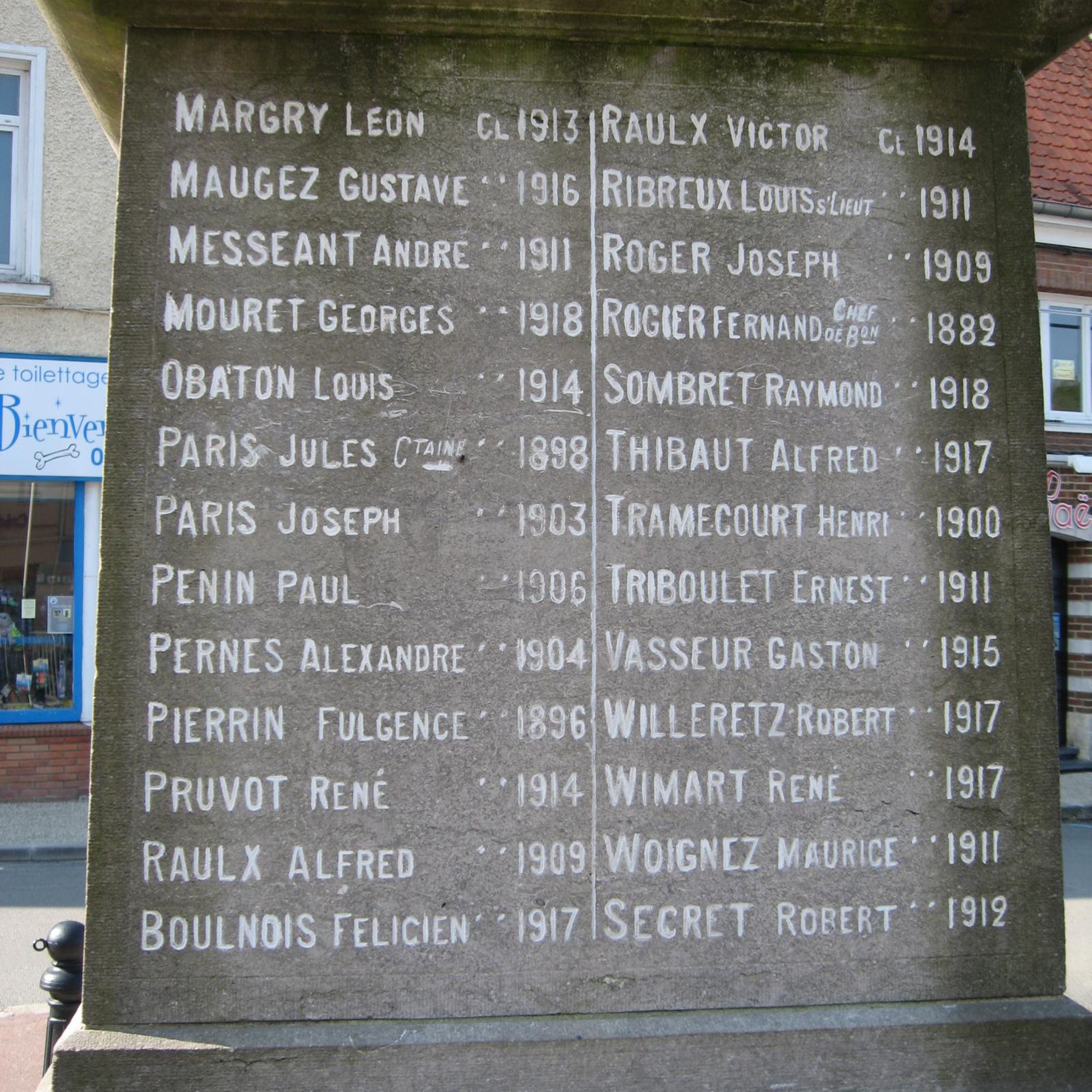 Le défilé eut lieu sans à-coups, dans un ordre parfait. Après avoir suivi les rues d’Hesdin, d’Abbeville et d’Amiens, le cortège revint par la ru de Wavans sur la Place de la Mairie. Tout le monde se groupas alors autour du monument fort bien conçu par M. Authom-Lebel de Saint-Pol, que beaucoup voulurent féliciter. M. Marais, sous-préfet, procéda à l’enlèvement du voile tricolore qui recouvrait le monument, et M. Couvillers-Gaudry, un mutilé, monta à la tribune. Après avoir fait l’appel des auxilois morts au champ d’honneur, appel auquel les enfants des écoles répondirent tous ensemble par ces paroles si glorieuses : « Morts pour la France ! », M. Couvillers-Gaudry, confiant le monument à la garde de la municipalité, honora la mémoire des camarades tombés pour la défense du pays et rendit hommage aux familles de ces héros. Le discours de M. Couvillers terminé, les jeunes filles de l’école de Mme Lemaigre chantèrent les vers célèbres de Victor Hugo : Ceux qui pieusement sont morts pour la Patrie… A la foule vivement impressionnée par les paroles si belles de notre grand poète, M. Maincourt, maire, parla alors en ces termes : Discours de M. Maincourt Après avoir remercié ses administrés de leur empressement à souscrire pour l’érection du monument aux morts ; après avoir rappelé l’appel de la Patrie en danger, l’élan avec lequel ses défenseurs y répondirent, les heures douloureuses que suivit la victoire de la Marne, M. Maincourt ajoute : « Pendant plus de 4 ans, ce fut une lutte ingrate et meurtrière, où nos chers soldats, par leur courage opiniâtre et leur foi en la victoire, étonnèrent le monde, qui leur avait fait jusqu’alors une réputation de légèreté et d’inconstance. Hélas ! pendant ces autre années de combats sur terre, sur mer, dans les eaux, dans les aires, au milieu des balles, des obus, des gaz, des liquides enflammés, que de vies fauchées en pleine force et en pleine jeunesse ! 1.500.000 morts dorment là-bas des côtes des Flandres aux frontières de Suisse, dans les plaines de l’Yser, d’Artois, de Champagne, dans les Vosges et d’alsace, devant Verdun et sur les rives de la Marne. Auxi-le-Château a fourni son contingent dans cette sanglante hécatombe. 78 de ses enfants ne sont pas revenus. Où sont-ils ? Dans quelle sépulture anonyme reposent maintenant ces morts anonymes ? Dans quel champ ? Au bord de quelle route la funèbre tranchée fut-elle ouverte, puis comblée ? Qu’importe ! Ils dorment dans la terre de France ; elle leur sera légère. Certes, il est dur, il est pénible pour la mère, pour l’épouse, pour la fiancée, de ne pouvoir s’agenouiller sur le tertre sacré où dort le cher héros, de ne pouvoir déposer sur sa tombe la fleur du souvenir. Mais à chaque fête des morts que novembre ramènera, vous aurez la suprême consolation de pouvoir venir au pied de ce monument élevé à la mémoire de ces grands morts par la piété de leurs concitoyens. Vous lirez leurs noms, et s’il est vrai, comme on l’a dit, que l’esprit des morts aimer à planer dans les lieux qui leur furent familiers, peut-être les entendrez-vous dire : « Ne pleurez pas ; notre mère était attaquée, nous l’avons défendue, nous sommes morts pour la France vive. » Et là-bas dans ces plaines redevenues silencieuses, dans ces plaines où se jouèrent les destinées de l’Europe et peut-être du monde, nos morts nous parlent et nous disent : « N’oubliez jamais ». C’est pour que les générations futures n’oublient pas, que nous avons élevé ce monument. Ce qu’elle ne doivent pas oublier, c’est l’héroïsme de ceux dont les noms sont gravés sur cette pierre et dont le sacrifice sauva nos libertés. Ce qu’elles ne doivent pas oublier, c’est que la race germanique est toujours debout. Sa haine pour la France, est plus vivace que jamais, et le Rhin est une bien faible barrière. N’oublions pas non plus que notre patrie est encore convalescente et que pour que la France guérisse l’union entre tous ses enfants est indispensables. Conservons donc cette union sacrée qui, pendant la guerre, nous fit invincibles. Travaillons et produisons pour que puissent vivre ceux envers lesquels nous avons contracté une dette sacrée : les mutilés, les vieux parents, les veuves, et les orphelins de guerre. Je m’incline bien bas devant ce monument élevé à la gloire de nos enfants et respectueusement je salue leurs familles et je leur dis : Soyez fiers, ils ne sont pas morts en vain ; ils ont sauvé la France. Je termine en adressant tous mes remerciements à notre sympathique sous-préfet de Saint-Pol, M. Henri Marais qui a bien voulu accepter avec autant d’empressement, la présidence de cette cérémonie, à Messieurs les conseillers généraux, aux maires et instituteurs du canton, aux personnes étrangères à la localité qui sont venus se joindre à nous pour glorifier nos morts, à la ville de Frévent qui a bien voulu offrir une gerbe de fleurs. Merci aux organisateurs et aux personnes de bonne volonté, qui tous ont rivalisé de zèle pour orner la ville de magnifiques arcs de triomphe et de guirlandes, merci pour le défilé si bien réussi ; à M. le doyen qui a bien voulu dire une messe en l’honneur de nos héros. Aux directeurs et directrices des écoles et leurs élèves, aux choristes, aux parents et aux petites enfants travestis, à la musique municipale, aux sapeurs-pompiers, aux sociétés mutuels, aux vétérans des armées de mer et de terre ; à la société de préparation militaire, aux mutilés, aux anciens combattants, sans oublier les prisonniers de guerre, qui ont subi le joug allemand. Merci enfin à tous à quelque titre que ce soit d’avoir bien voulu contribuer à l’éclat de cette manifestation. Je rends hommage aux anciens combattants et aux mutilés et comme m’y conviait tout à l’heure leur représentant mon ami Couvillers, la municipa