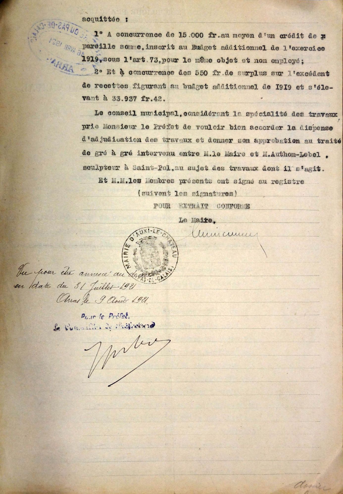 des 8 et 15 août 1920 (Mémorial du Ternois)