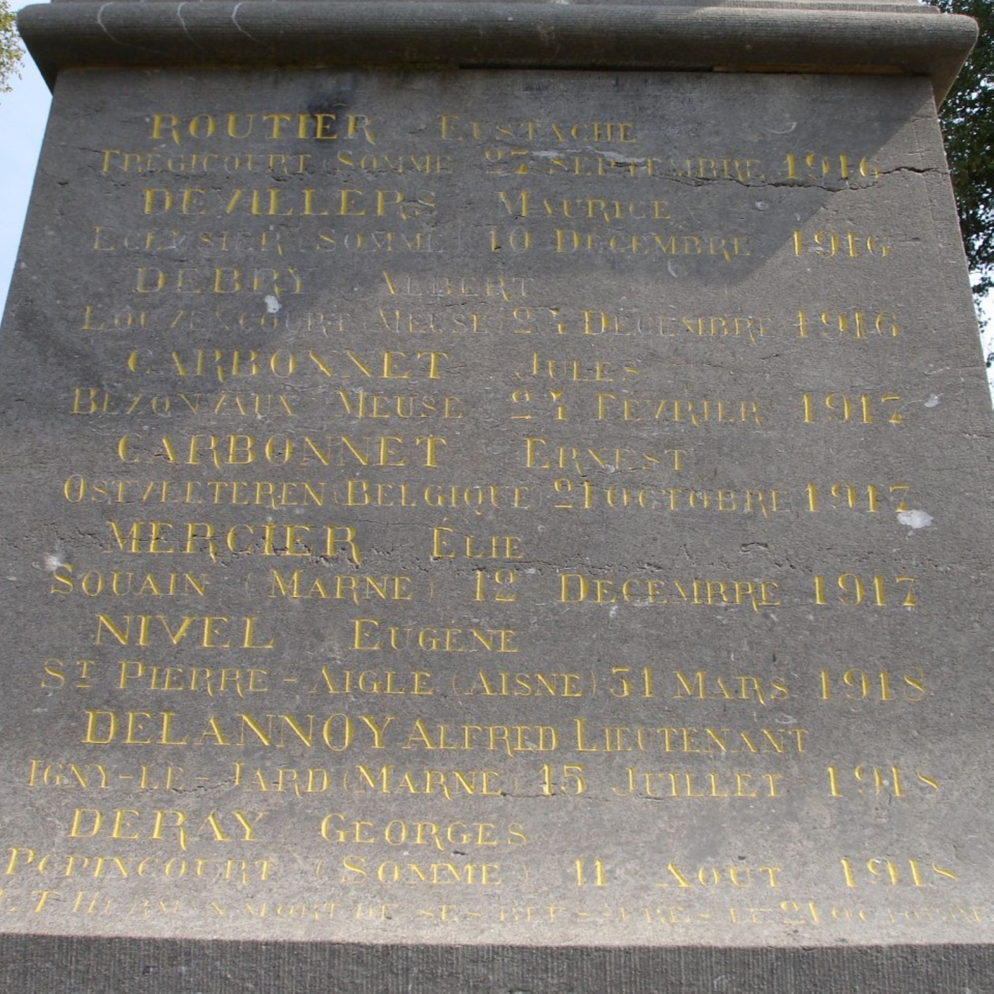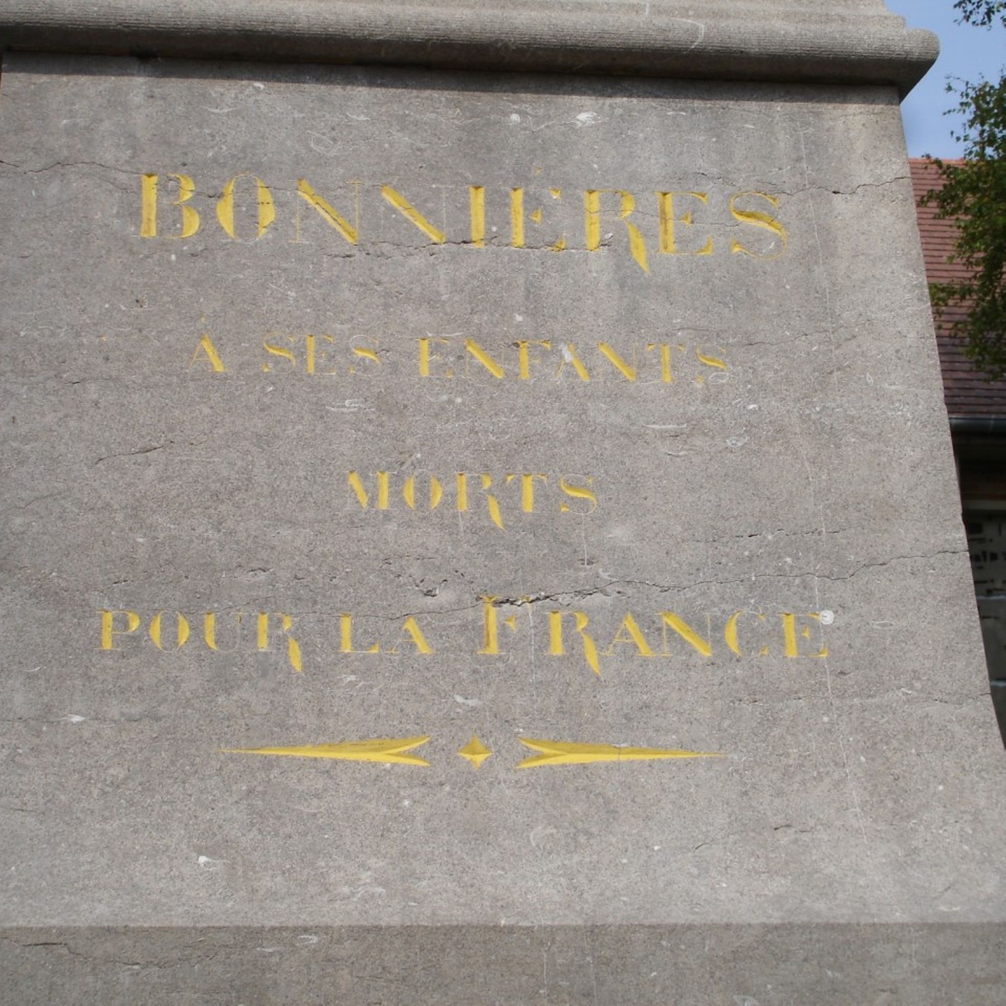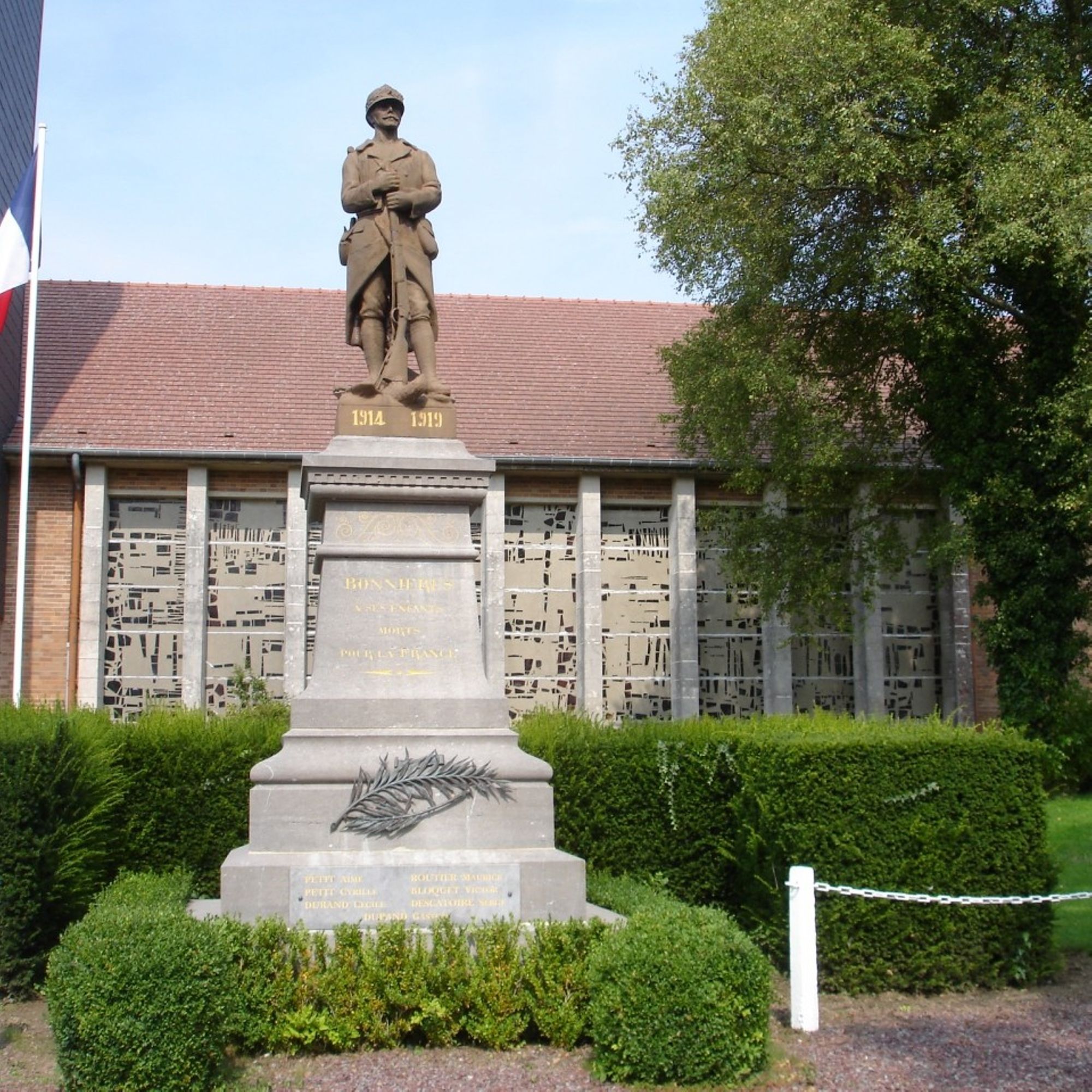 du 21 août 1921 (Mémorial du Ternois) -- La commune de Bonnières, si calme et si paisible d’ordinaire, avait revêtu, dimanche dernier, une physionomie toute patriotique. Elle fêtait, dans le recueillement, la mémoire de ses enfants tombés au champ d’honneur. Le matin, après la remise d’un drapeau aux anciens combattants, eut lieu une messe solennelle dans l’église décorée d’une façon artistique par M. J. Deray, de Frévent. Après l’Évangile, au milieu d’un silence religieux, M. le chanoine Bridoux, aveugle de guerre, chevalier de la Légion d’Honneur, médaillé militaire et croix de guerre, dans une vibrante allocution, fit l’apothéose du poilu. Développant ces paroles de l’Évangile « In memorian erit Justus – le souvenir du juste est impérissable », l’orateur nous fit suivre, une à une, toutes les grandes étapes de la vie guerrière du soldat français – Héros, sauveur et martyr ! – Pendant la messe, des chants patriotiques furent exécutés par un chœur de jeunes filles sous la maîtrise de Mlle Sacleux, et avec l’heureux concours de l’excellent violoniste qu’est M. Cléton, de Boubers. A 4 heures, un cortège se formait au centre du village. La musique de Rollepot ouvrait la marche, suivie des enfants des écoles, de quelques groupes de circonstances : la France adoptant ses pupilles, Jeanne d’Arc guerrière, la France au Travail, l’Entente Cordiale, la France Victorieuse. Venaient ensuite les vétérans de 1870, les anciens combattants, les délégations de sociétés voisines, les familles en deuil, les autorités. Après la bénédiction du monument, M. l’abbé Sacleux, curé de Bonnières, prit la parole : « En défendant son sol, sa maison, sa famille, le soldat français a défendu aussi son église et ses croyances. Souvent son moral était relevé par le noble exemple des aumôniers et des prêtres combattants. Et c’est cette belle attitude du clergé français pendant la guerre qui força l’admiration de tous et pesa d’un grand poids dans le maintien de l’union sacrée ». Puis ce fut l’émouvant appel des morts fait par M. Harduin, conseiller général, maire de la commune. Alors, au nom des anciens combattants, M. Marcel Harduin, leur président, prononça le discours suivant empreint du plus pur patriotisme : Discours de M. Marcel Harduin, président de l’Union des Combattants « Voici bientôt 3 ans que le terrible cauchemar est terminé ! Trois ans que ce pays n’entendant plus ni le son du canon, ni le crépitement de la mitrailleuse, a repris sa vie d’avant-guerre ! Trois ans bientôt que nous avons dû laisser dans ces plaines désolées de Dunkerque à Belfort, dis-huit de nos meilleurs camarades. Couchés à l’ombre d’une humble croix de bois ensevelis au fond d’une tranchée, ils sont restés là-bas, loin de leur clocher natal, plongés dans un silence désertique. En cette journée, consacrée au culte du souvenir, permettez, chers et infortunés camarades, qu’au nom de vos frères d’armes, je vienne rendre un suprême hommage à votre mémoire, et dire à cette nombreuse assistance, sur qui planent en ce moment vos âmes, qui vous étiez, comme vous êtes tombés et pourquoi vous êtes morts. - Enfants de ce pays, vous étiez les compagnons de notre jeunesse ; nous allions ensemble sur les bancs de la même école ; fréquemment nous nous sommes trouvés réunis sous les voûtes de cette église ; nous jouions ensemble et bien souvent nous partagions les mêmes joies et les mêmes tristesses. Ensemble, le 2 août 1914, nous sommes partis, à l’appel des cloches de France, d’un même élan, d’un même cœur, confiants dans la victoire prochaine. Hélas ! La victoire se fit attendre ; aux batailles en rase campagne du début de la guerre, succédèrent les longs et monotones mois des tranchées ; c’est là que nous apprîmes votre mort, à vous, chers camarades, vous disparaissiez l’un après l’autre. Dans un des premiers combats qui furent notre première victoire, tu succombas le premier de ce village, Jean-Baptiste Malbranque, avec ce mâle courage que nous te connaissions tous. Puis ce fut toi, Gaston Brément, qui trouvas une mort glorieuse dans l’eau et dans la boue de l’Yser. Ce fut toi, ensuite, mon cher Maurice, dont le colonel a dit : C’était un brave, un intrépide, un téméraire même puisque c’est son ardeur guerrière et son grand patriotisme qui l’ont conduit à courir à l’assaut, alors que son service normal l’en dispensait. Au printemps 1915, à des milliers de lieues d’ici, là-bas en Orient, vous êtes disparu, lieutenant Legrand, en défendant l’honneur du drapeau français, tandis que près d’ici, à Neuville-Saint-Vaast, tu luttais Léon Henneguelle, en te cramponnant à ces côtes d’Artois qui étaient pour nous notre dernier rempart. Dans cet enfer horrible qui restera légendaire et qui se nomme Verdun, vous êtes tombés tous trois en braves, Charlemagne Laurent, Alfred Malbranque et Émilien Mortier, en compagnie de ces dizaines de milliers d’hommes qui tombaient chaque jour, léguant à la postérité le plus bel exemple d’un courage surhumain et de l’abnégation la plus complète. Et vous, Pierre Petit, Eustache Routier, et Maurice Devillers, vous avez illustré de votre mort les marais de la Somme, ce terrain mouvant, où, côte à côte avec les Anglais, vous avez participé à cette avance prodigieuse, qui étonna le monde et sur qui brillaient déjà les premiers rayons de victoire ; tandis que vous, Albert Debry et Jules Carbonnet, vous succombiez courageusement à Louvemont et à Bezonvaux, tenant tête à la ruée allemande, toujours plus forte, toujours plus sauvage. Puis, ce fut toi, Ernest Carbonner, qui péris héroïquement dans ce petit coin de Belgique, petit par l’étendue, mais grand par la bravoure. Et toi, Élie Mercier ? A peine es-tu parti, qu’un obus est venu te foudroyer, alors 
