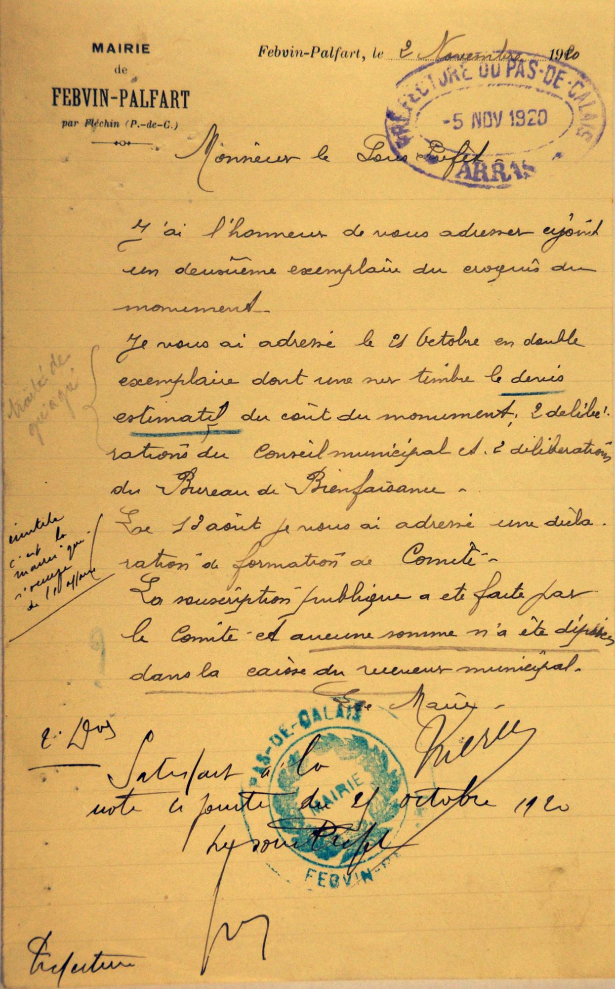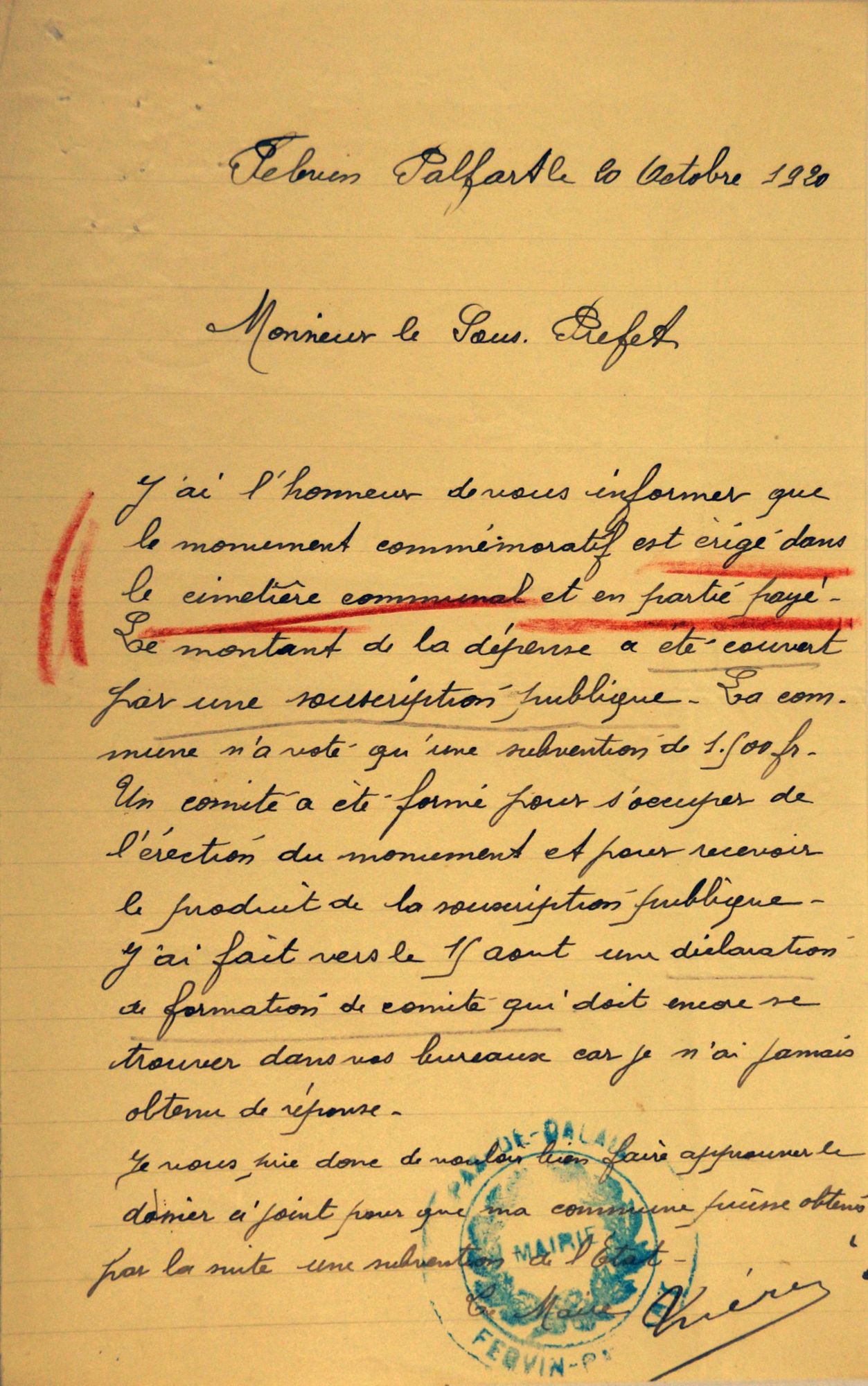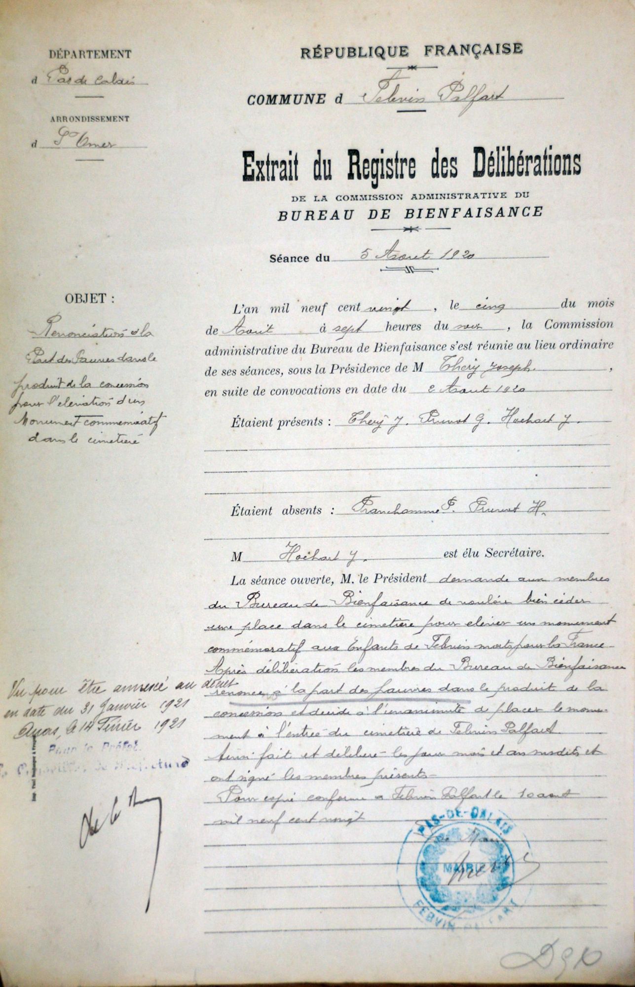 Vote de 1500 frs pour le monument aux morts