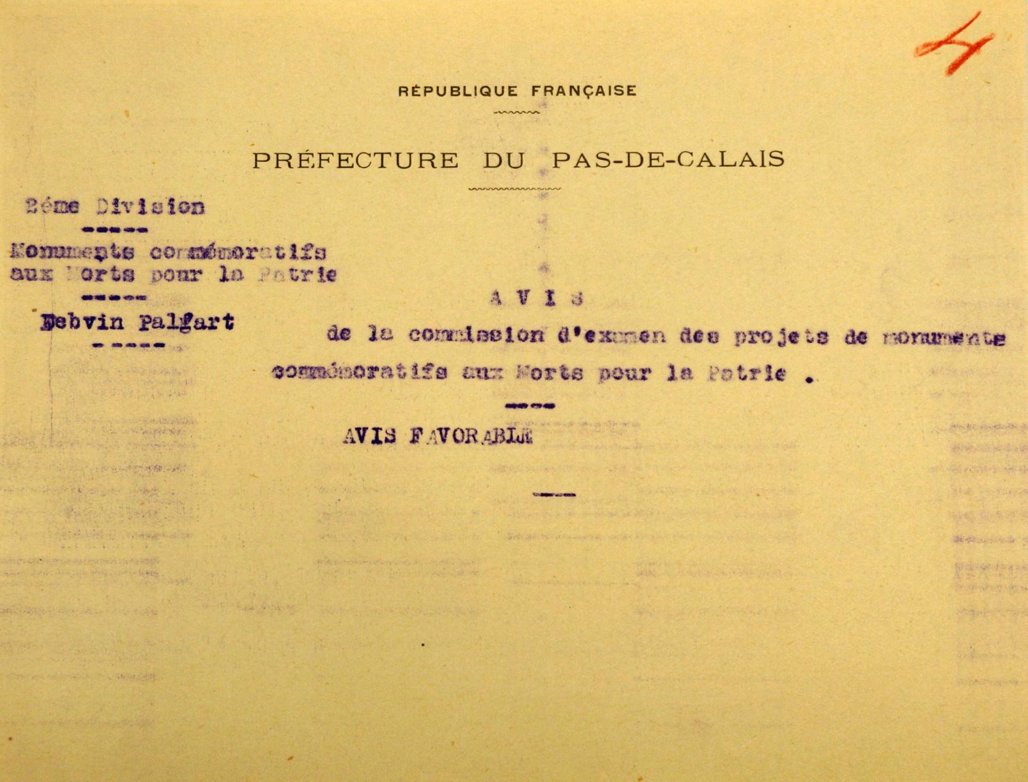 Avis de la commission d'examen des projets de monuments commémoratifs