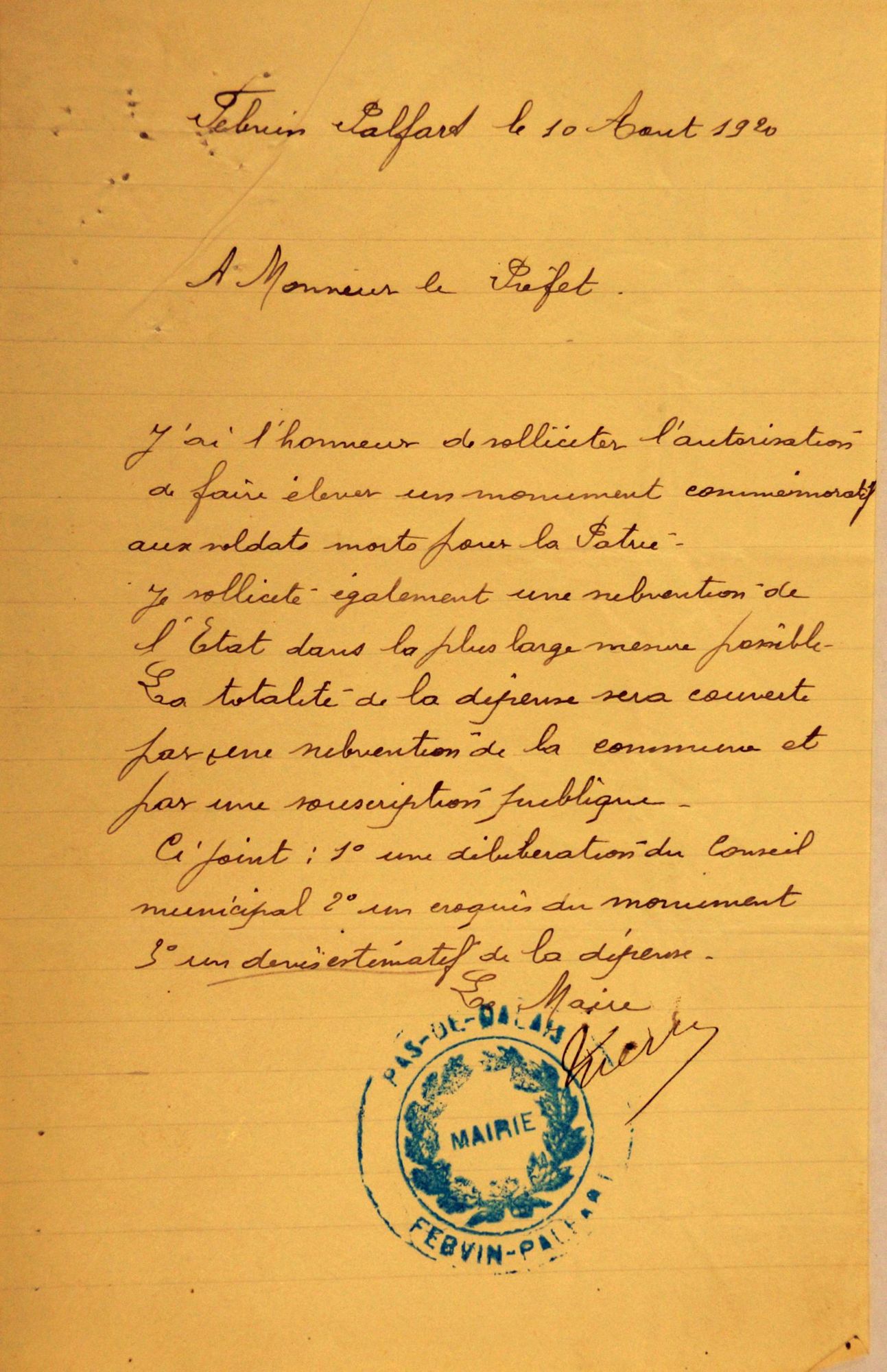 Sollicite l'autorisation de faire élever un monuement commémoratif