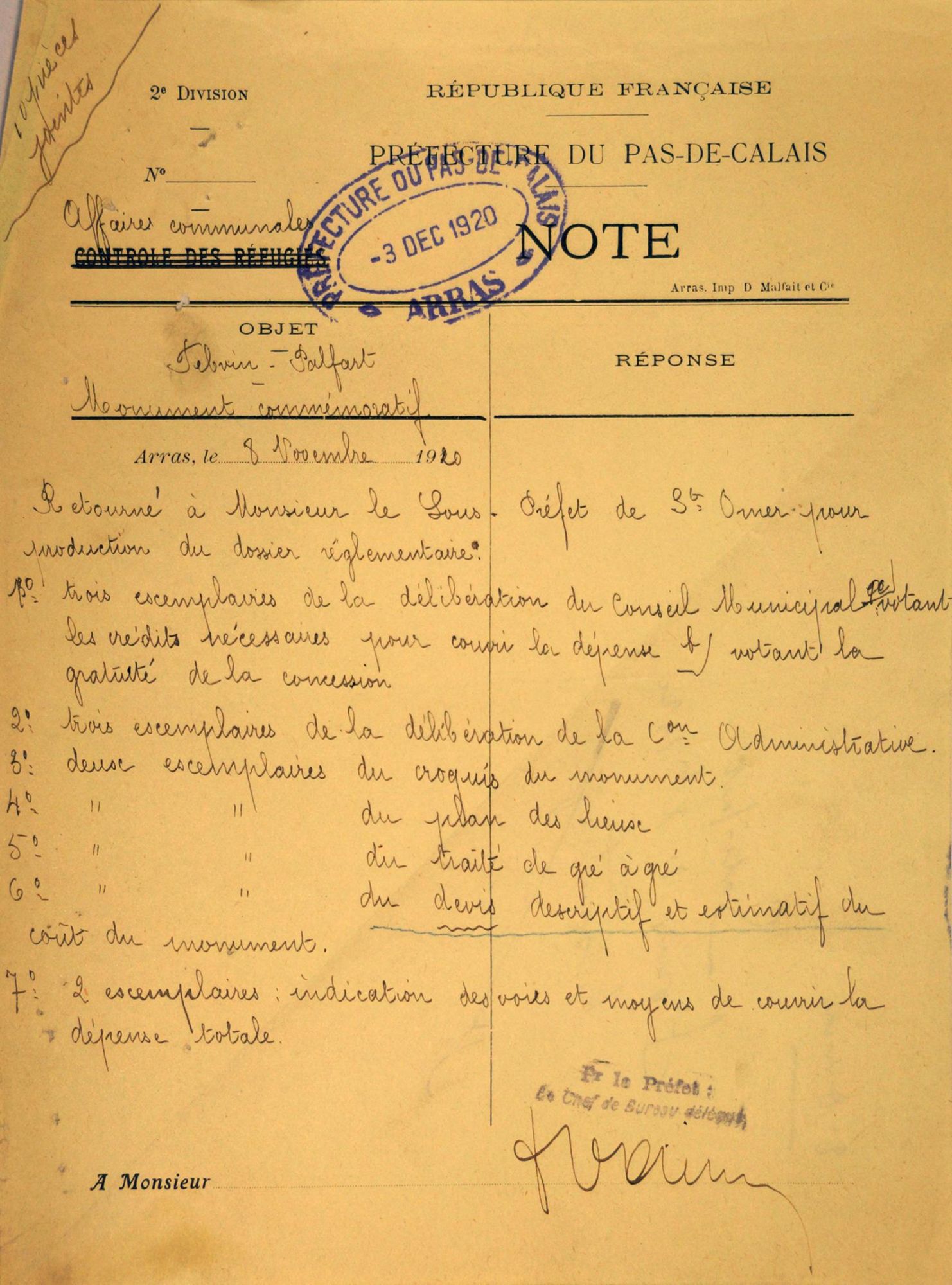 Retourné au sous-préfet pour production du dossier réglementaire