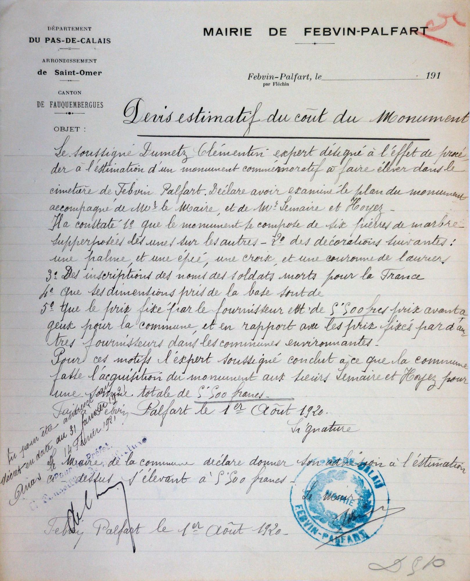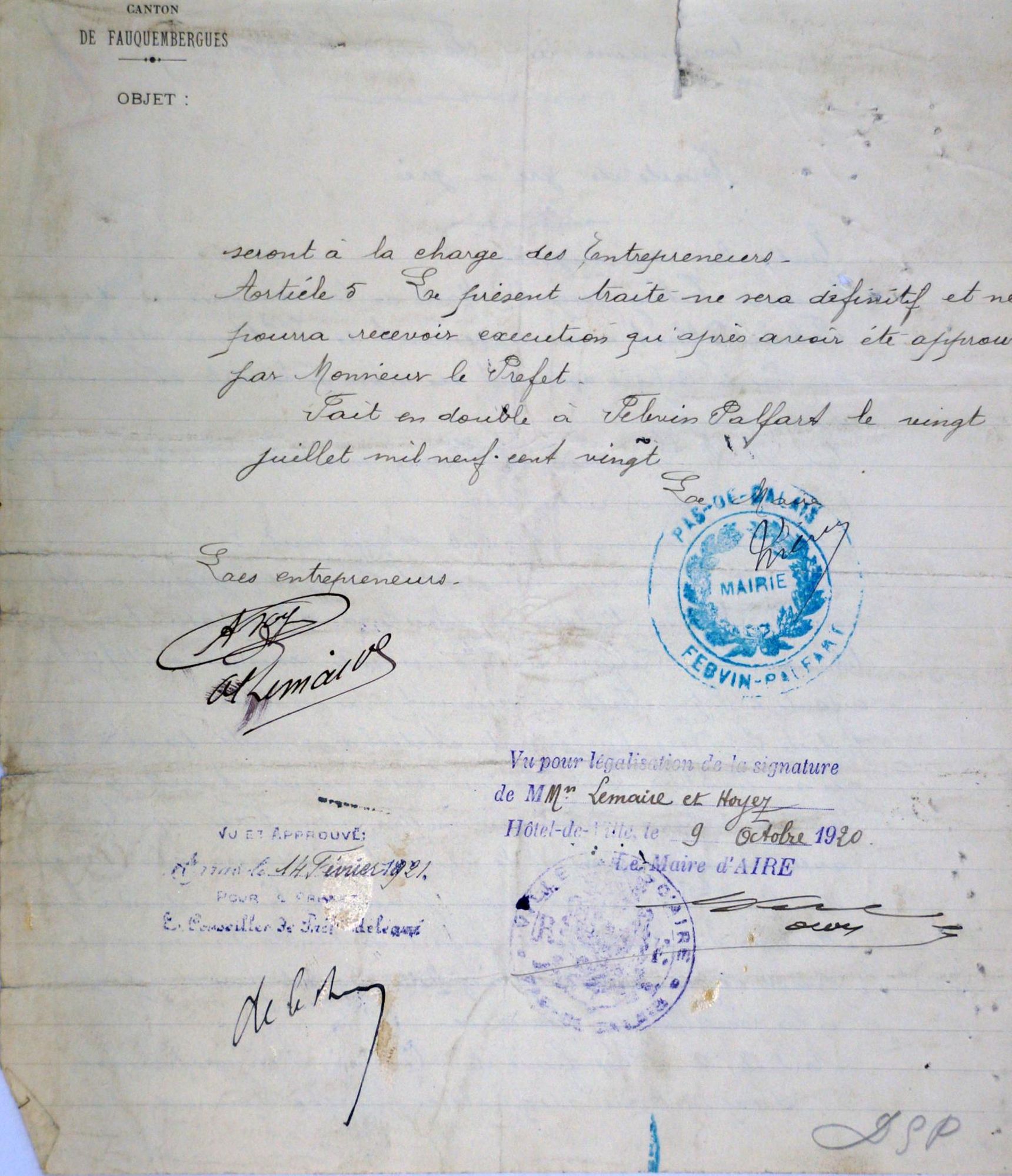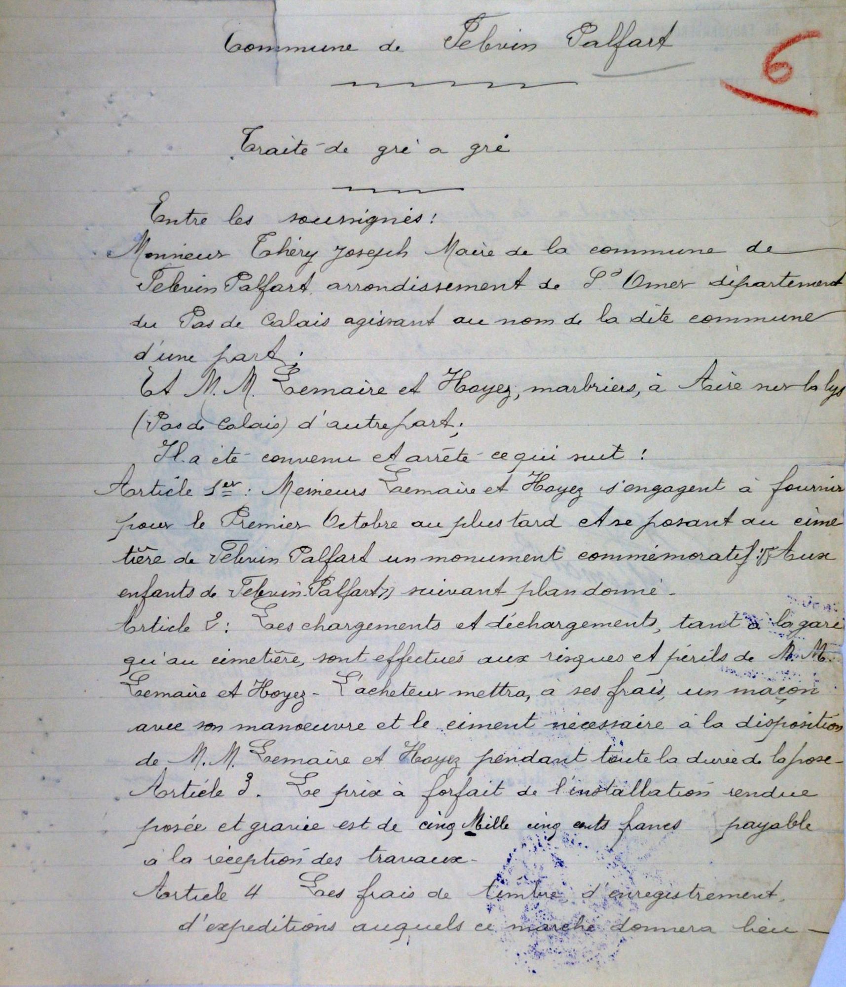 Entre Maire et MM. LEMAIRE & HOYEZ, marbriers à Aire-sur-la-Lys