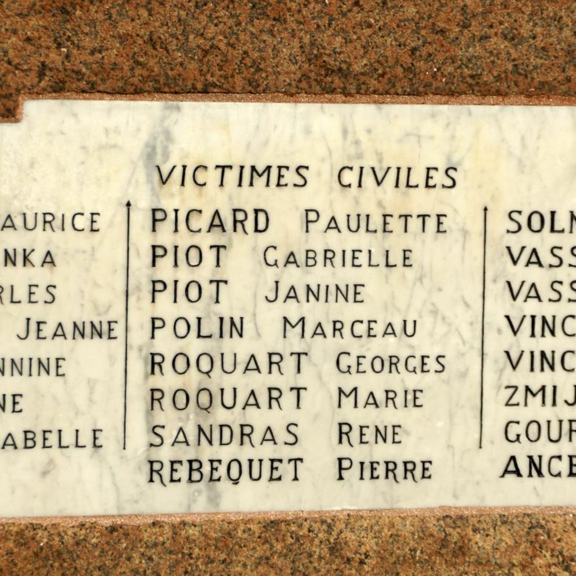 La municipalité décida, au cours des années 2000, de remplacer le relief très dégradé du soubassement par un plaque de marbre inscrite.