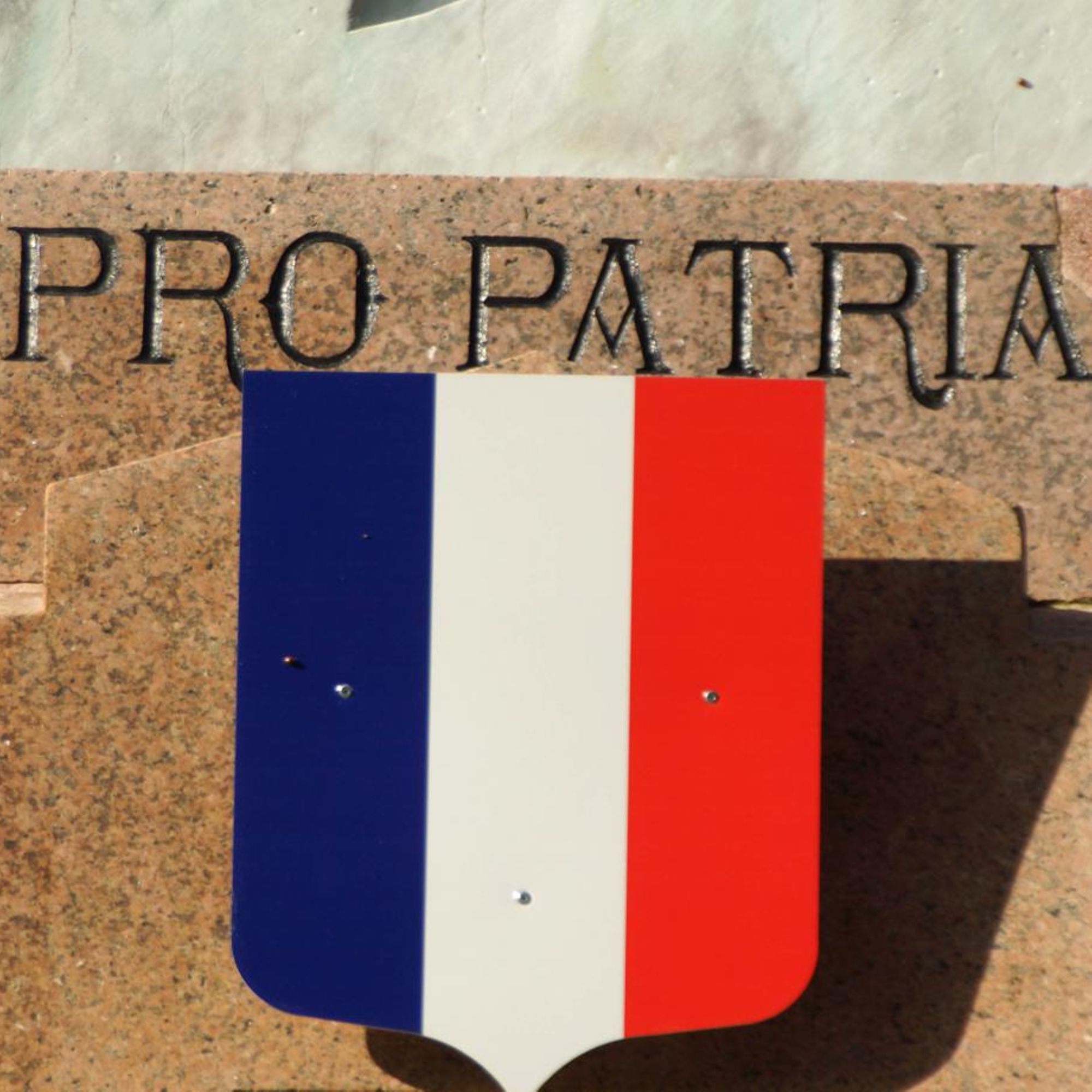 Derrière ce soldat se trouve une femme qui tient le drapeau de la France déployé comme pour symboliser la liberté.