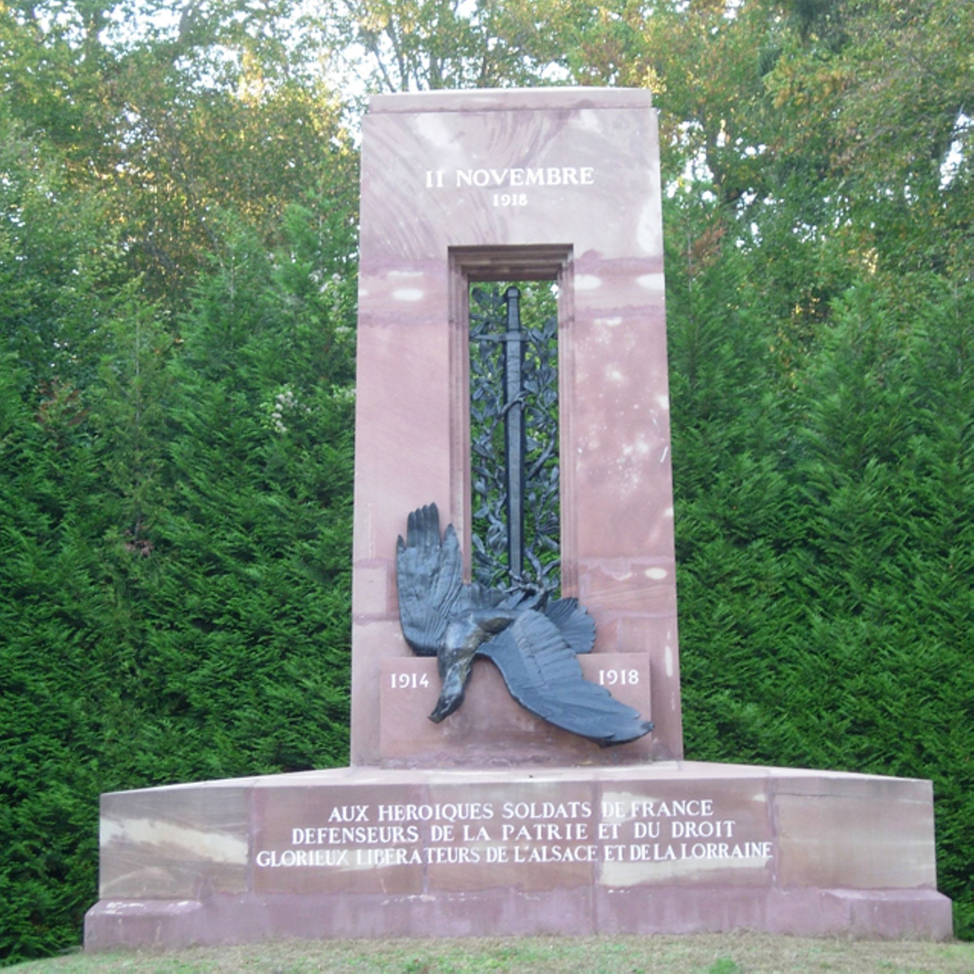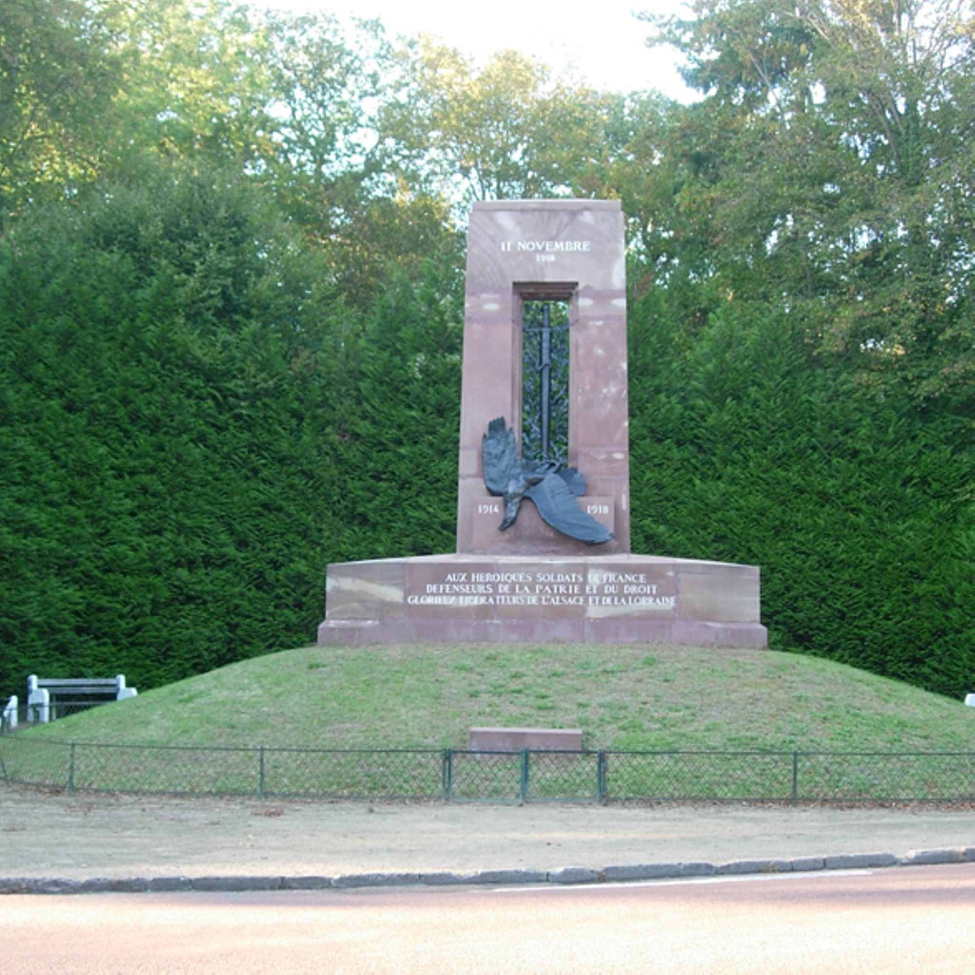 - Le monument aux Alsaciens-Lorrains, oeuvre en grès des Vosges réalisée en 1922 par Edgar Brandt, représente l'aigle abattu par l'épée, symbole de la chute de l'empire allemand.