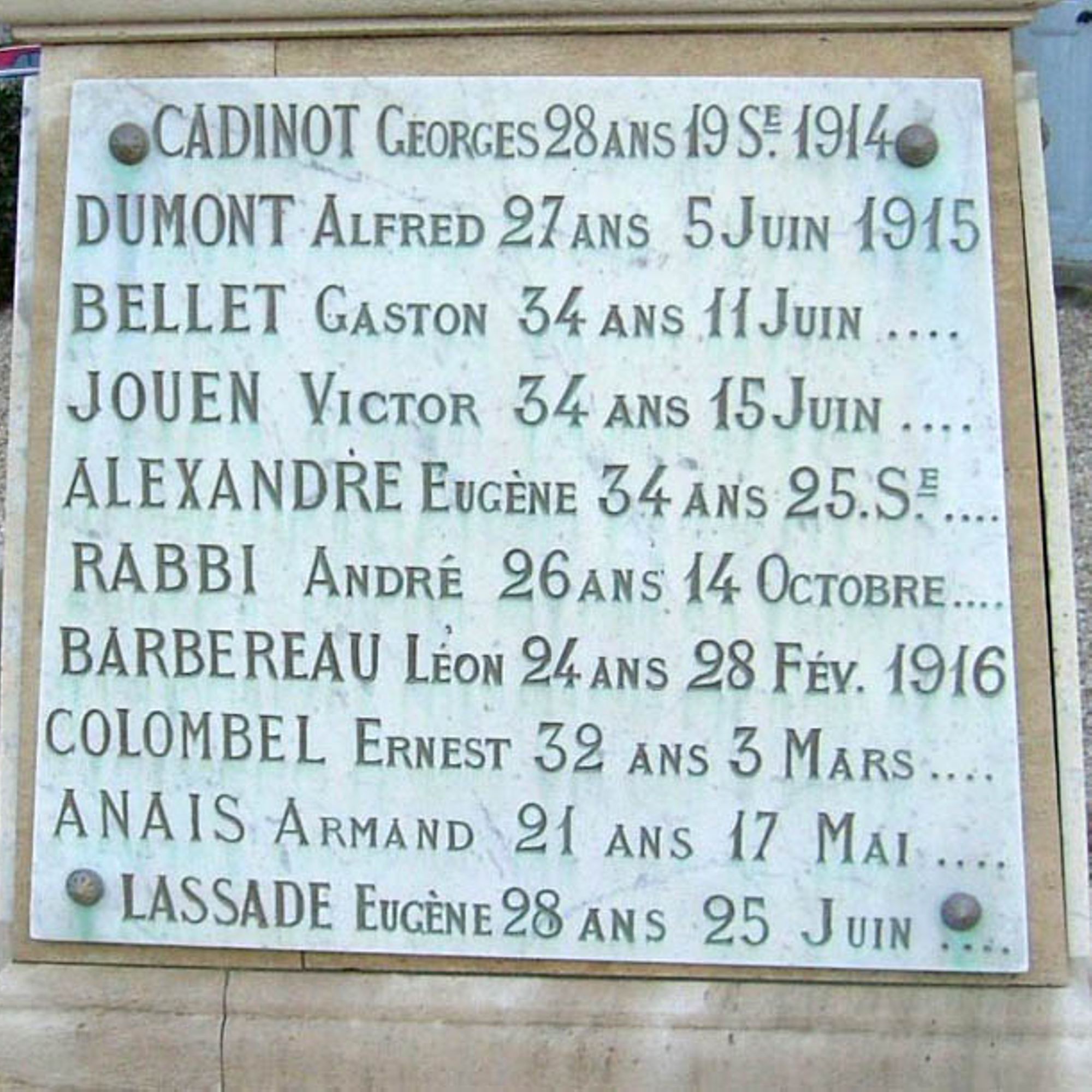 CADINOT Georges 28 ans 19 sept. 1914