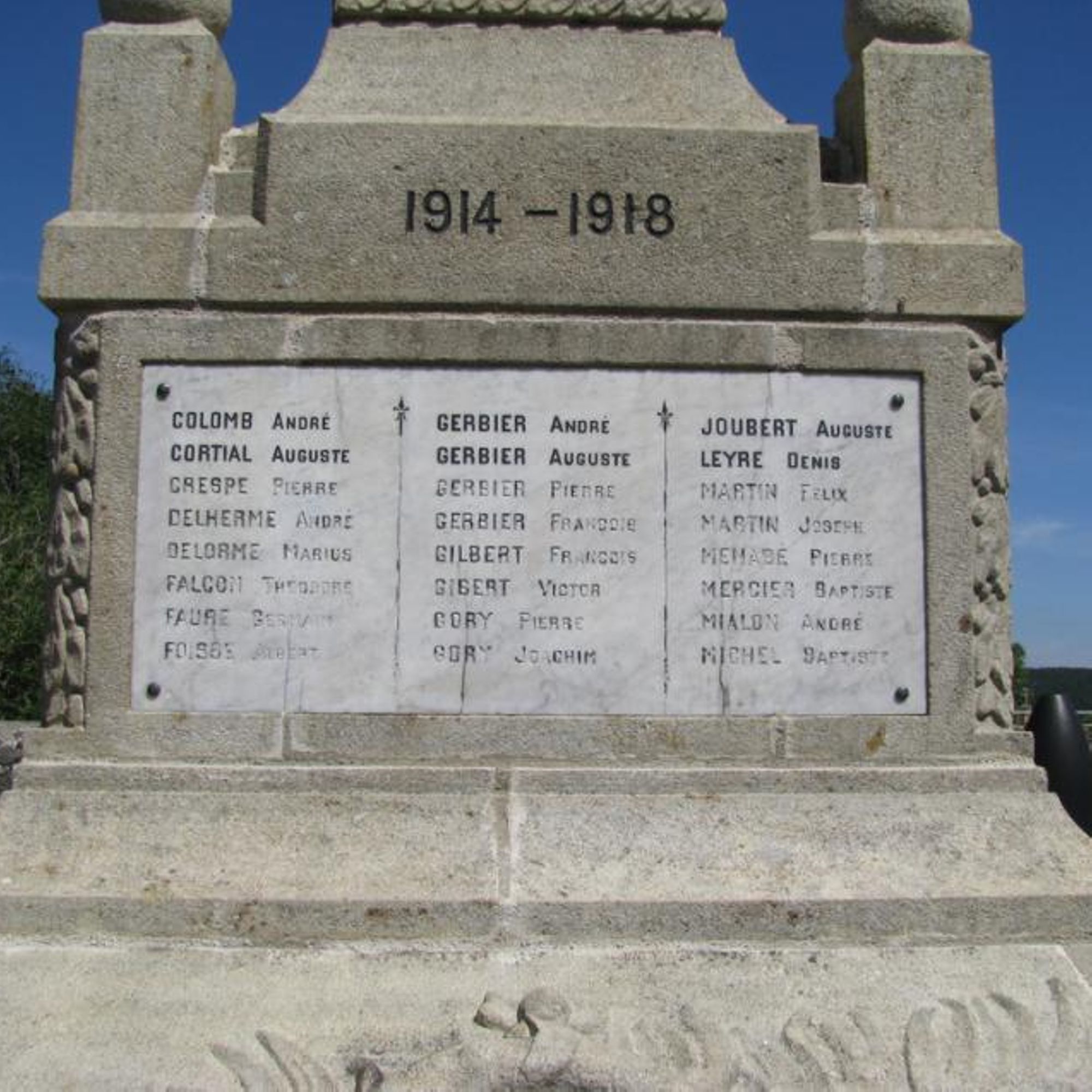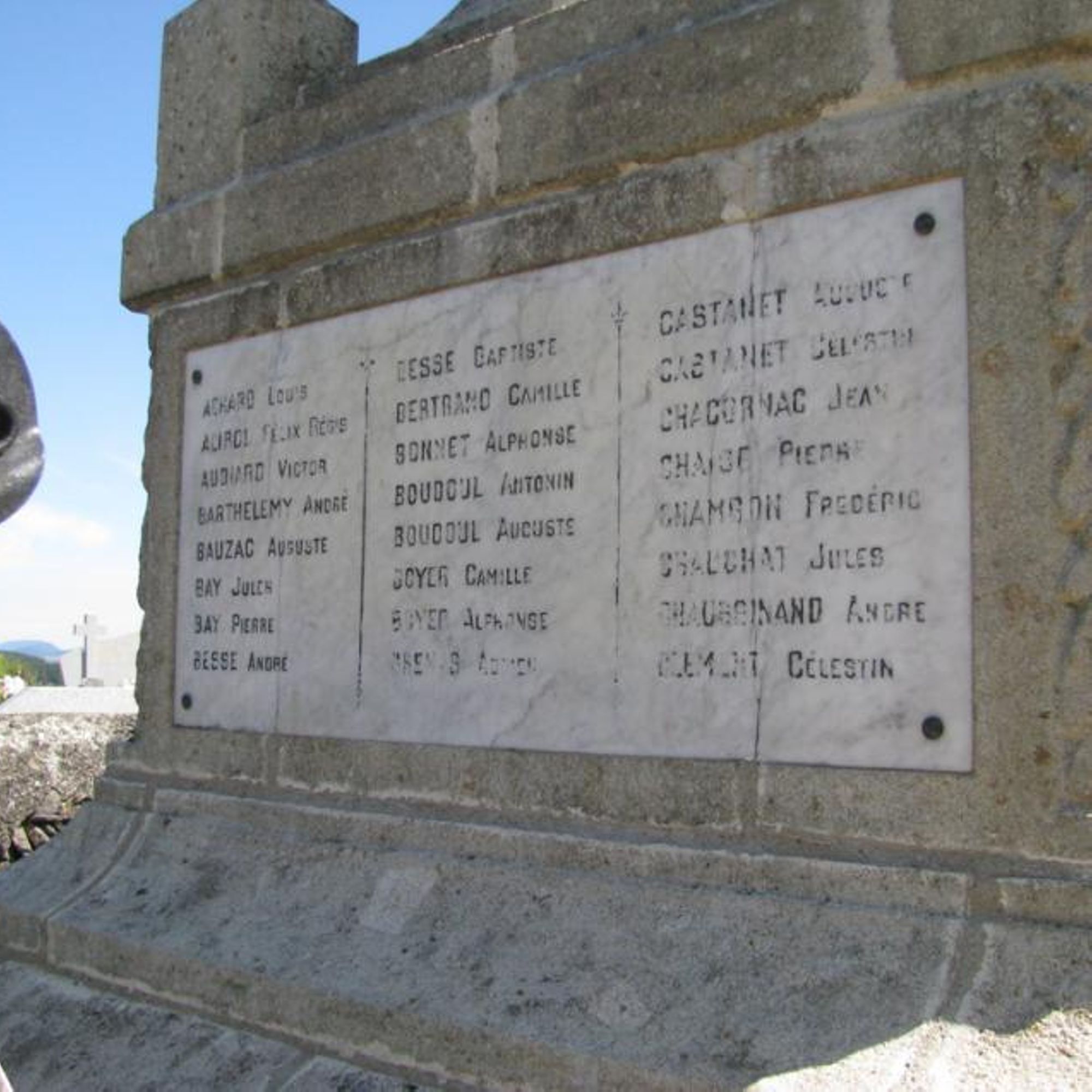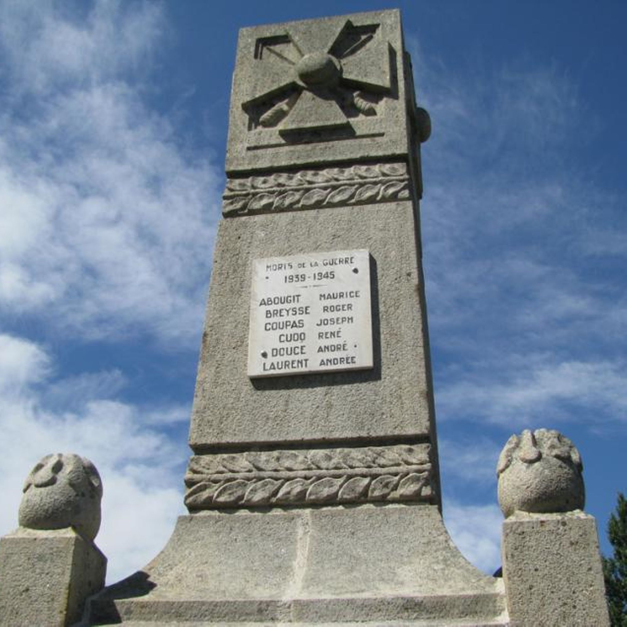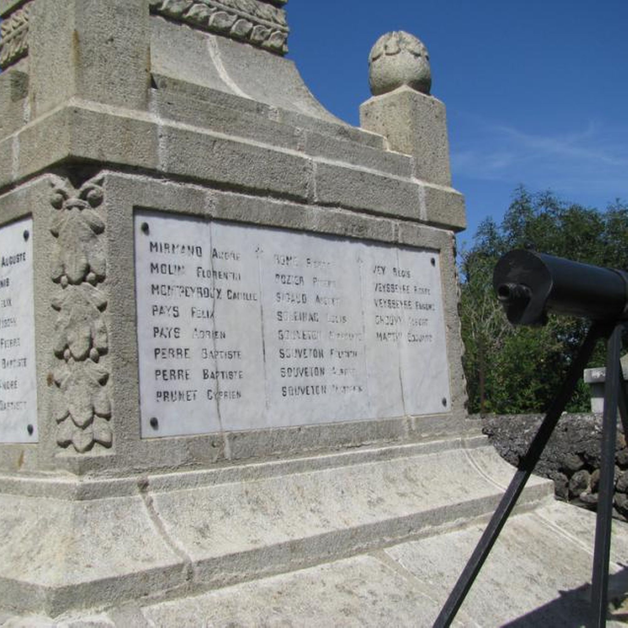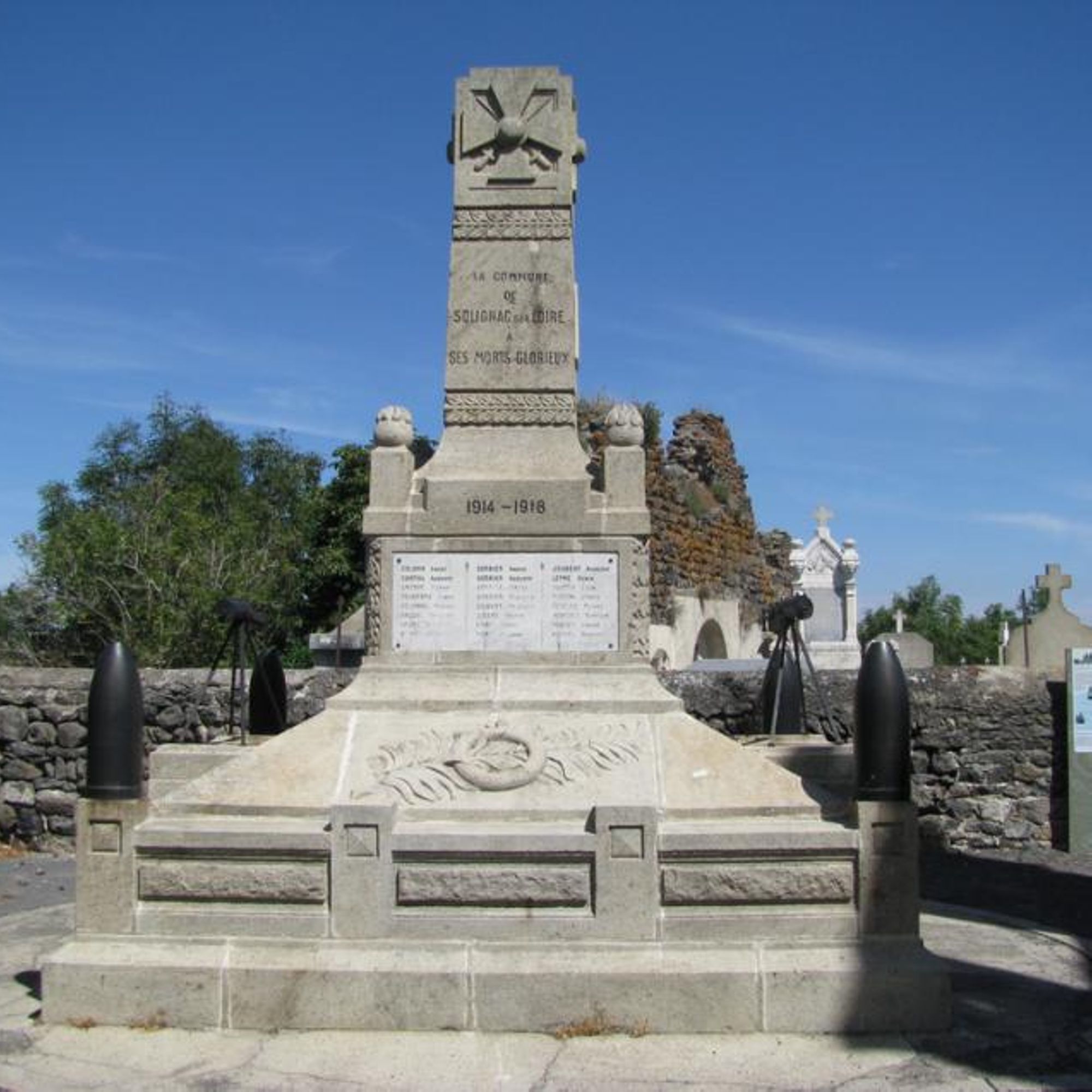 - Ce monument élevé par la Commune a été inauguré le 22 mai 1921 sous la présidence de : Monsieur PÉRIÈS préfet de la Haute-Loire, PAGÈS J. Pierre, maire, LEYRE Jules Adjoint