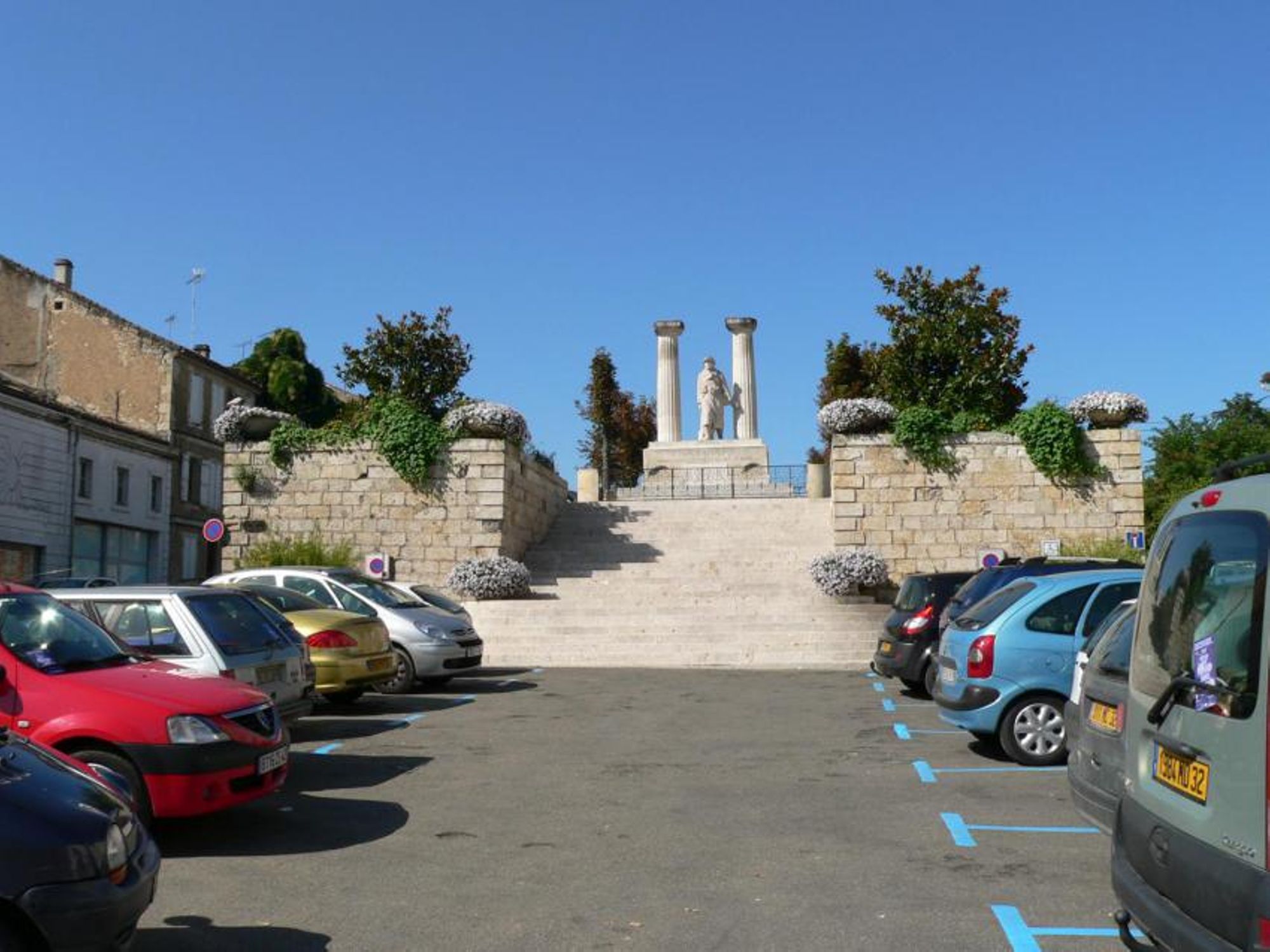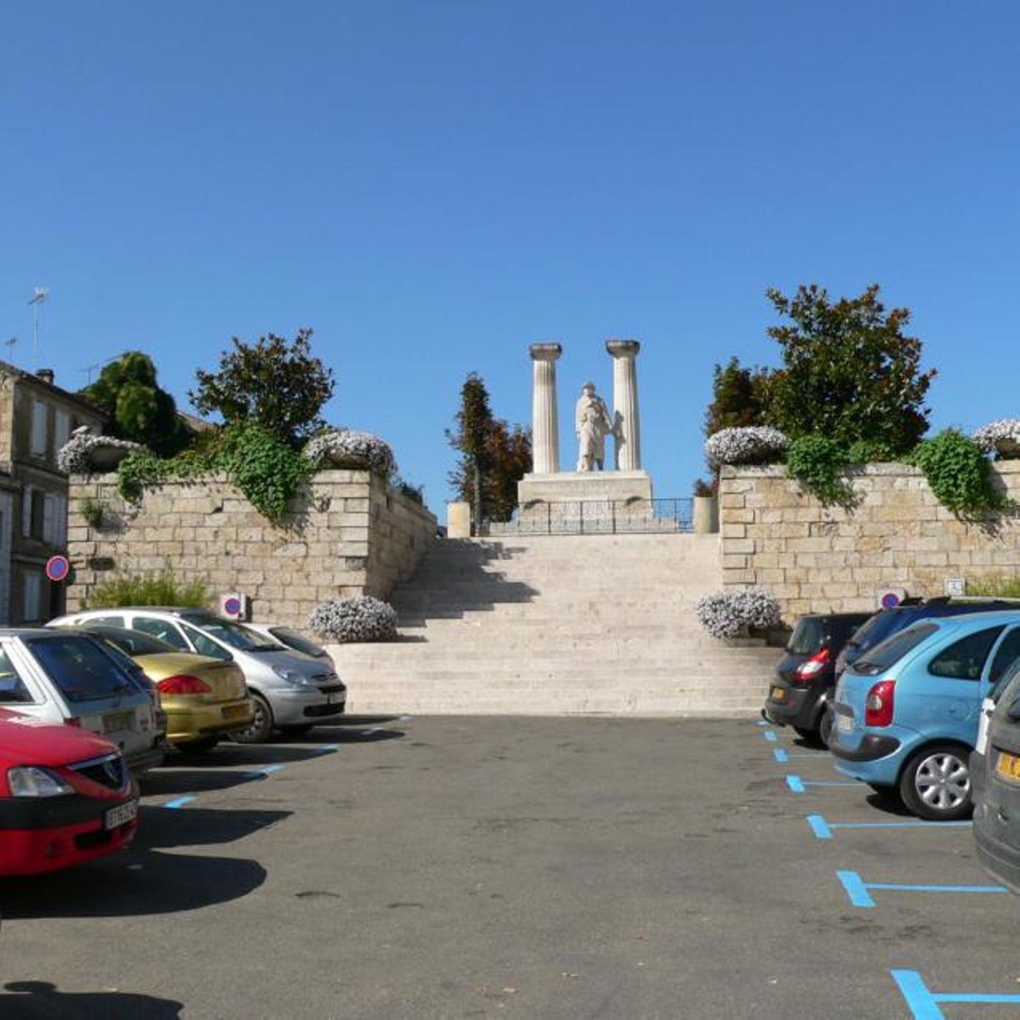 - au sud-est de l'ancienne cité épiscopale, à l'extrémité d'une esplanade en hauteur accessible de chaque côté par une volée d'escaliers.