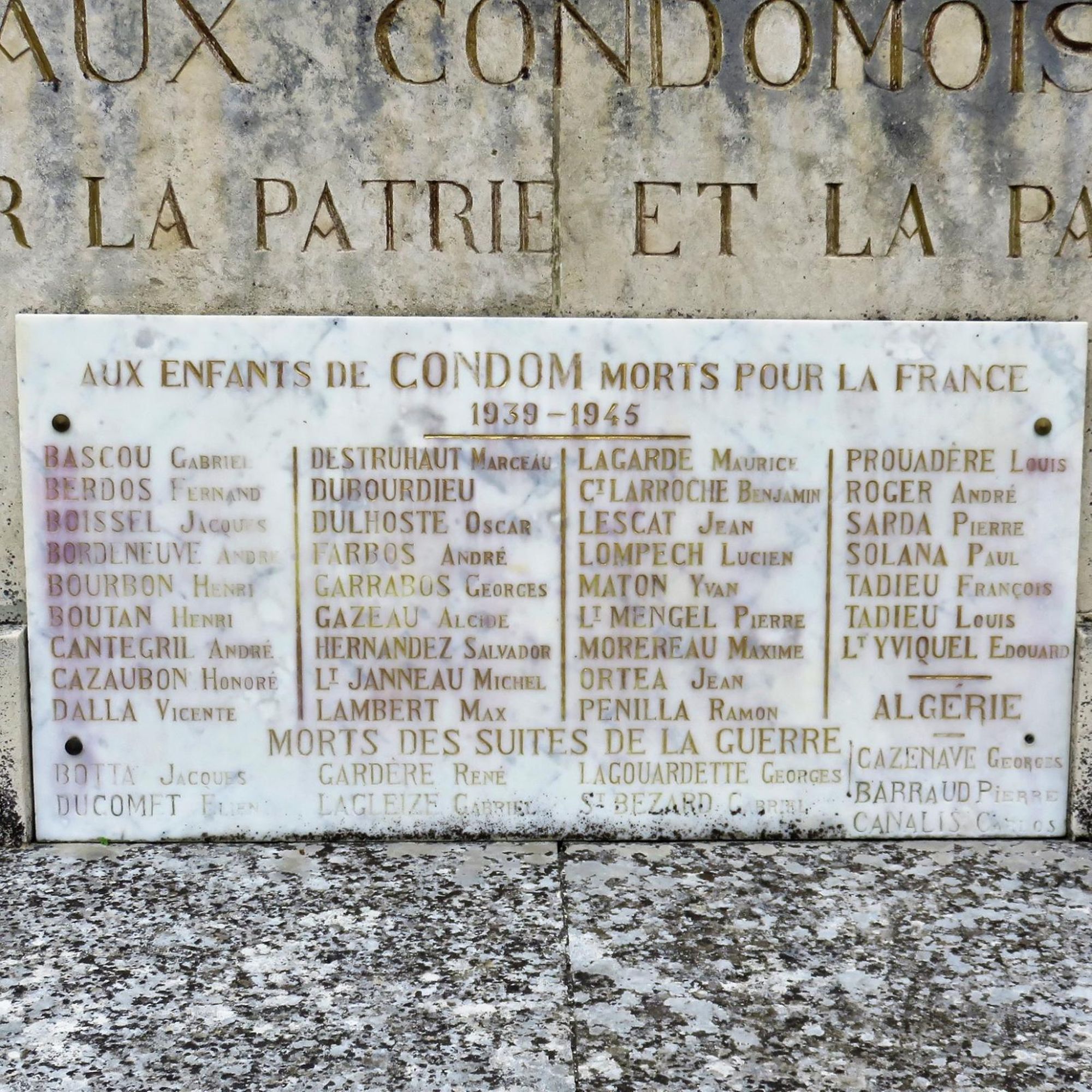 TOMBÉS POUR LA PATRIE ET LA PAIX DU MONDE