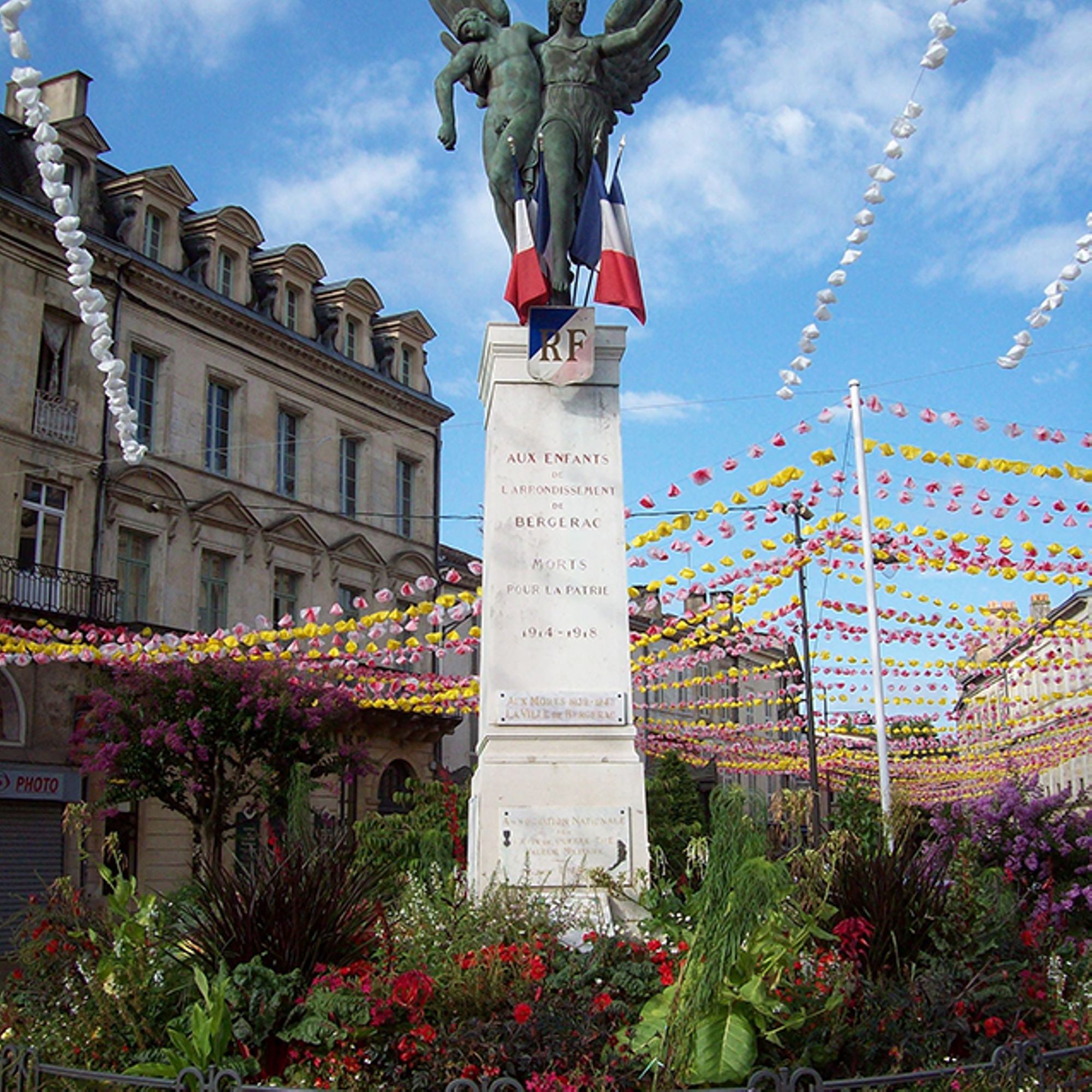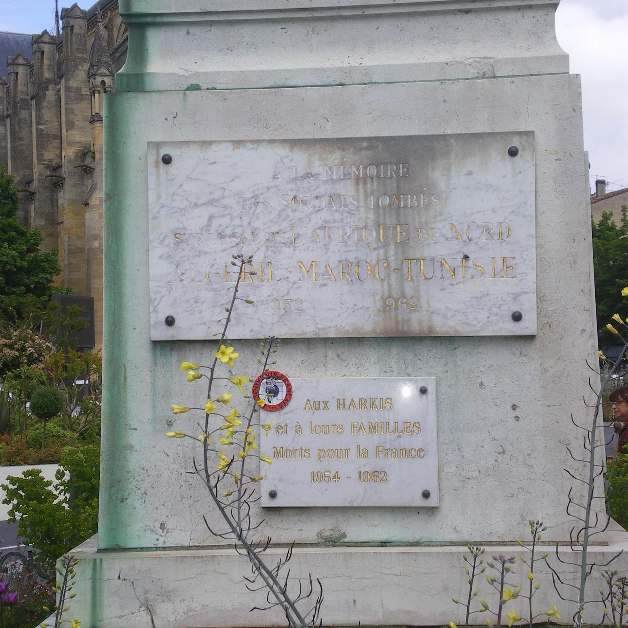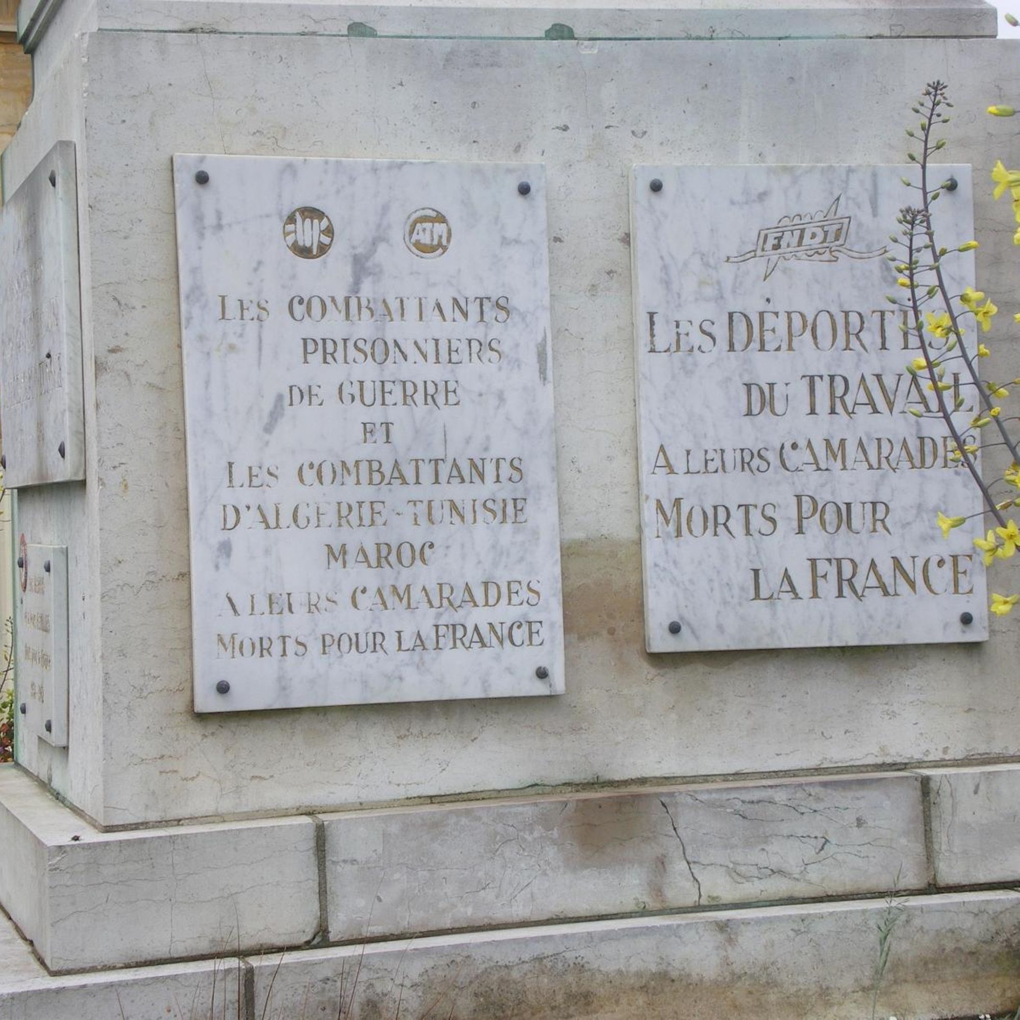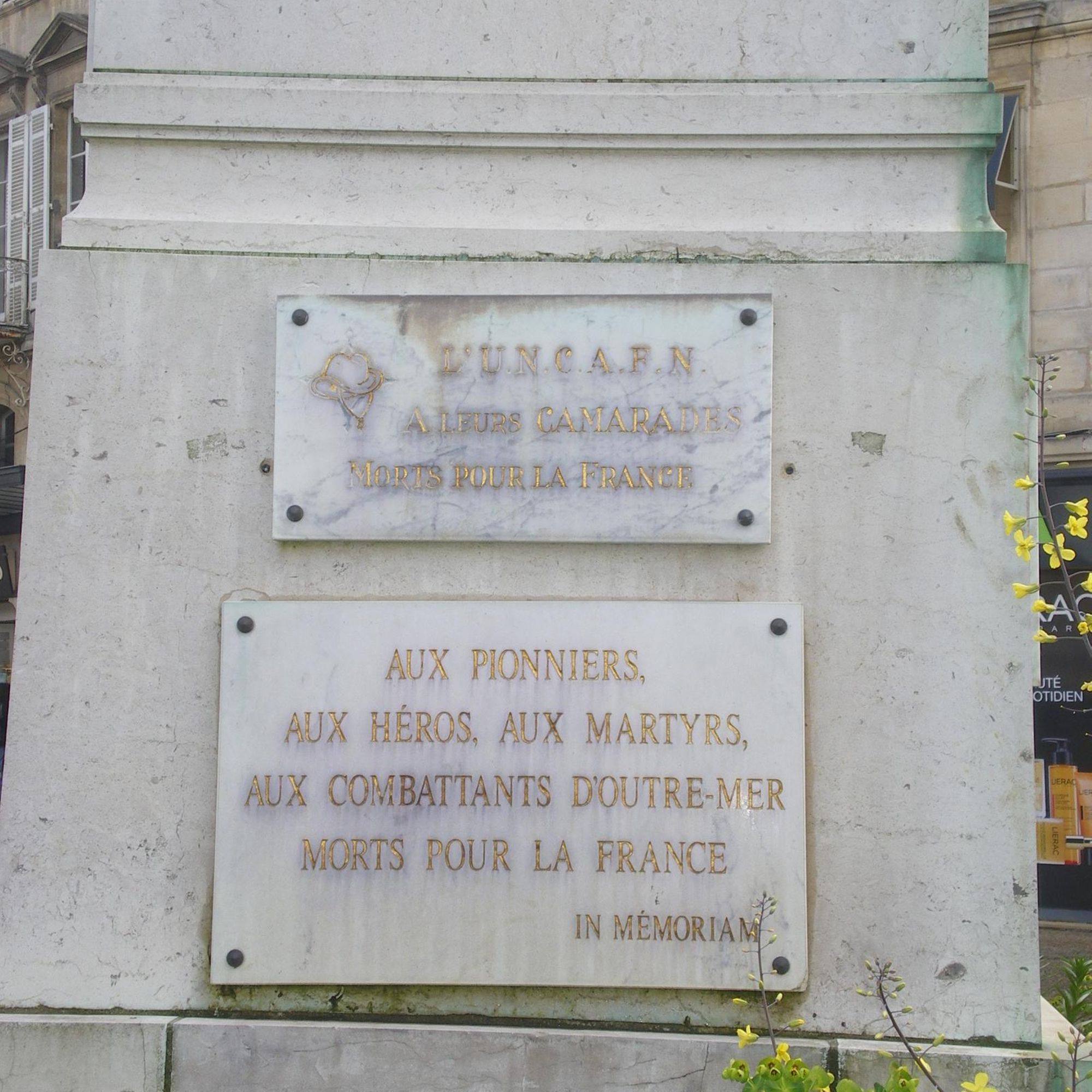 En-dessous est posée une plaque qui honorent les détenteurs de la croix de guerre pour les T. O. E. (Théâtres d'Opérations Extérieures).