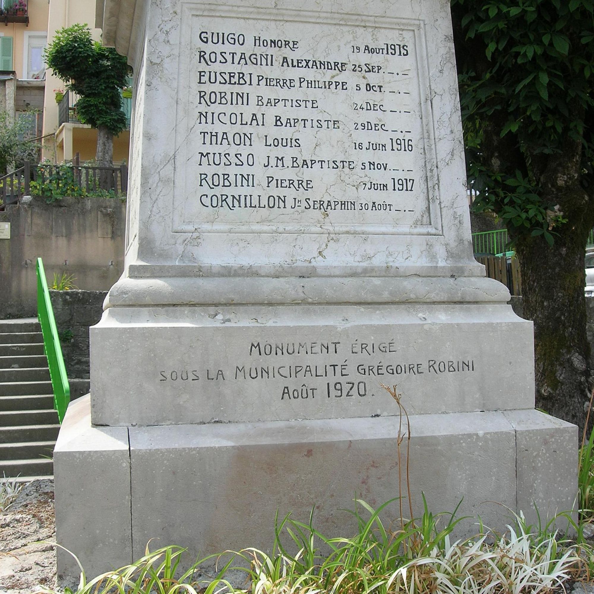 - Monument érigé sous la municipalité Grégoire Robin août 1920