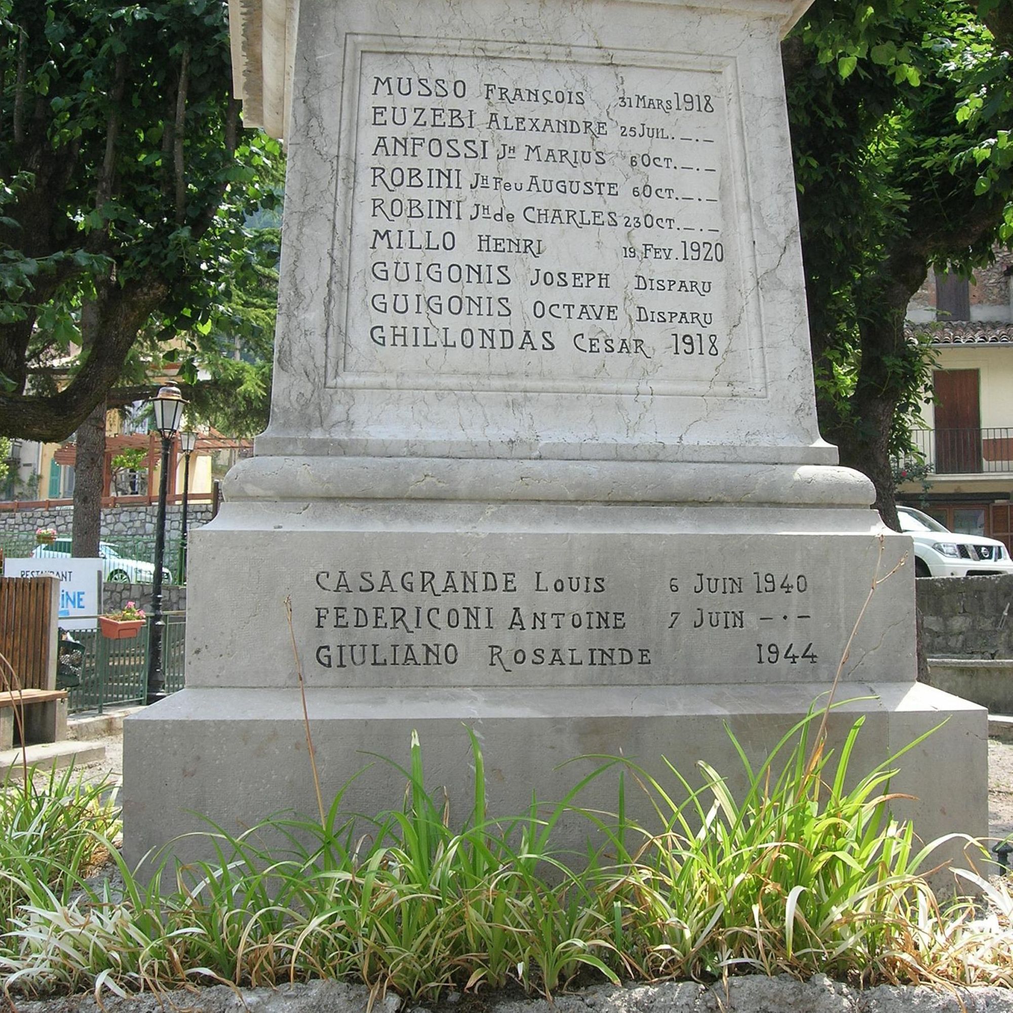 - KINOSSIAN Yves, CALVALIÉ Hélène (sous la dir.), Les Monuments aux Morts 1914-1918 dans les Alpes-Maritimes, Milan, Silvana Ed., 2015, p. 96-97