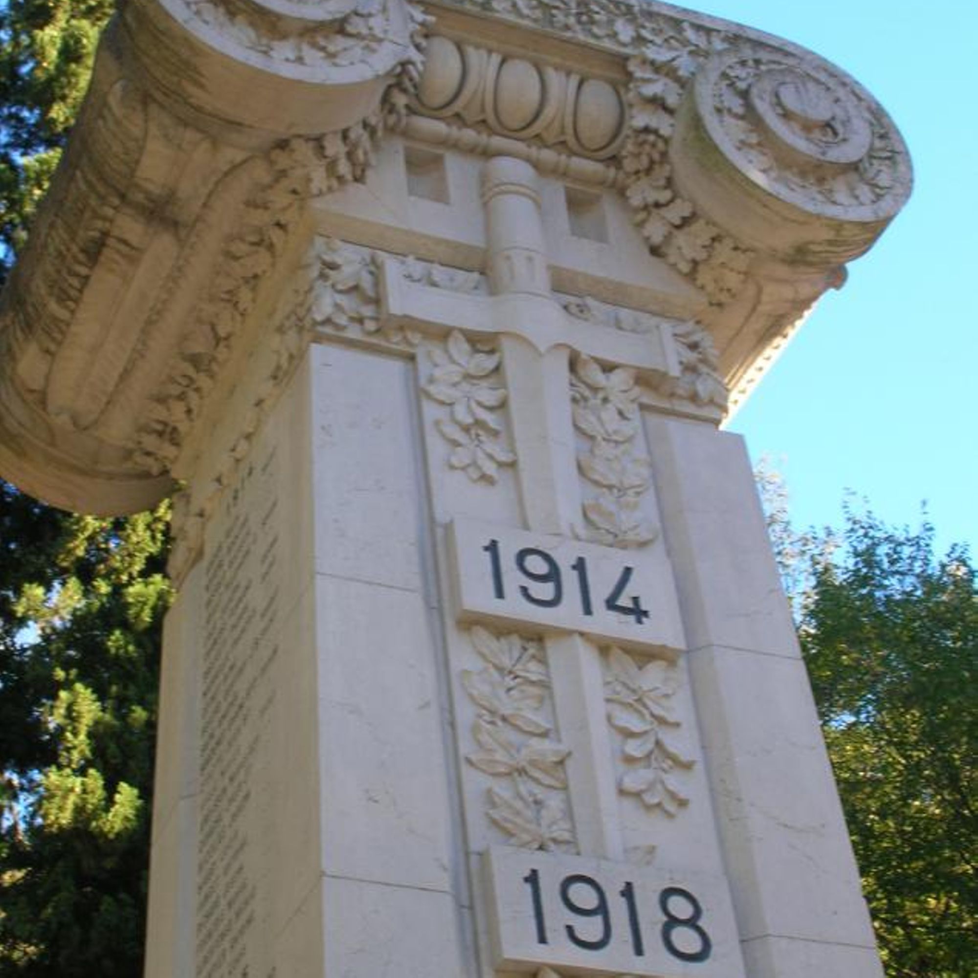 Obélisque orné en sa partie supérieure d'un chapiteau ionique décoré de feuilles de chêne et surmonté de la médaille de la Légion d'honneur.